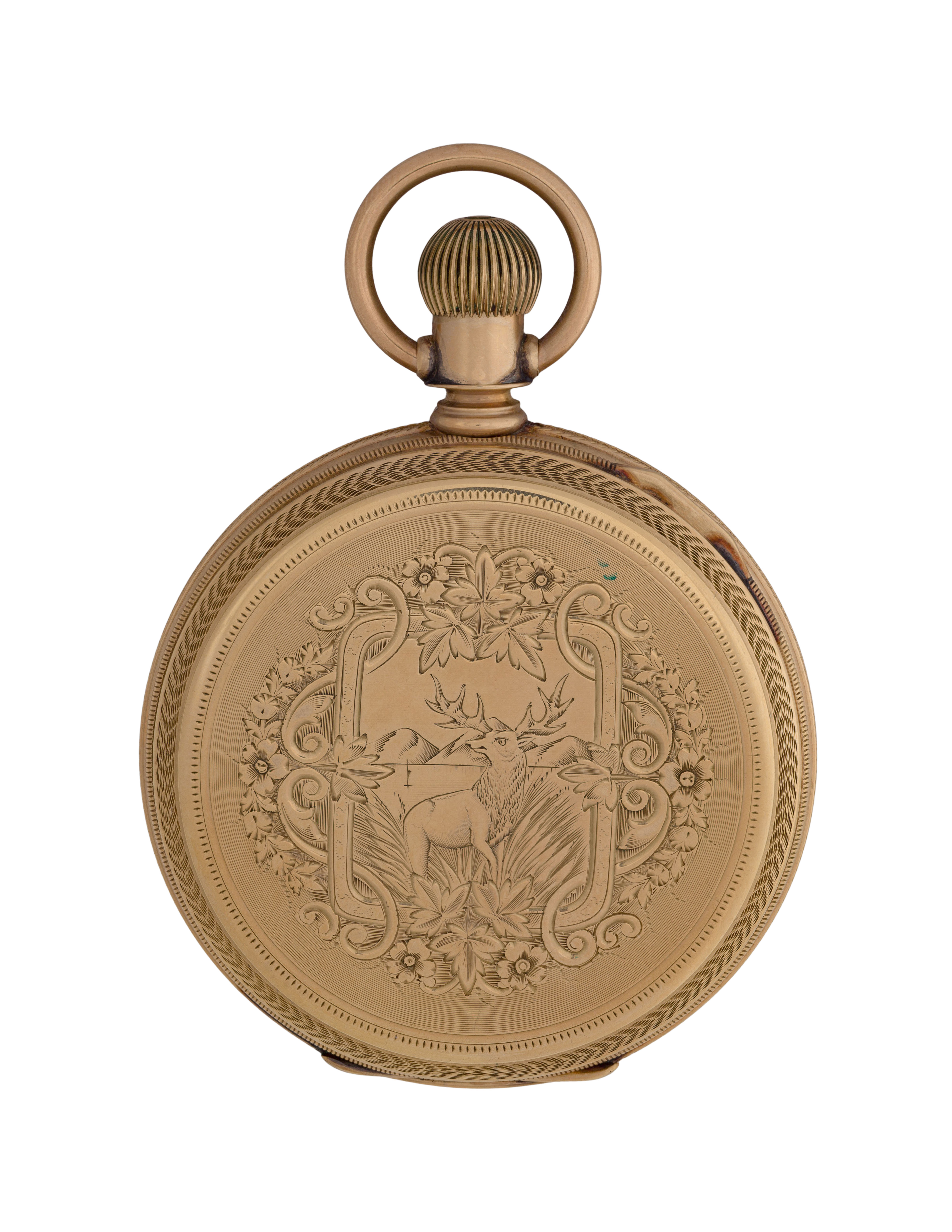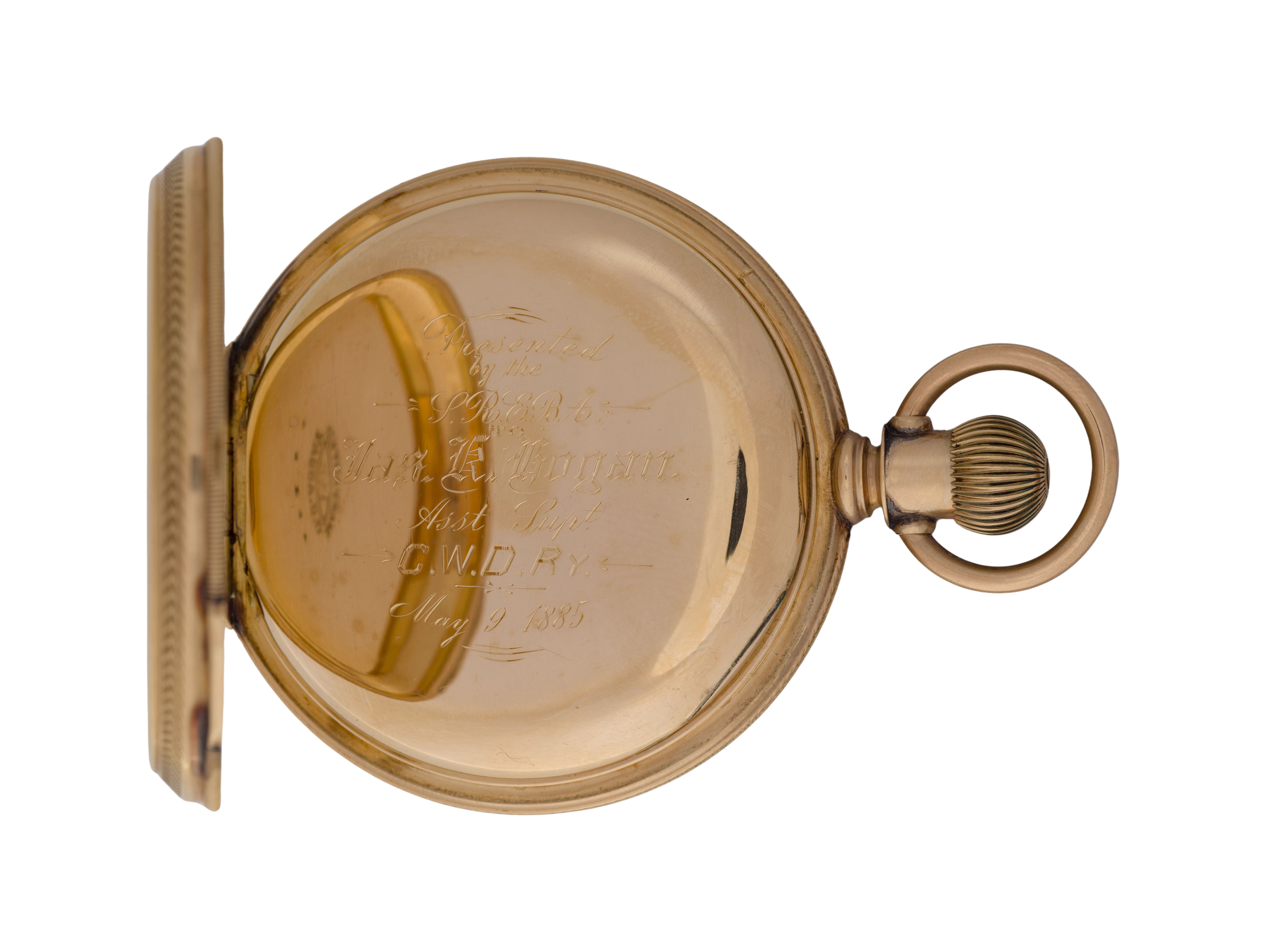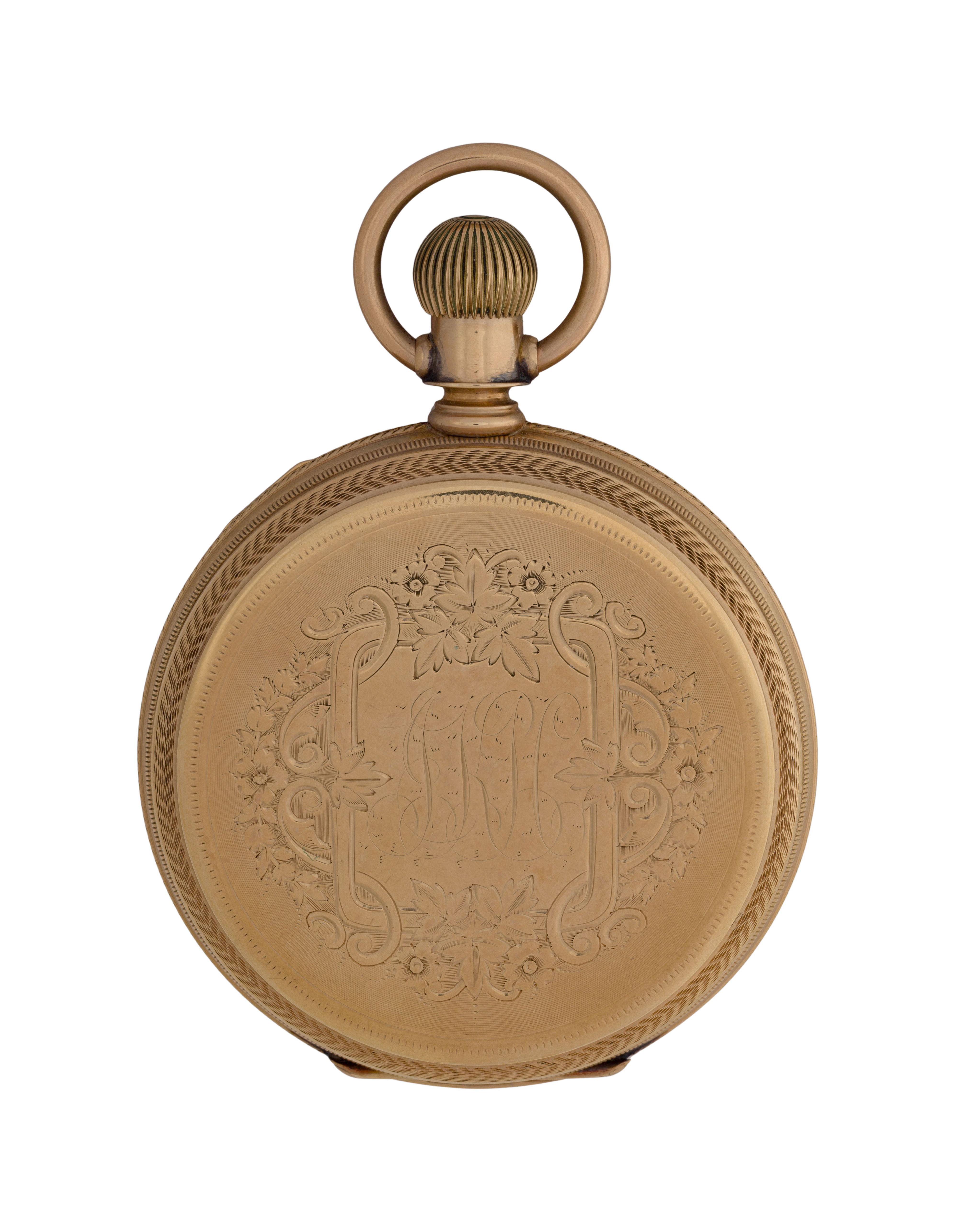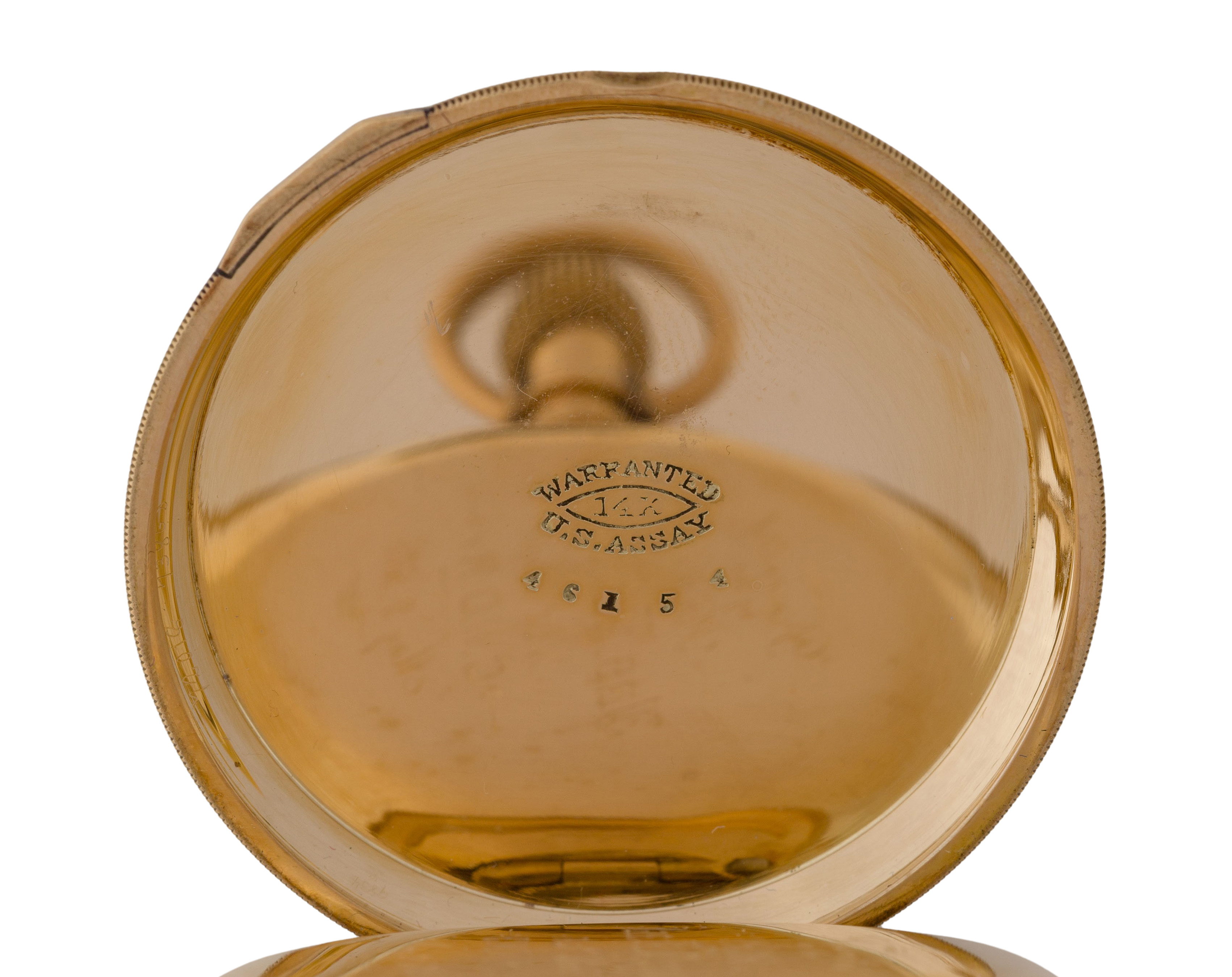 Serial #201903 dating to c.1884, 15-jewel movement, No.4 grade, white dial, Roman numerals, blue hands, subsidiary dial for seconds, stem wind, stem set (marked ‘Warranted 14k U.S. Assay’ inside case)