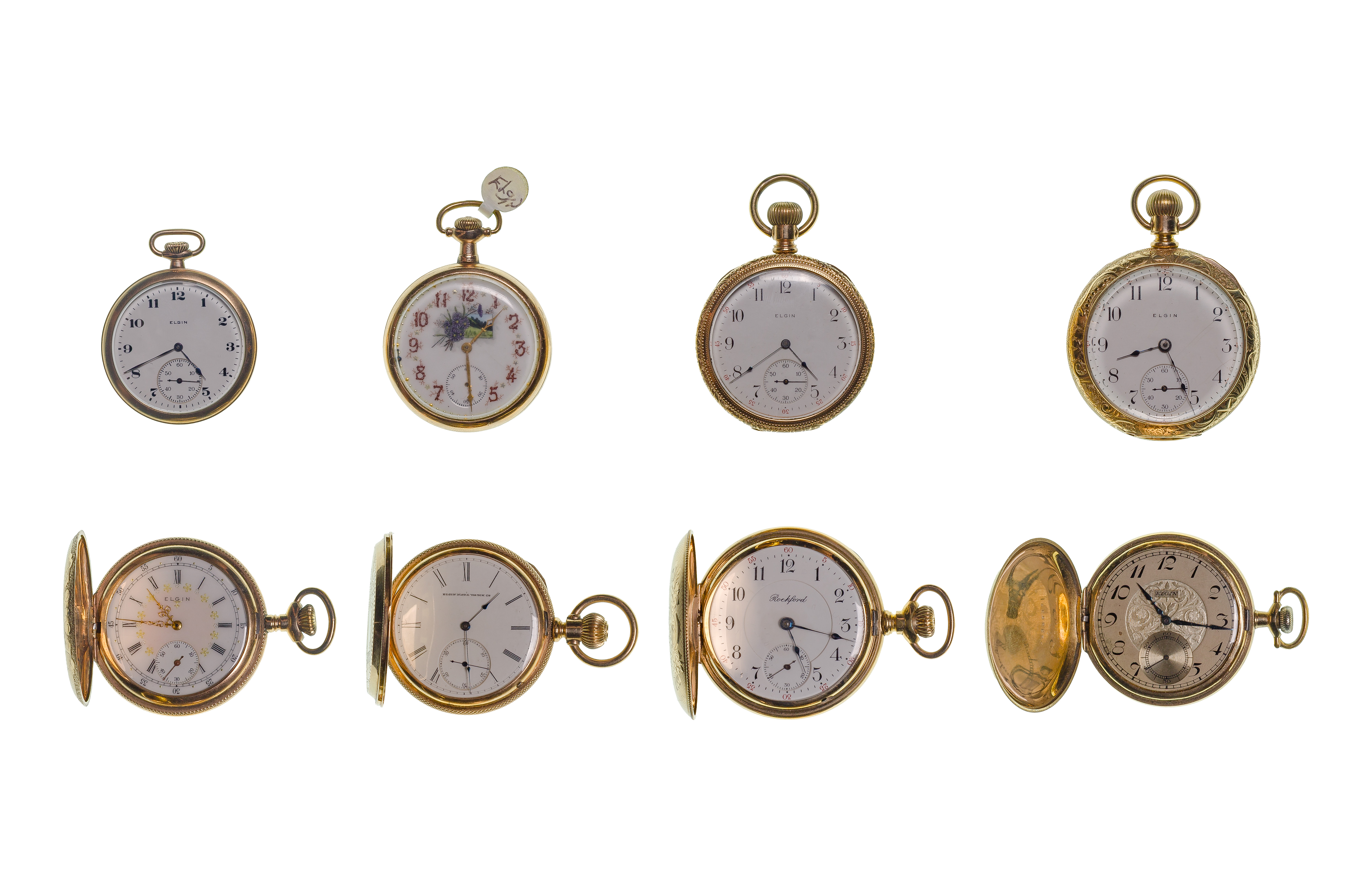 (8) total items including (7) Elgin serial #13804183, serial #2233539 to the case, serial #12228598, serial #1658719, serial #16147035, serial #21807717 and serial #22499757; together with a Rockford serial #526142