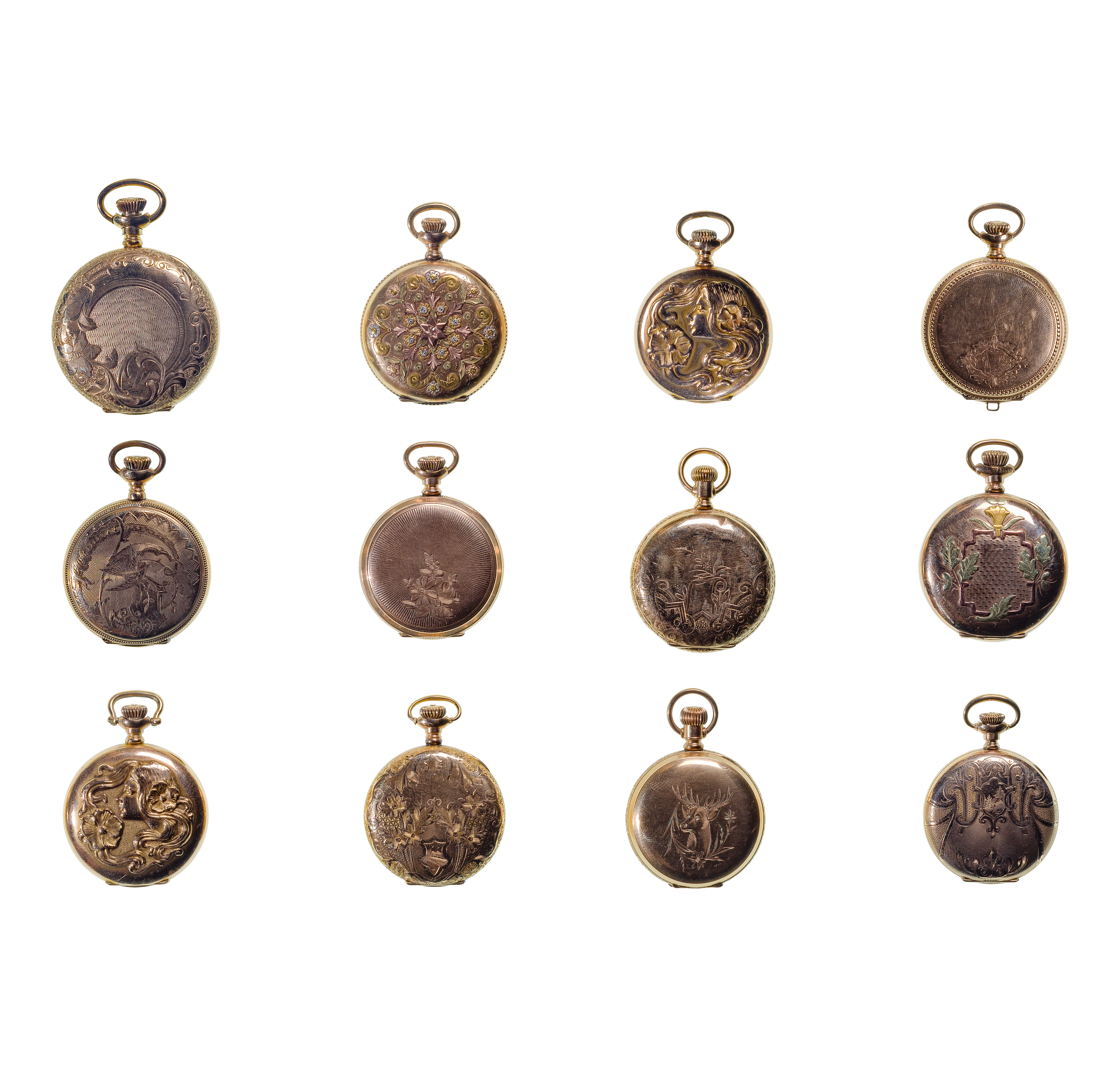 (12) items including (9) hunter case and (3) open face, all having gold filled cases