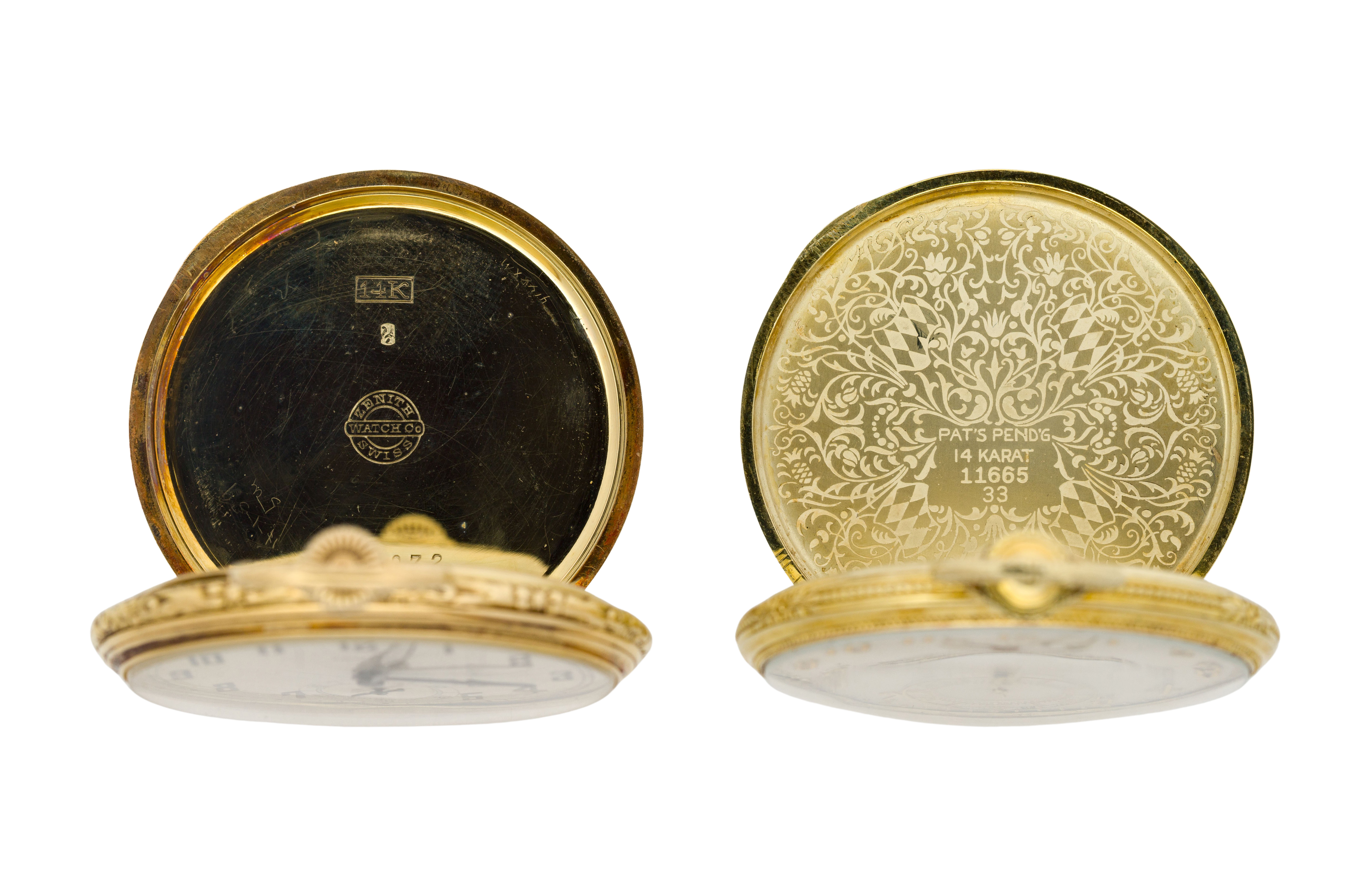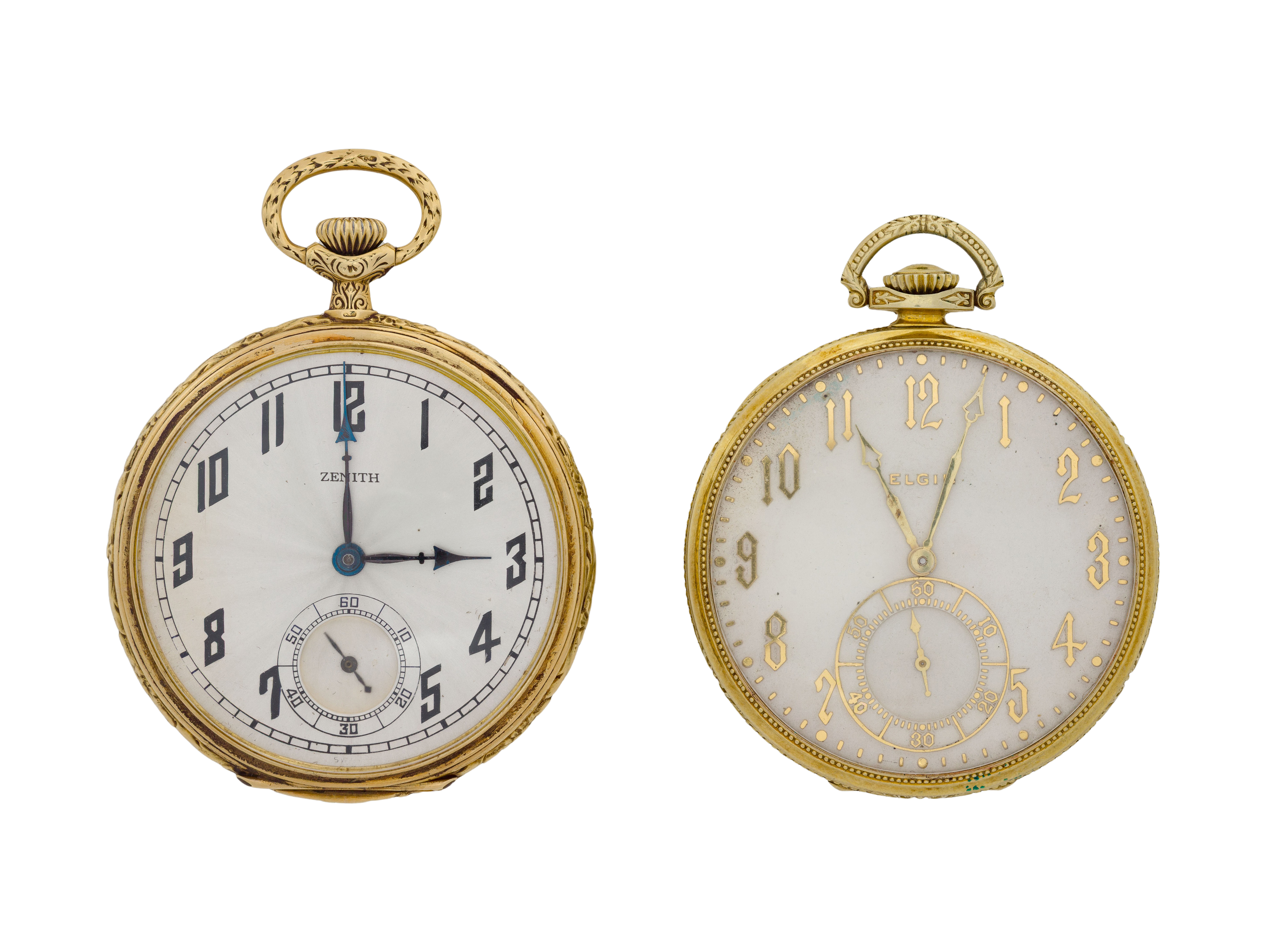 Elgin and Zenith 14k Yellow Gold Open Face Pocket Watches