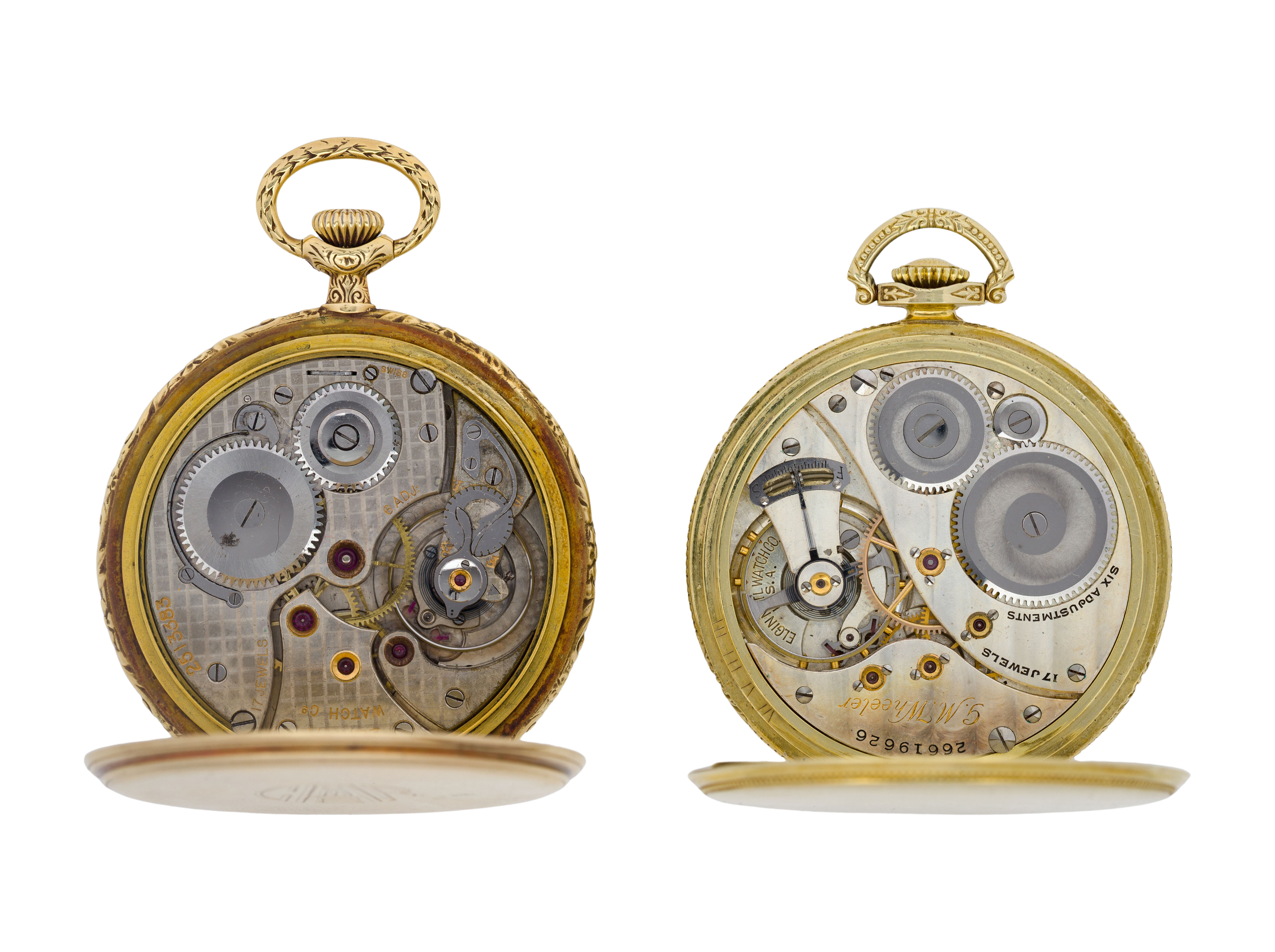 Condition: both running when tested, both cases having scratches, Elgin engraved on back of dust cover, Zenith monogrammed on back of case