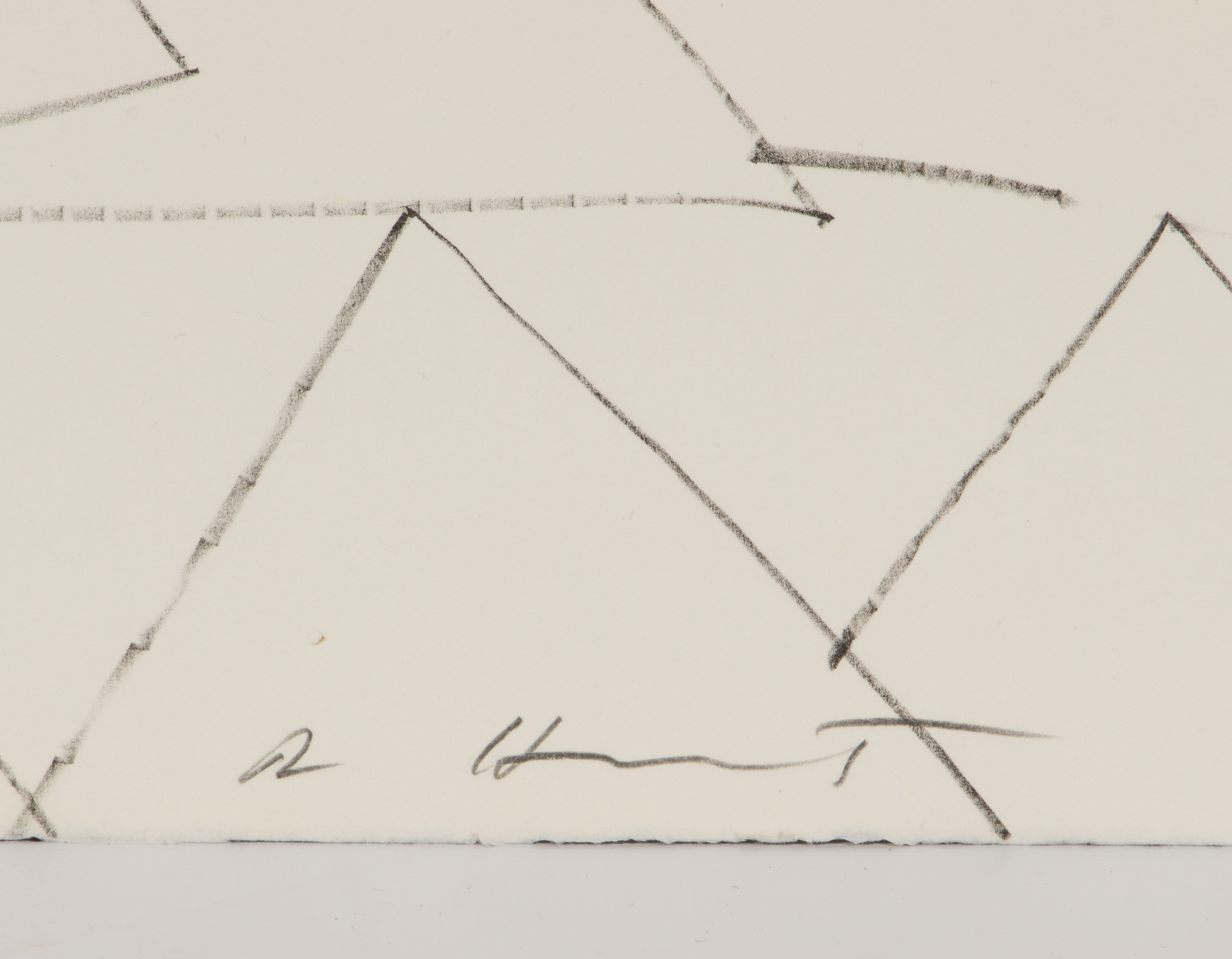 Undated, pencil signed lower right, AP lower center, an abstract image on deckle edge paper, unframed