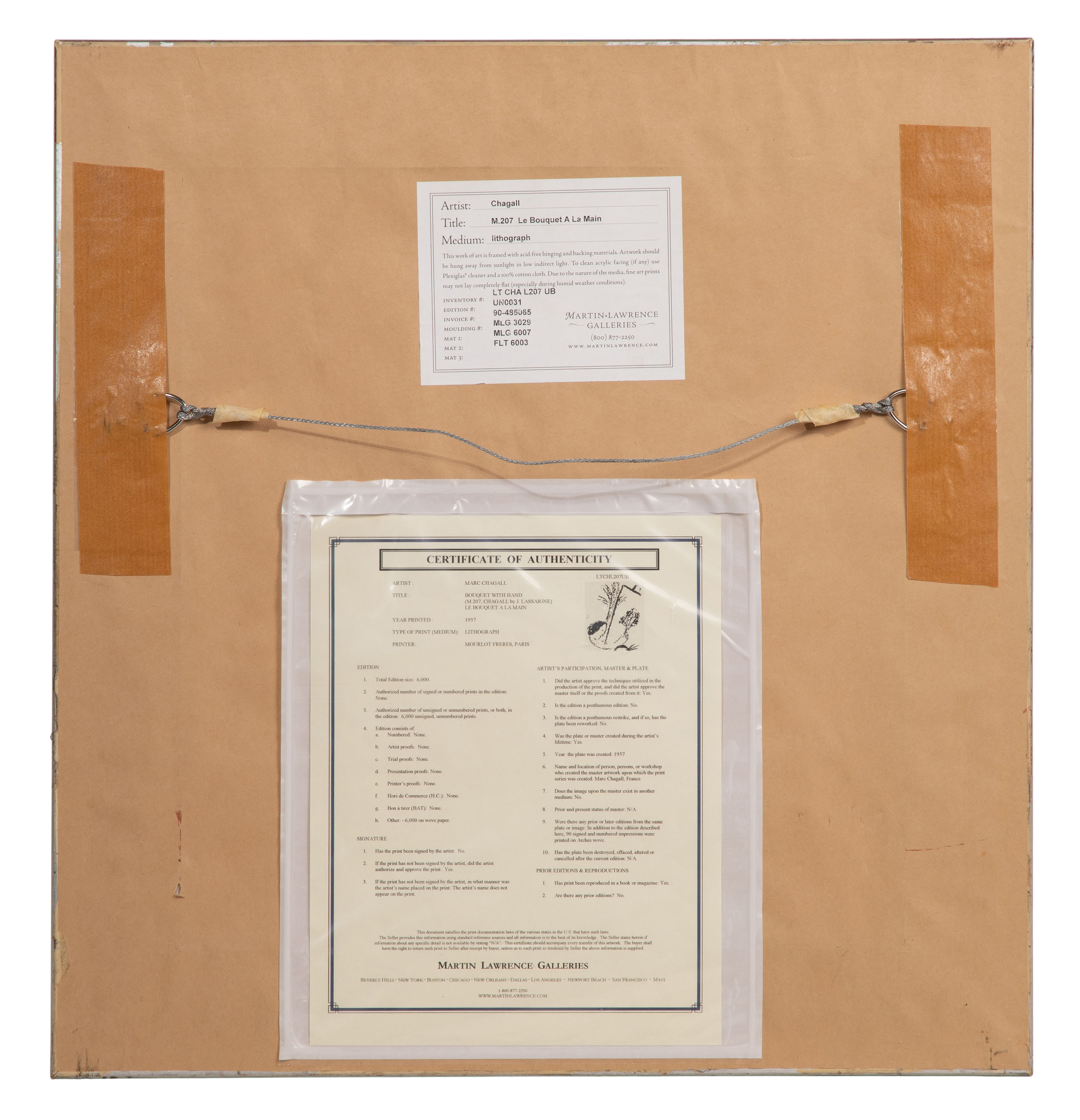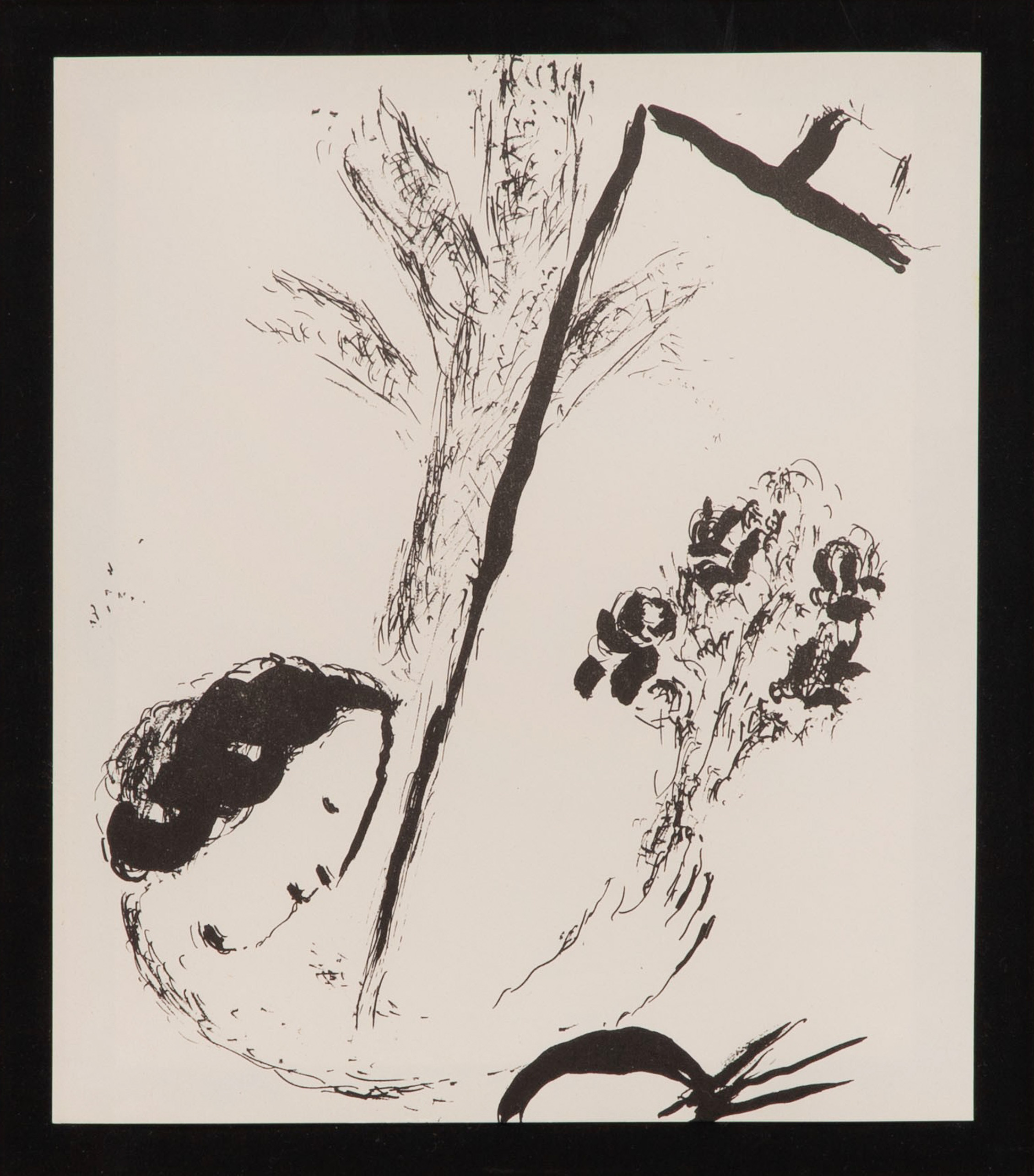 (2) items including an undated, unsigned, ‘Banquet at the Palace of Menelaus’ from the folio of the Odyssey series, matted under acrylic in a black and gold-tone frame as well as ‘Bouquet with Hand’, 1957, unsigned, from an edition of 6000 printed by Mourlot Freres, Paris, float mounted within mat behind acrylic in a gold-tone carved wood frame having a Martin Lawrence Galleries