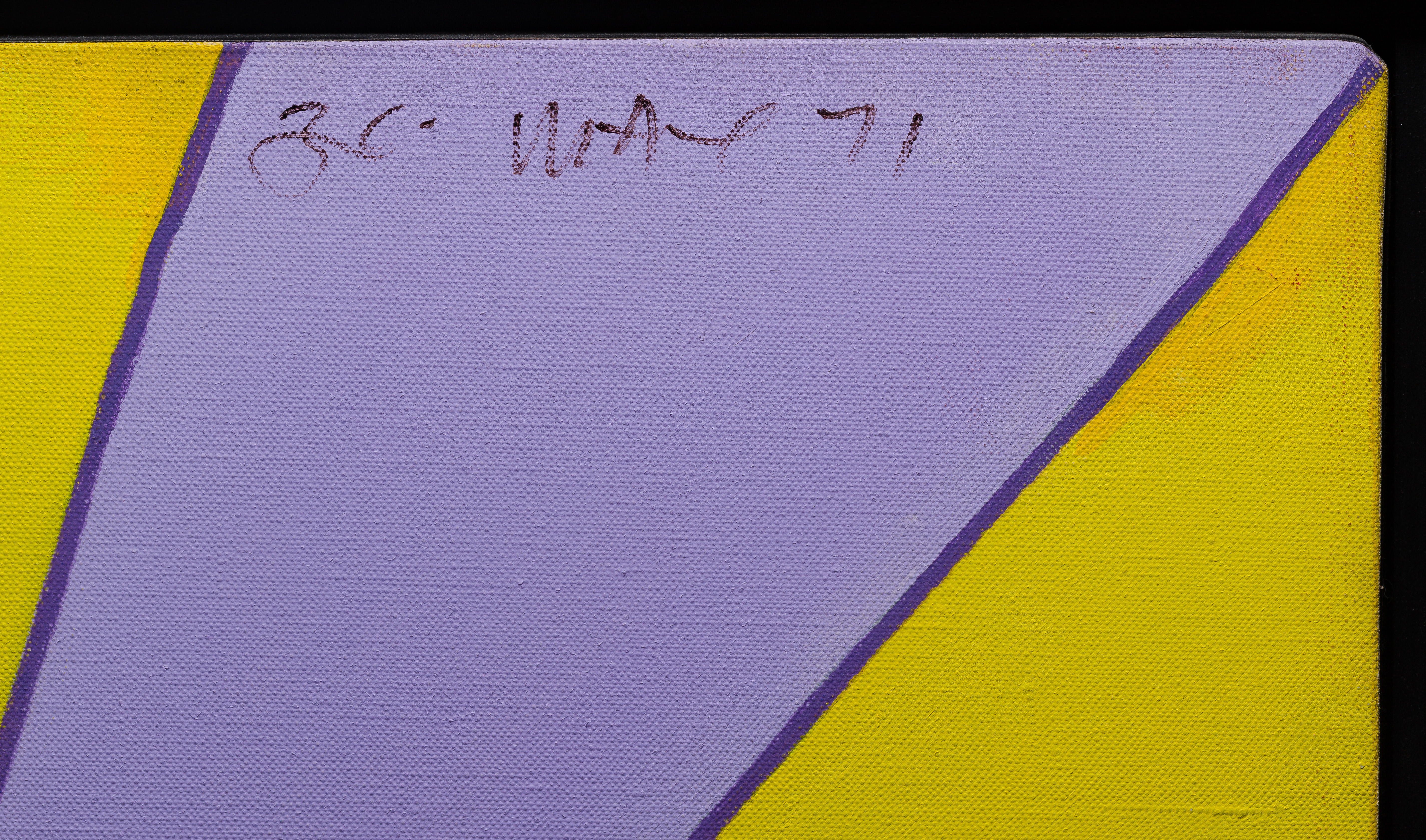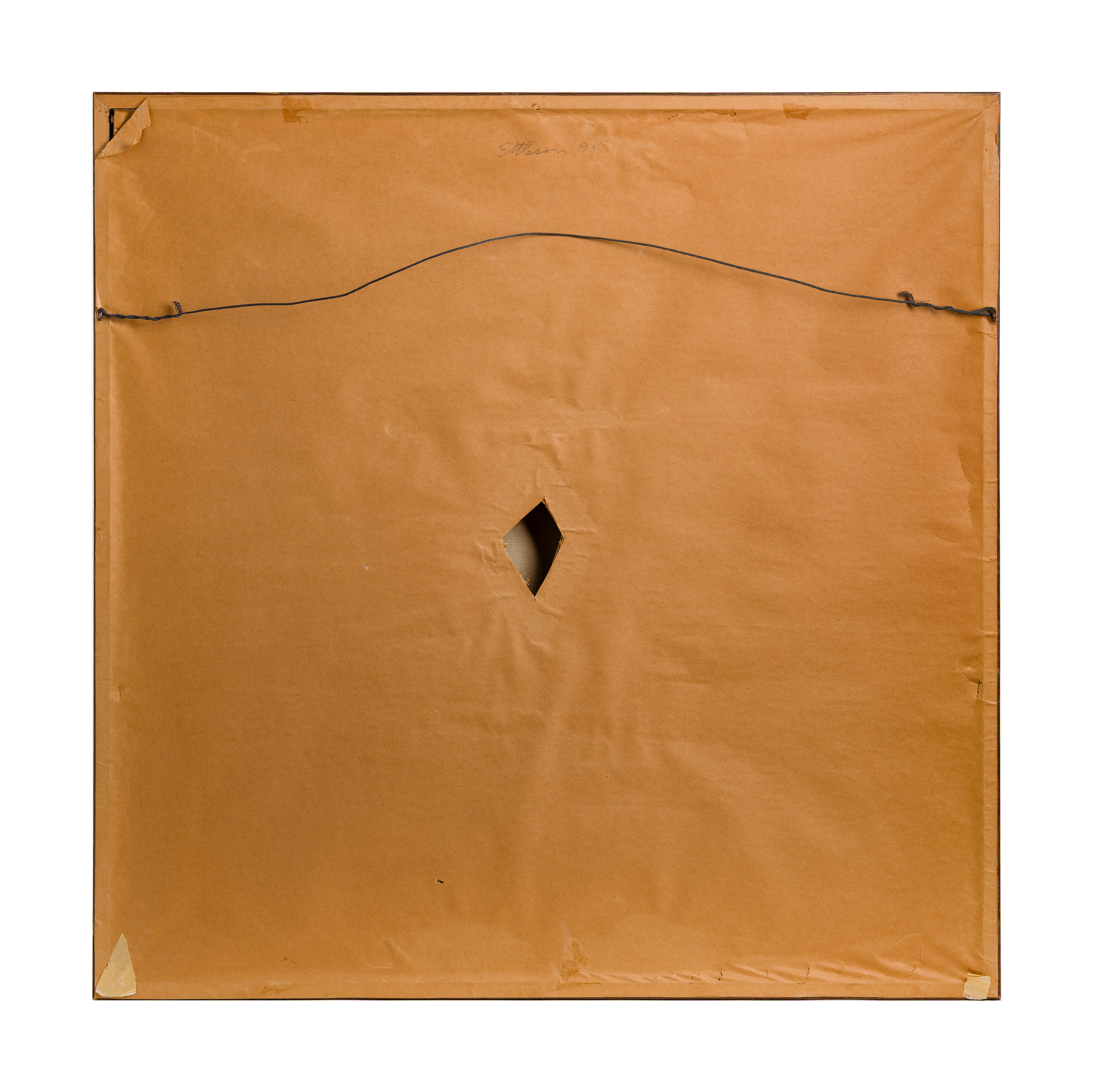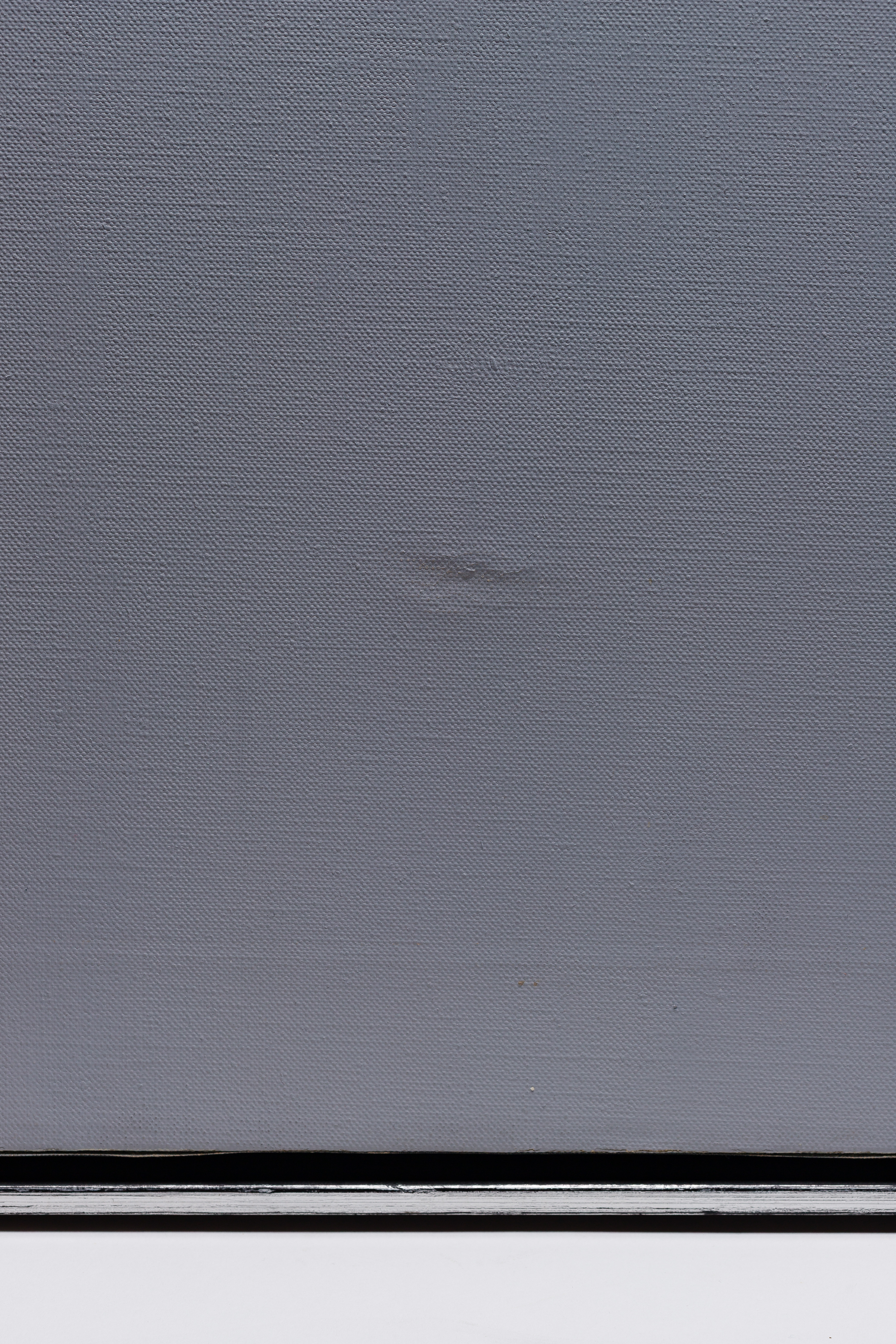 an indentation to canvas right of center, five inches from lower edge, frame having light wear
