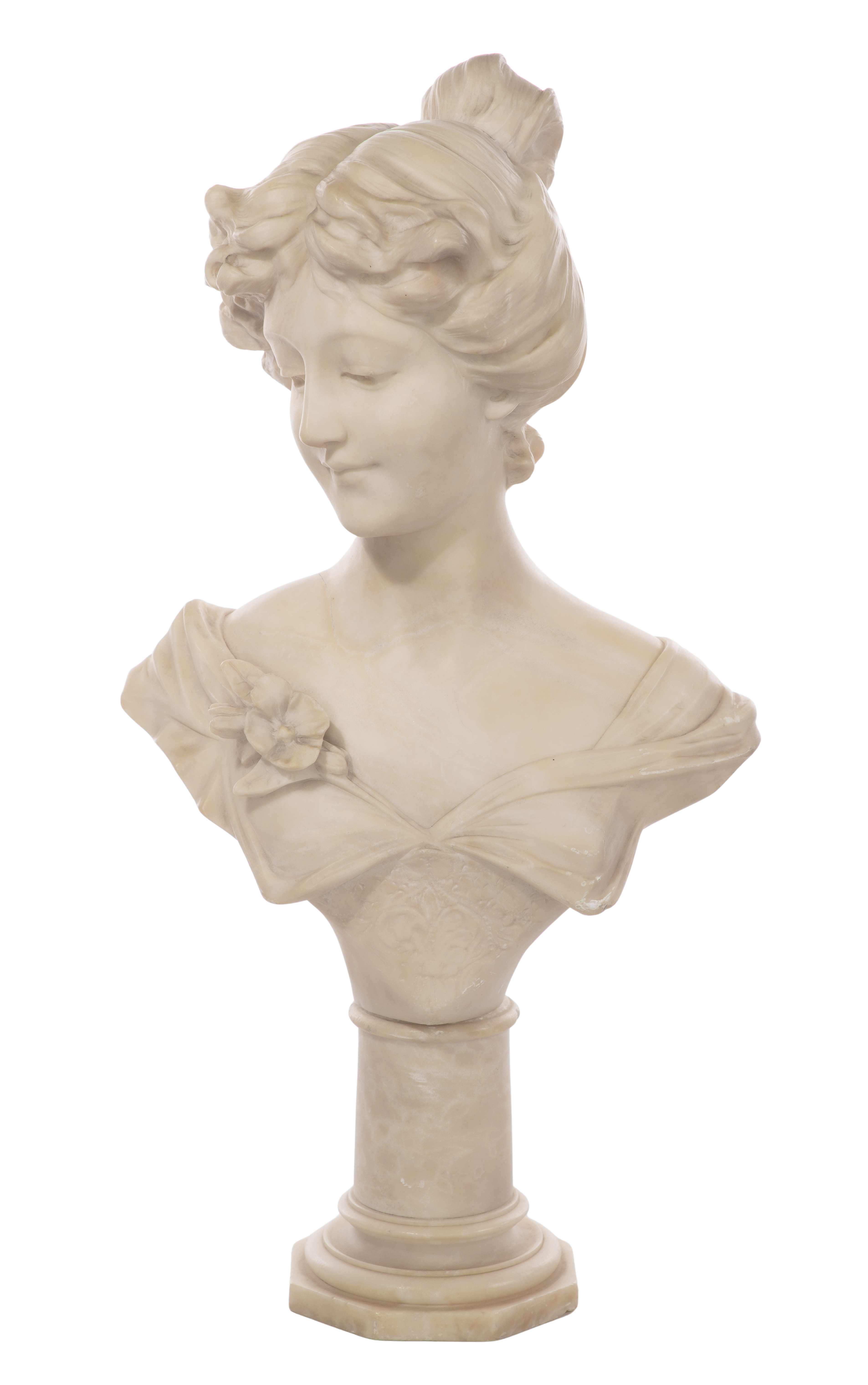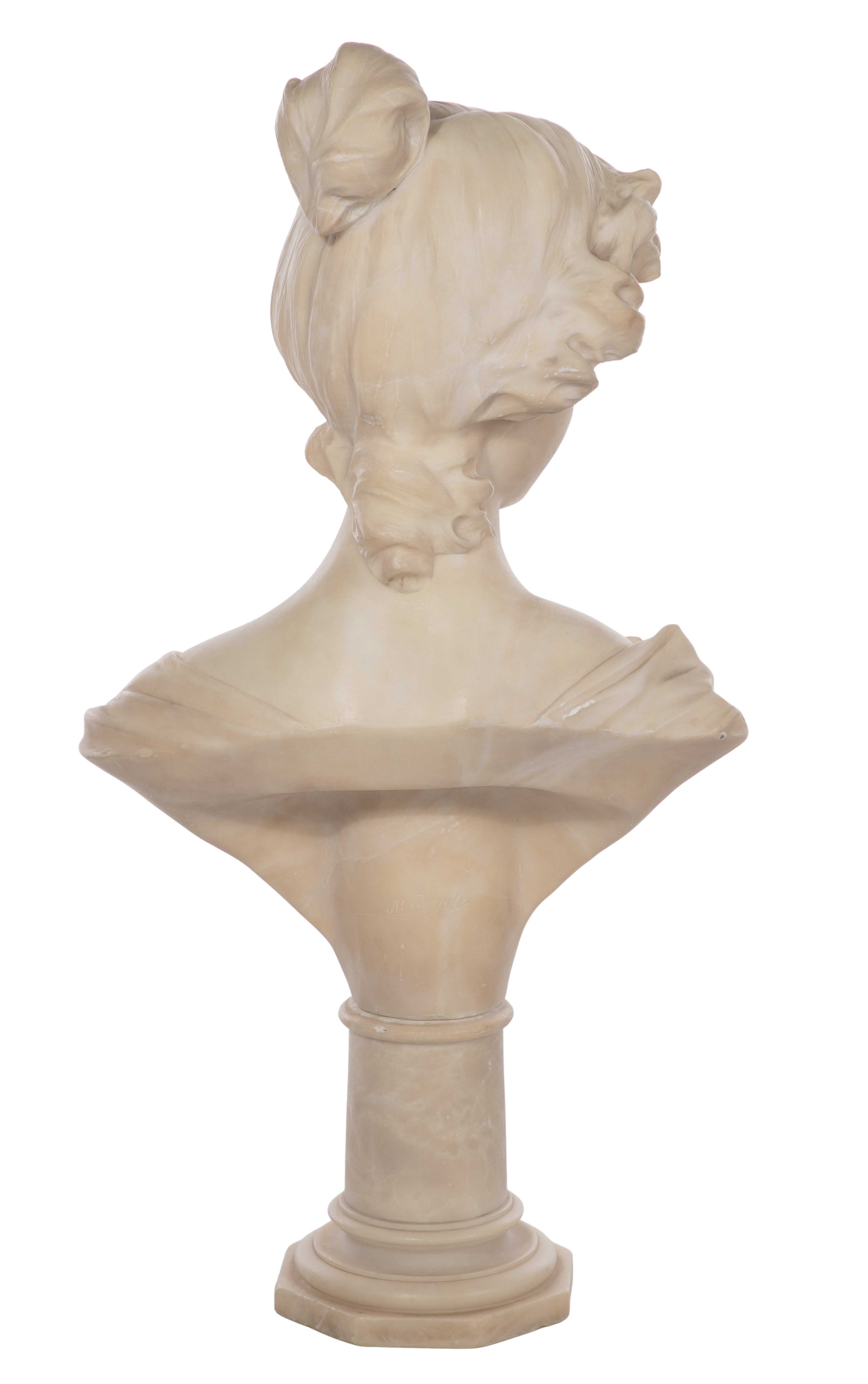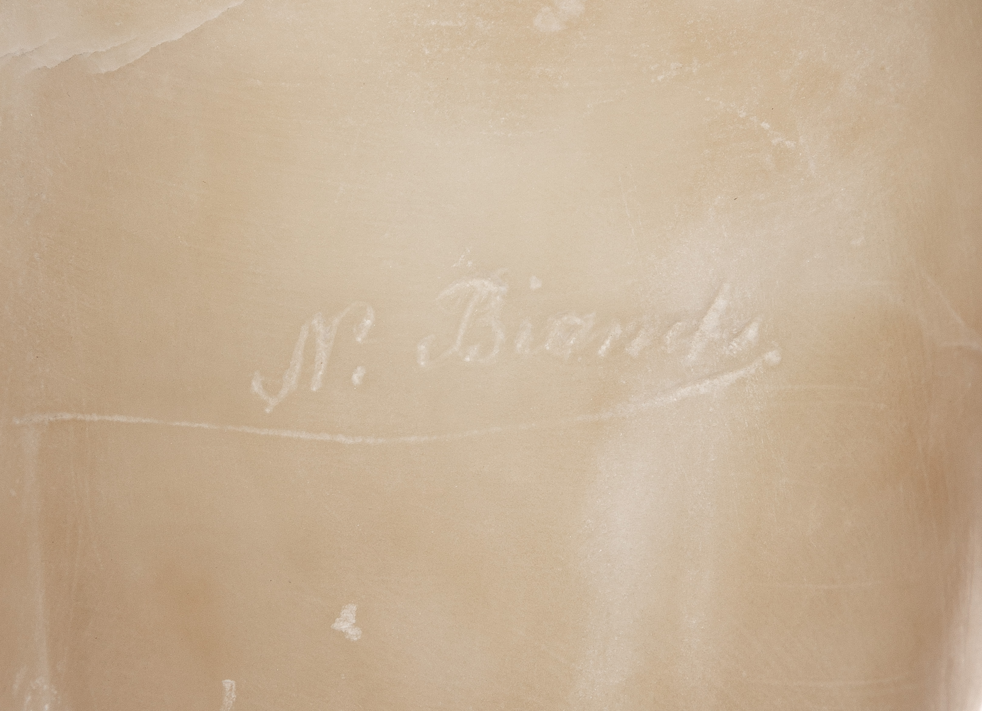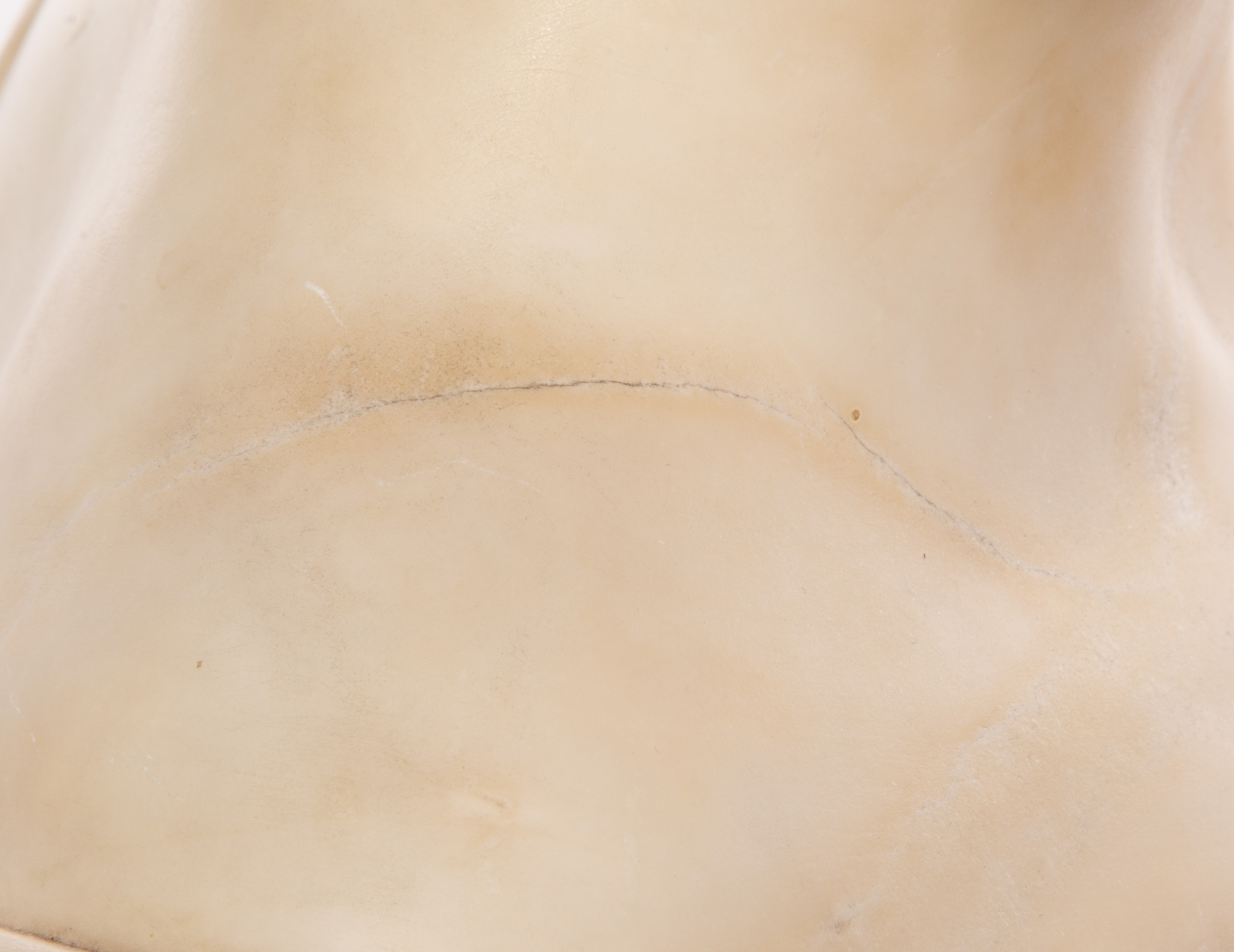 Undated, indistinctly signed on back, having separately carved and applied hair bun and a separate pedestal base joined by a steel rod