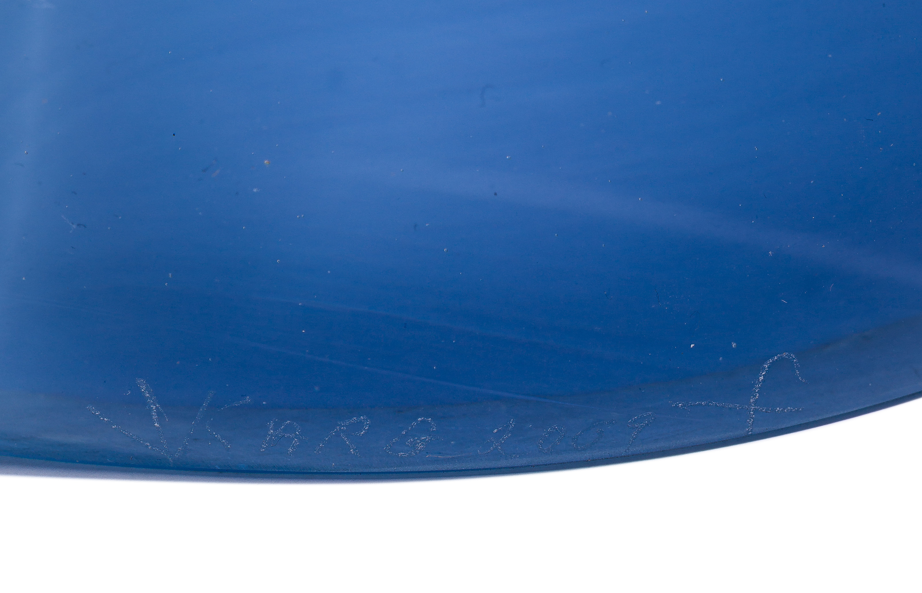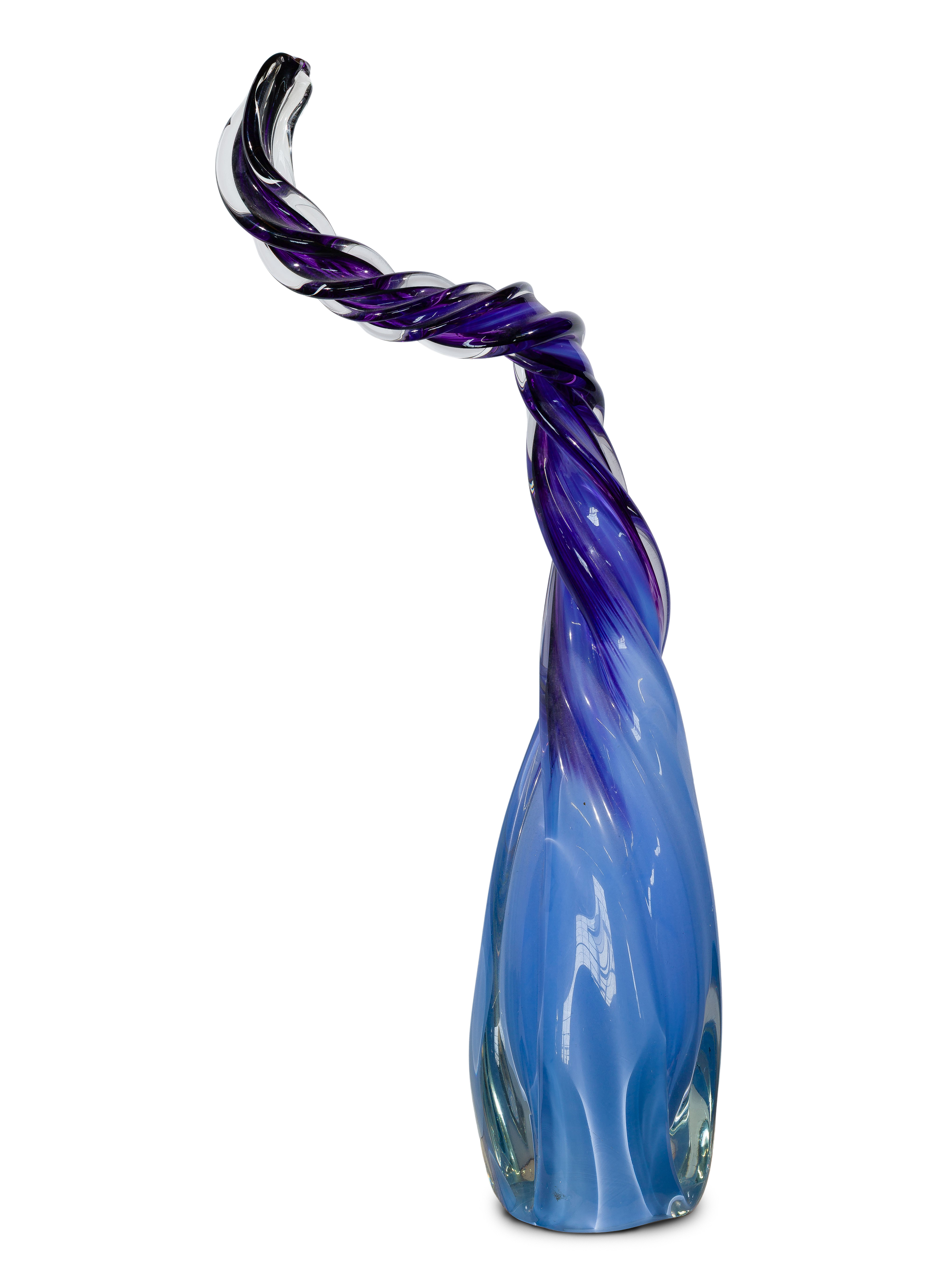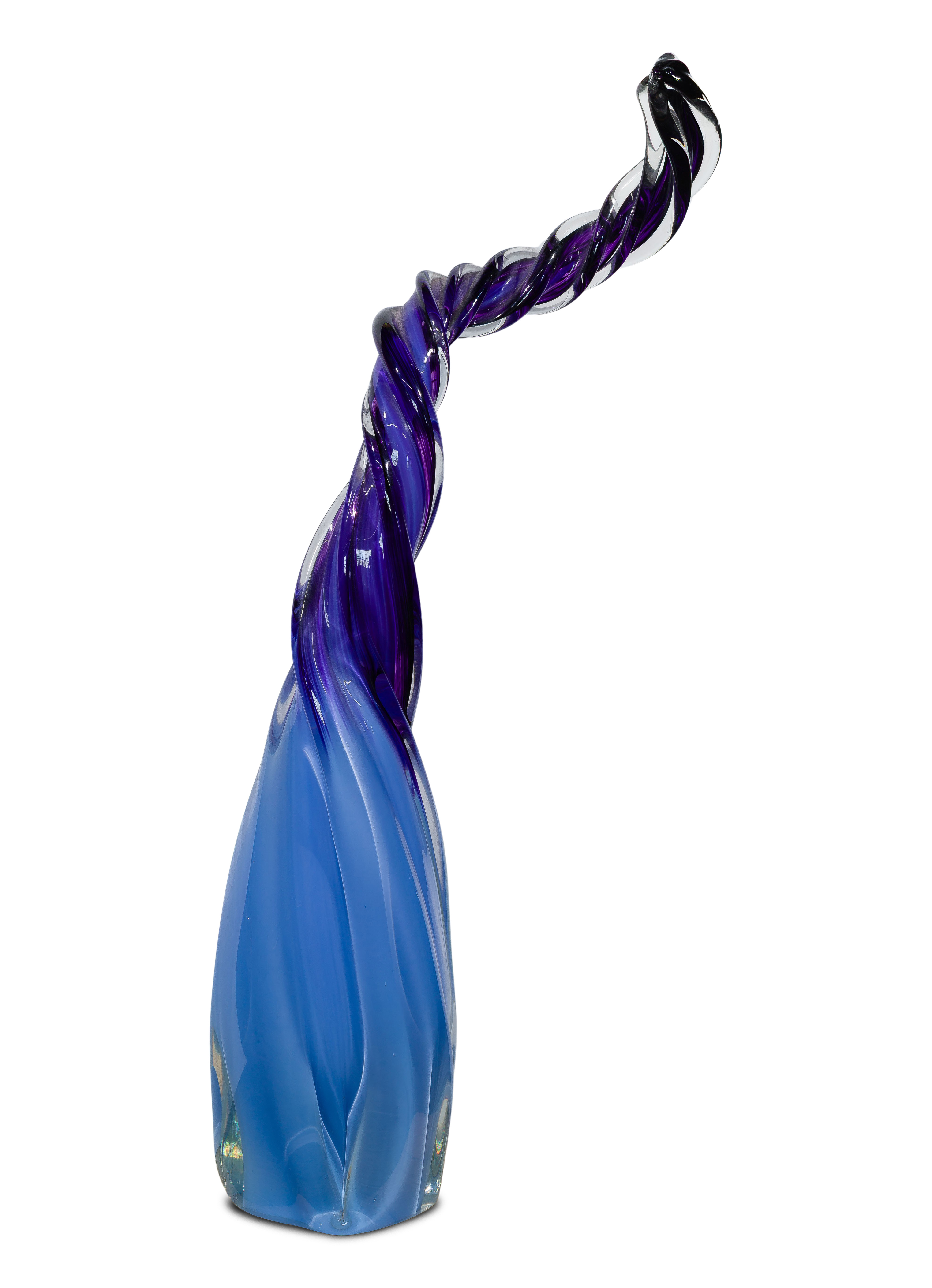 2009, signed, elongated free-form sculpture having gradient purple interior and twisted top