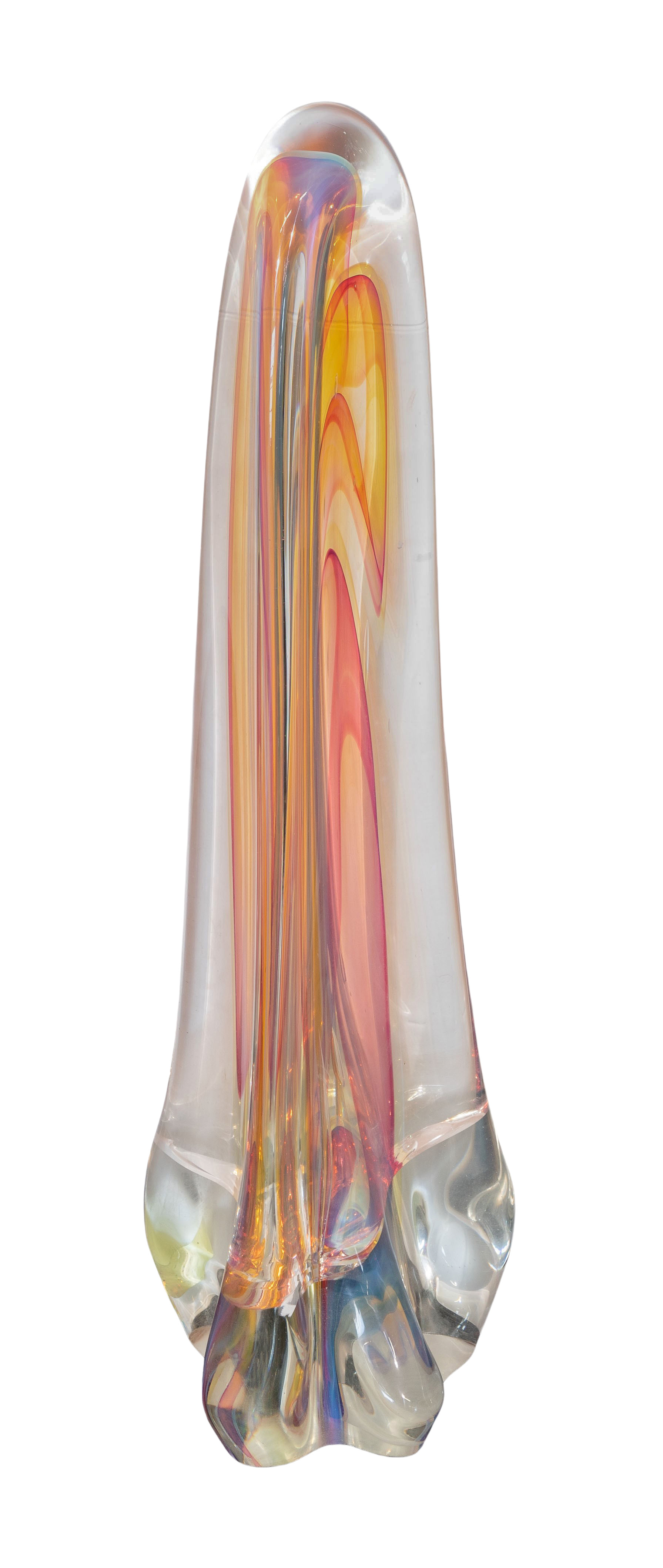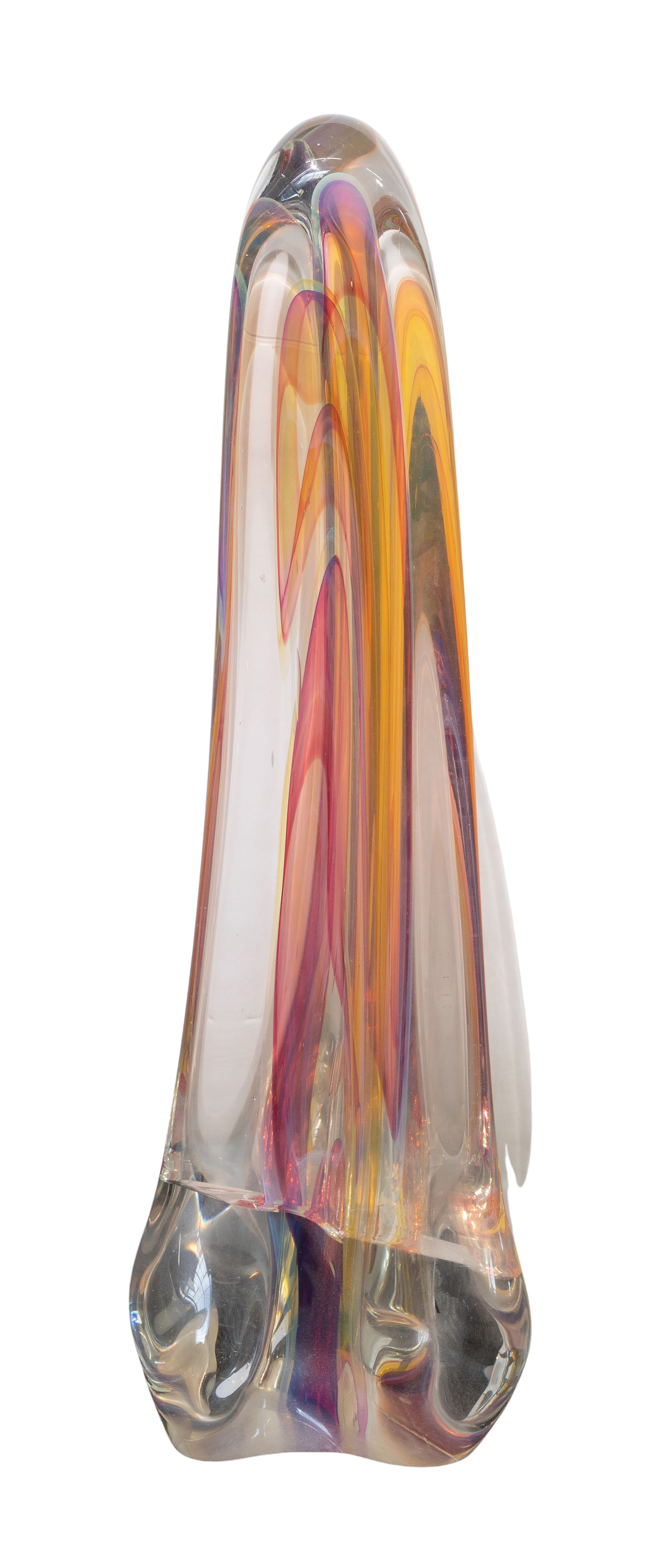 1996, signed, a free-form sculpture having internal swirling colors of yellow, lavender and blue, in an abstract design