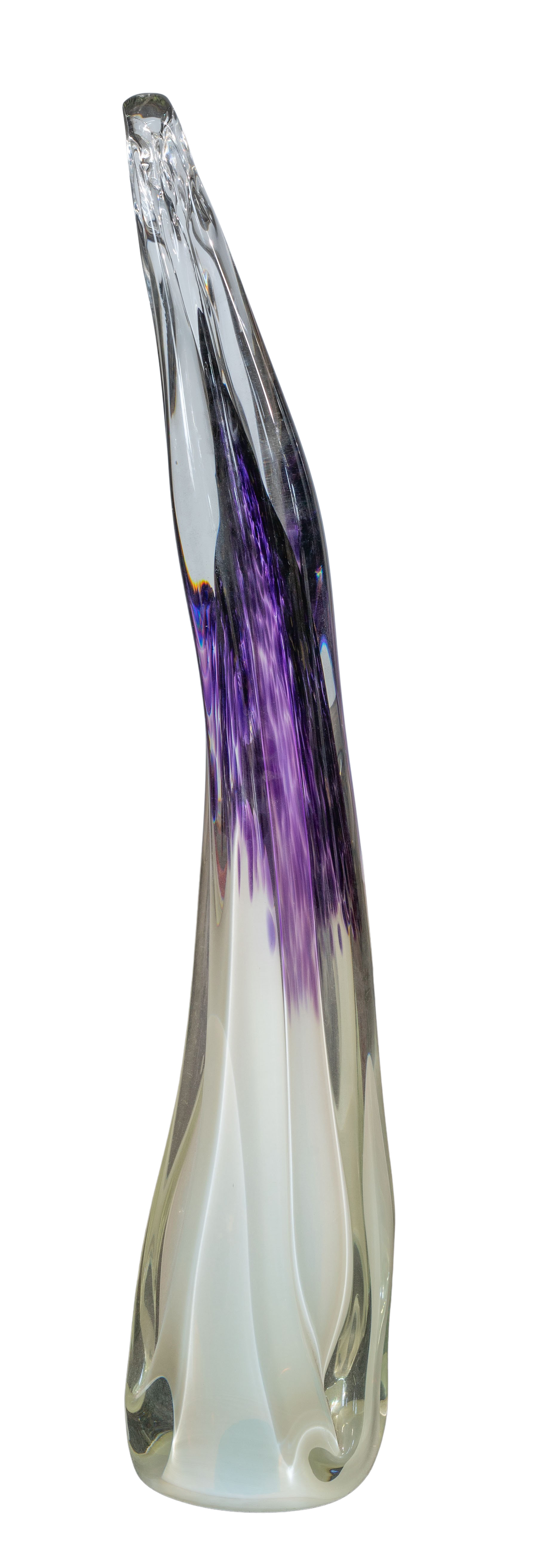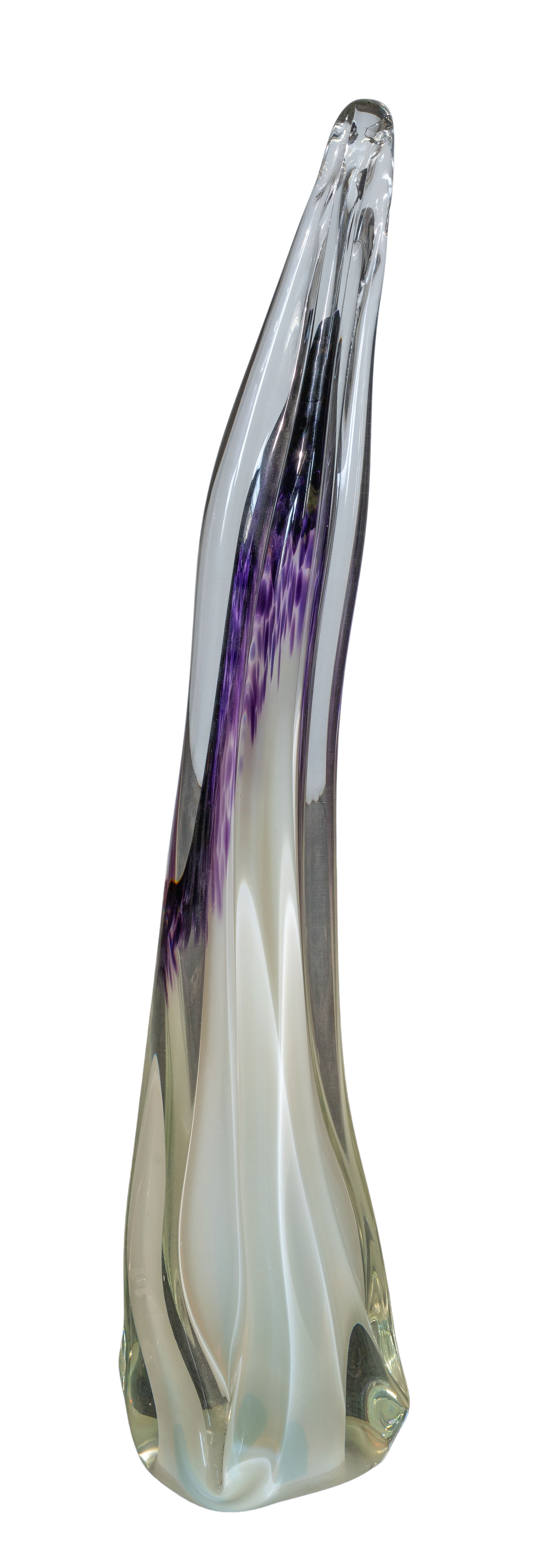 2010, signed, elongated free-form sculpture having internal swirling purple color and abstract design