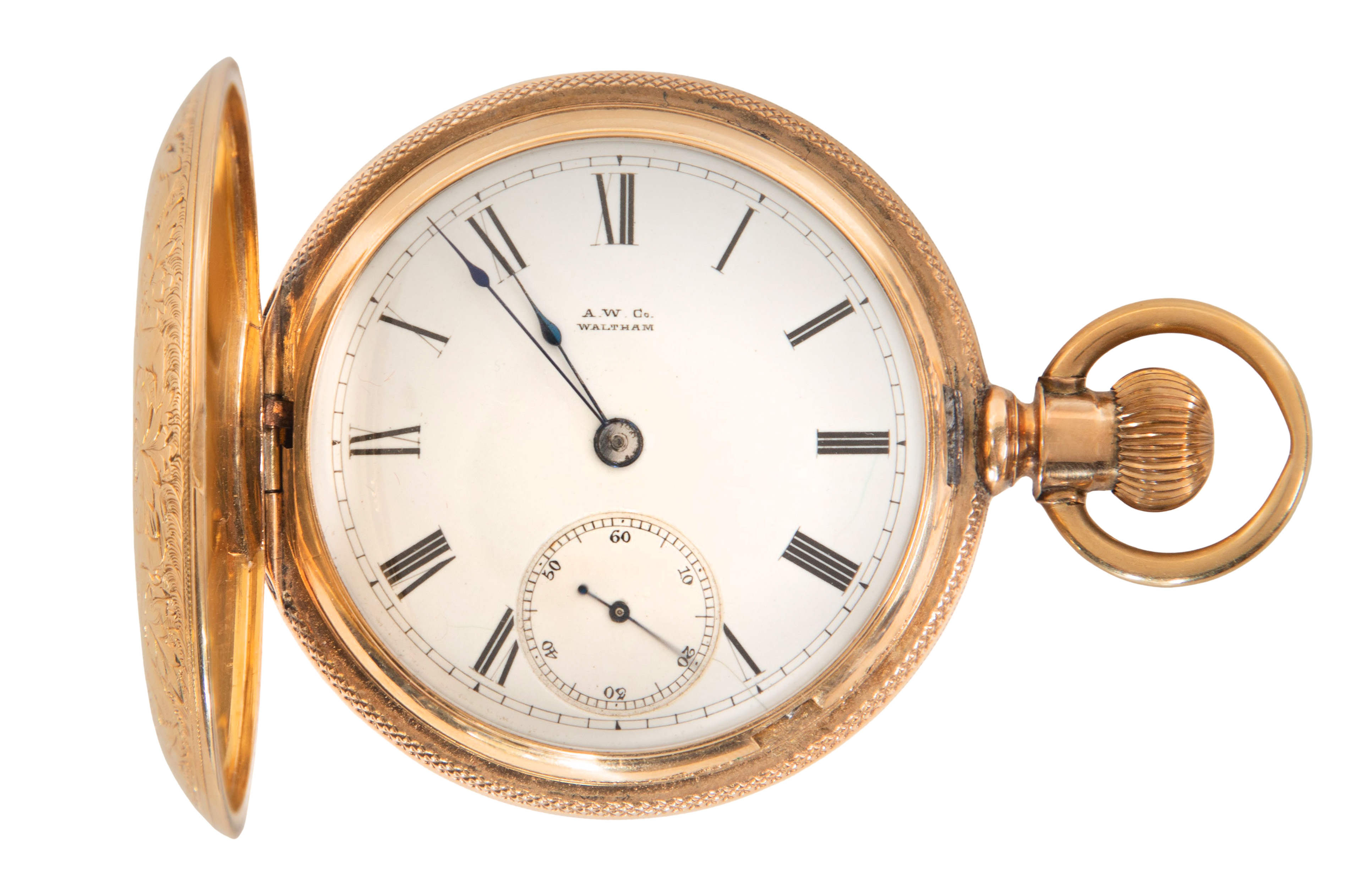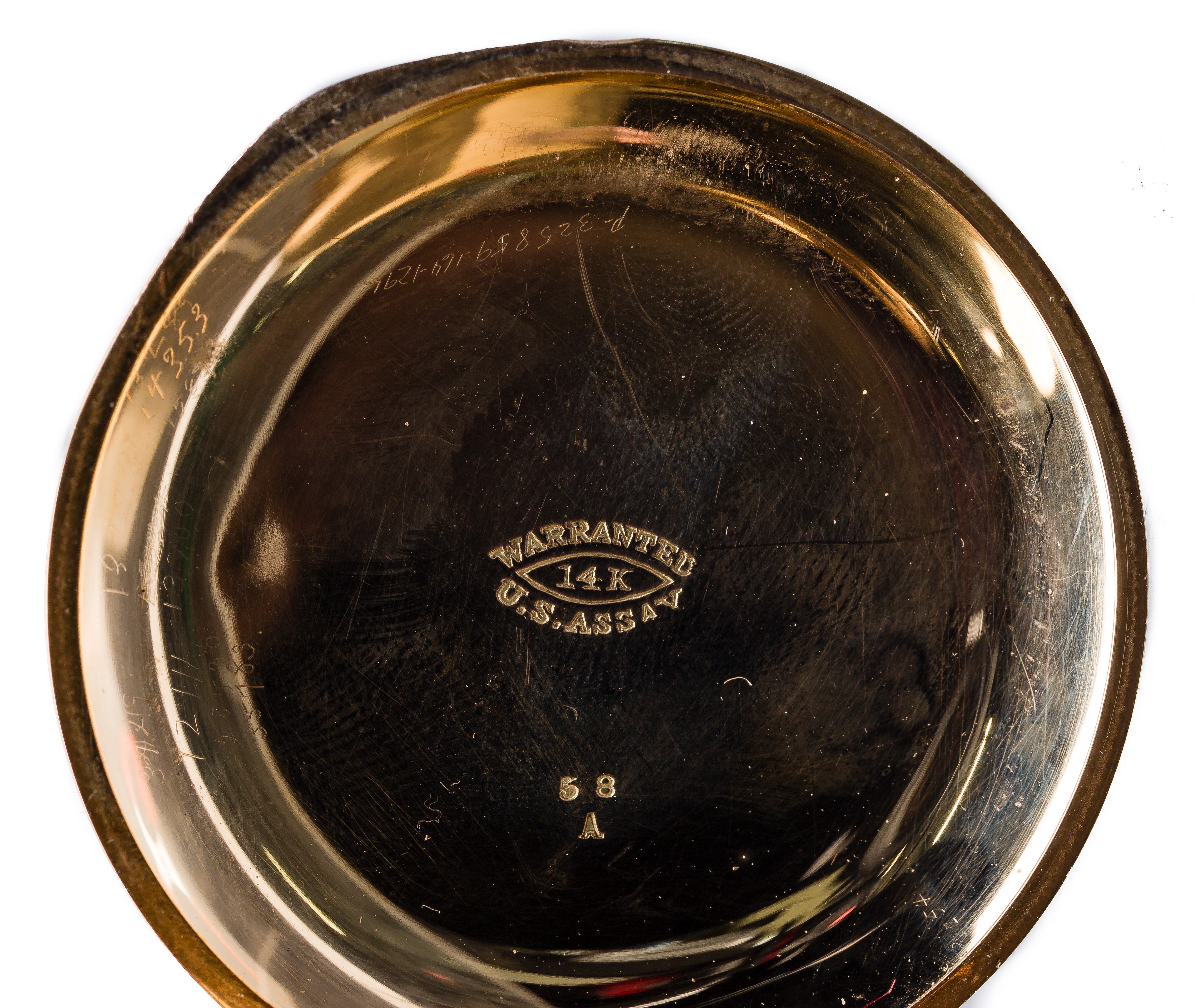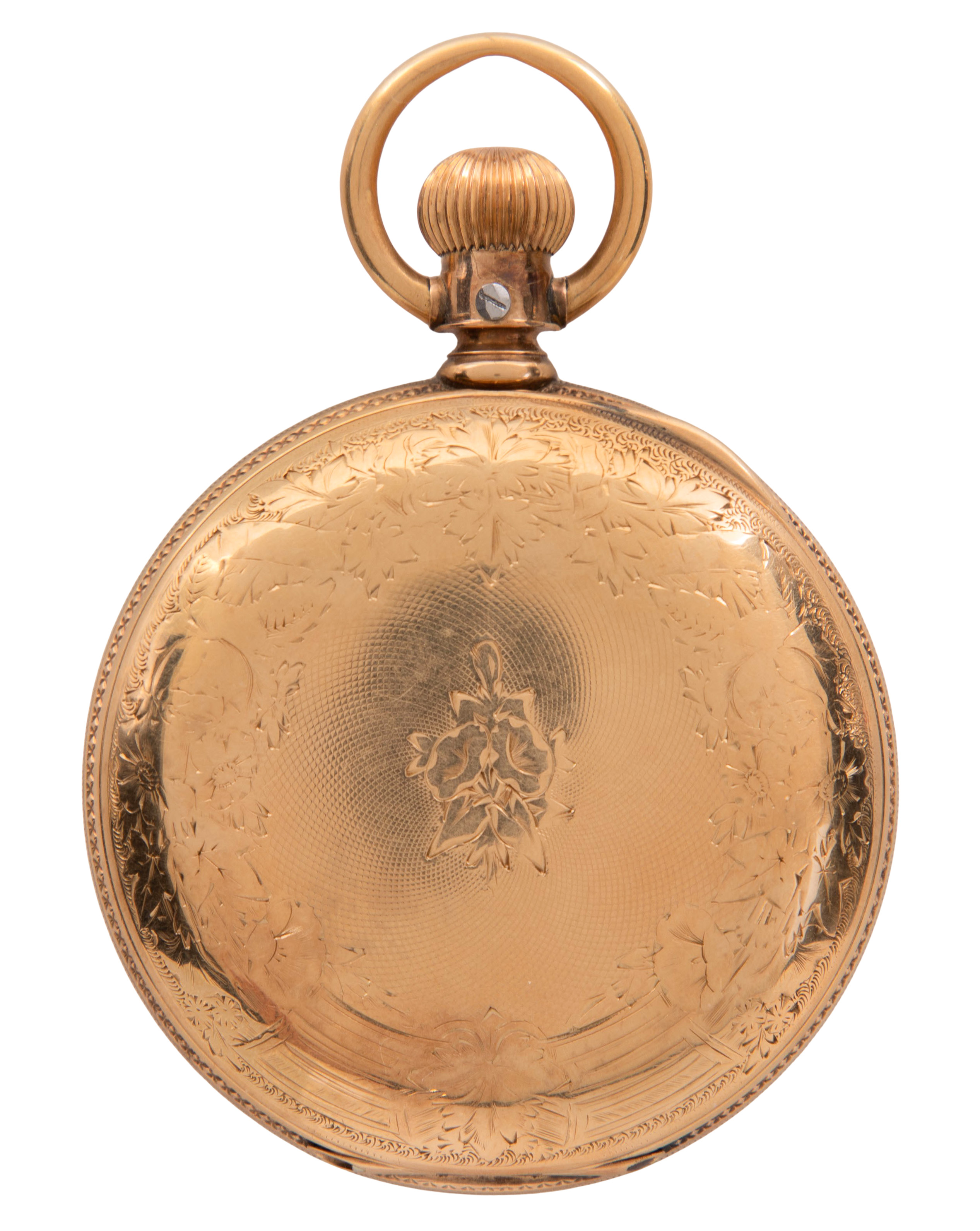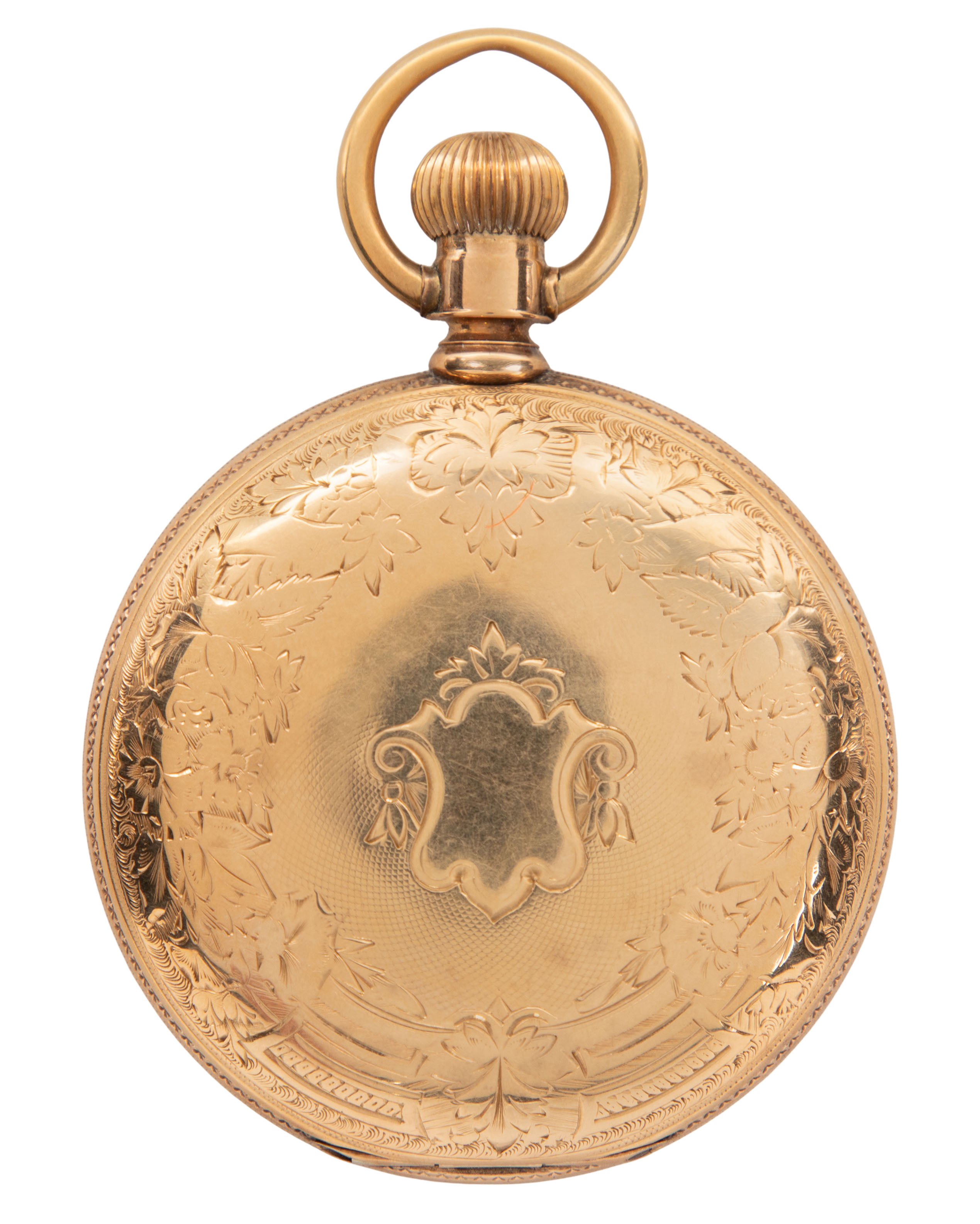 Serial #2154400, 15-jewel movement, seconds dial, white dial, Roman numerals (marked ‘Warranted USA Assay 14k’)