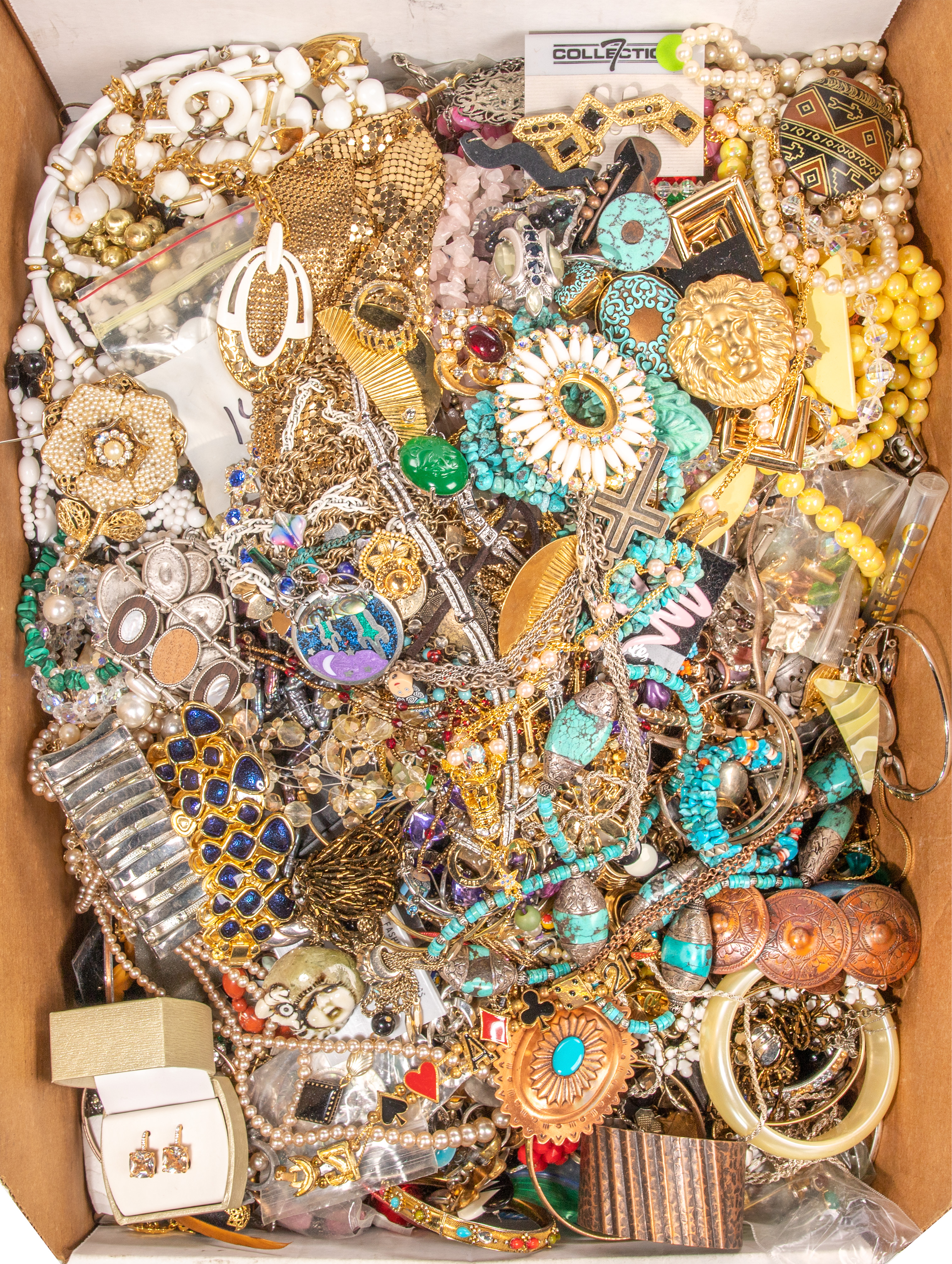 Approximately (40) pounds of fashion jewelry including necklaces, bracelets, earrings, pins, pendants, some silver noted