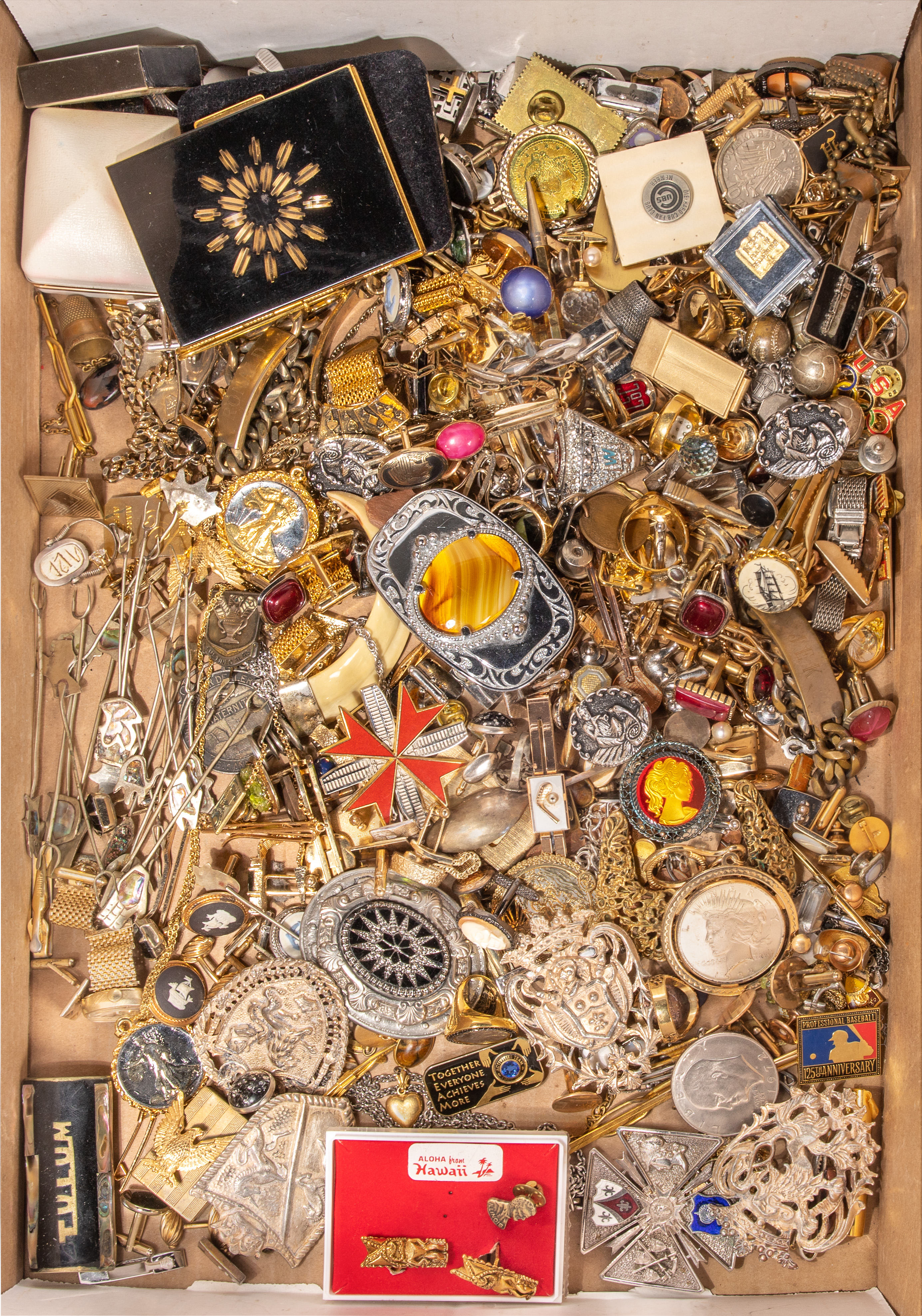 Approximately (7) pounds of fashion jewelry including cufflinks, bracelets, pins, rings, boxes