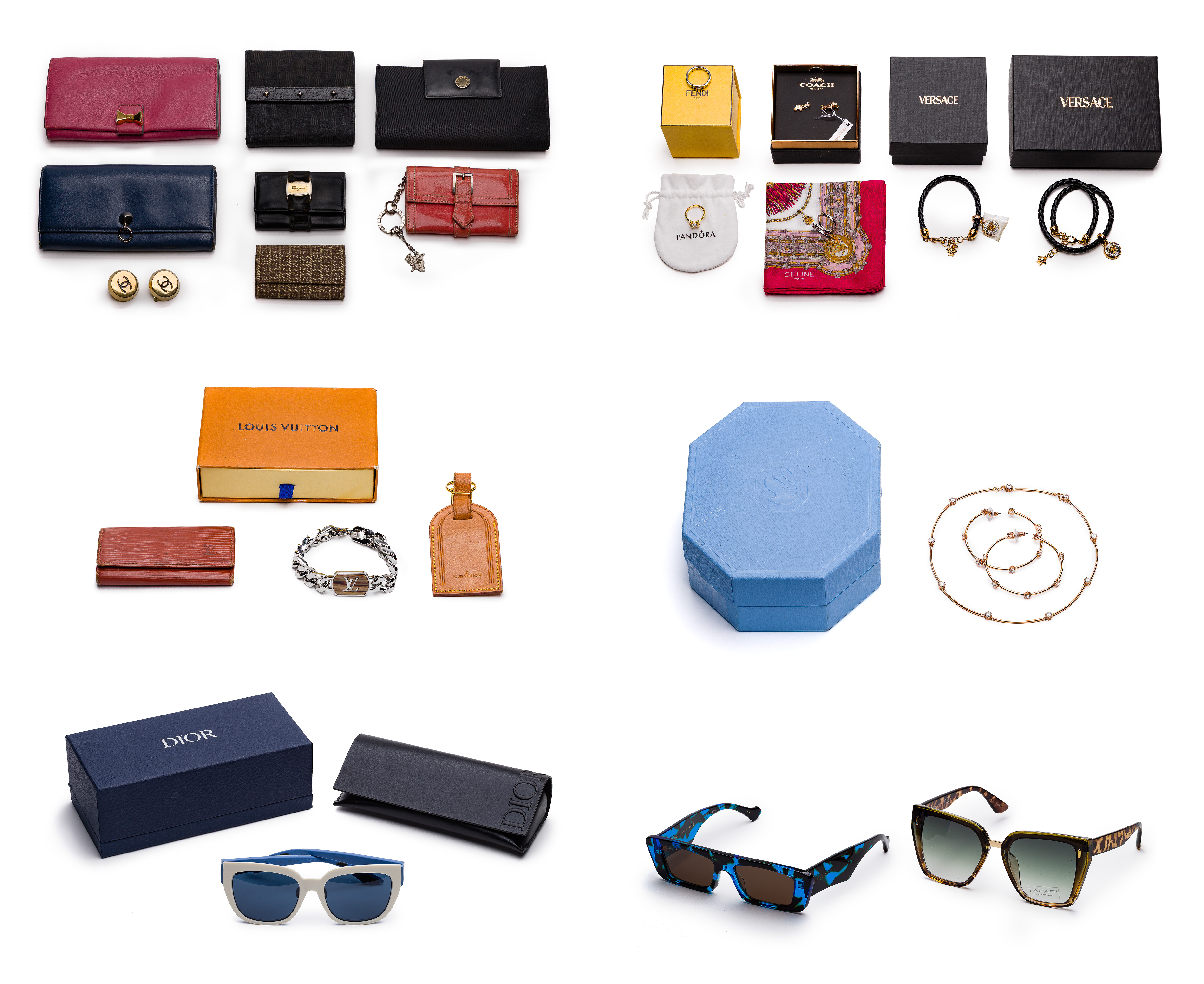 (20) items including a Louis Vuitton luggage tag, bracelet and key case as well as wallets, jewelry, sunglasses by designers Versace, Fendi, Gucci, Chanel and Burberry, some having boxes