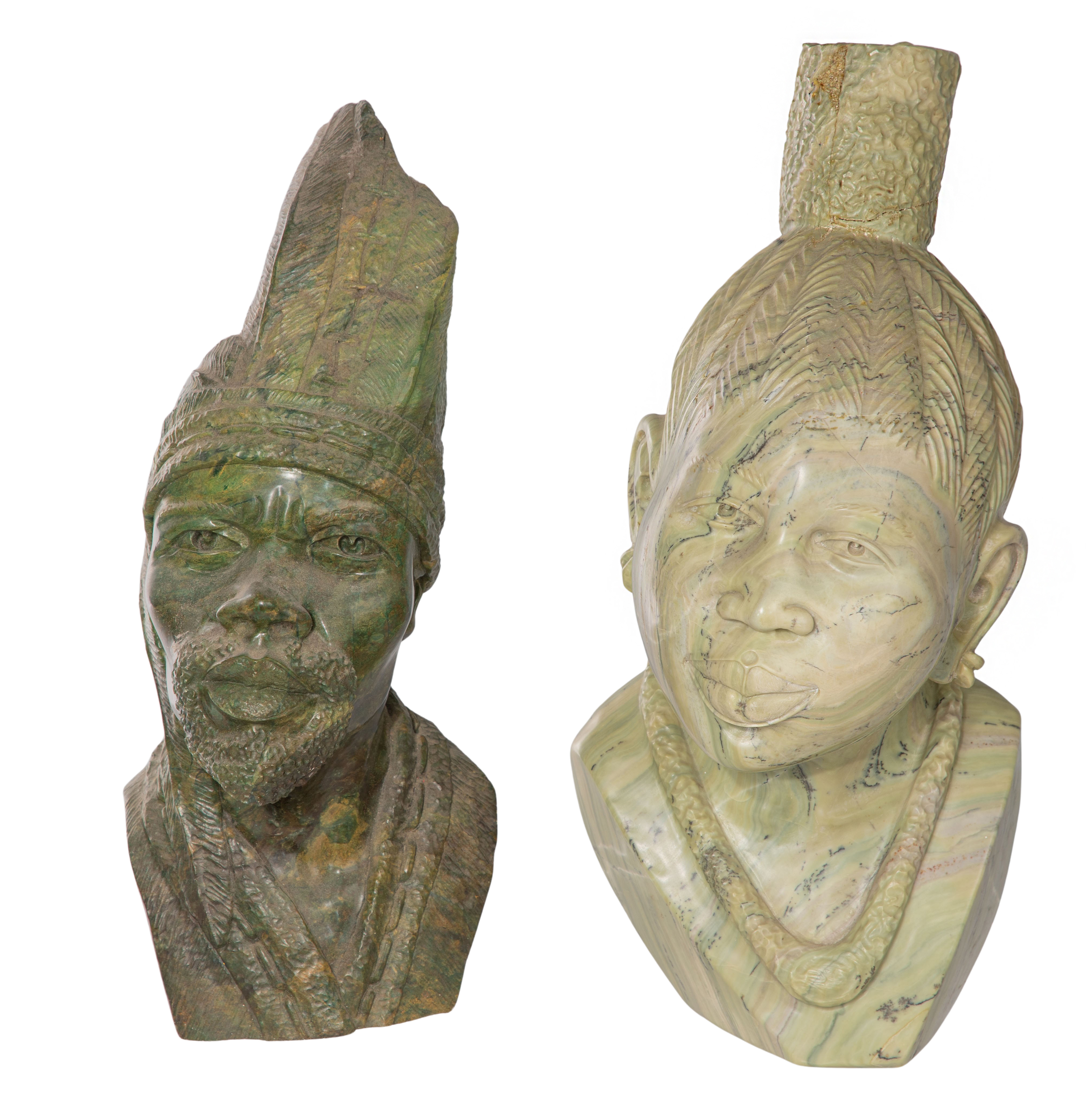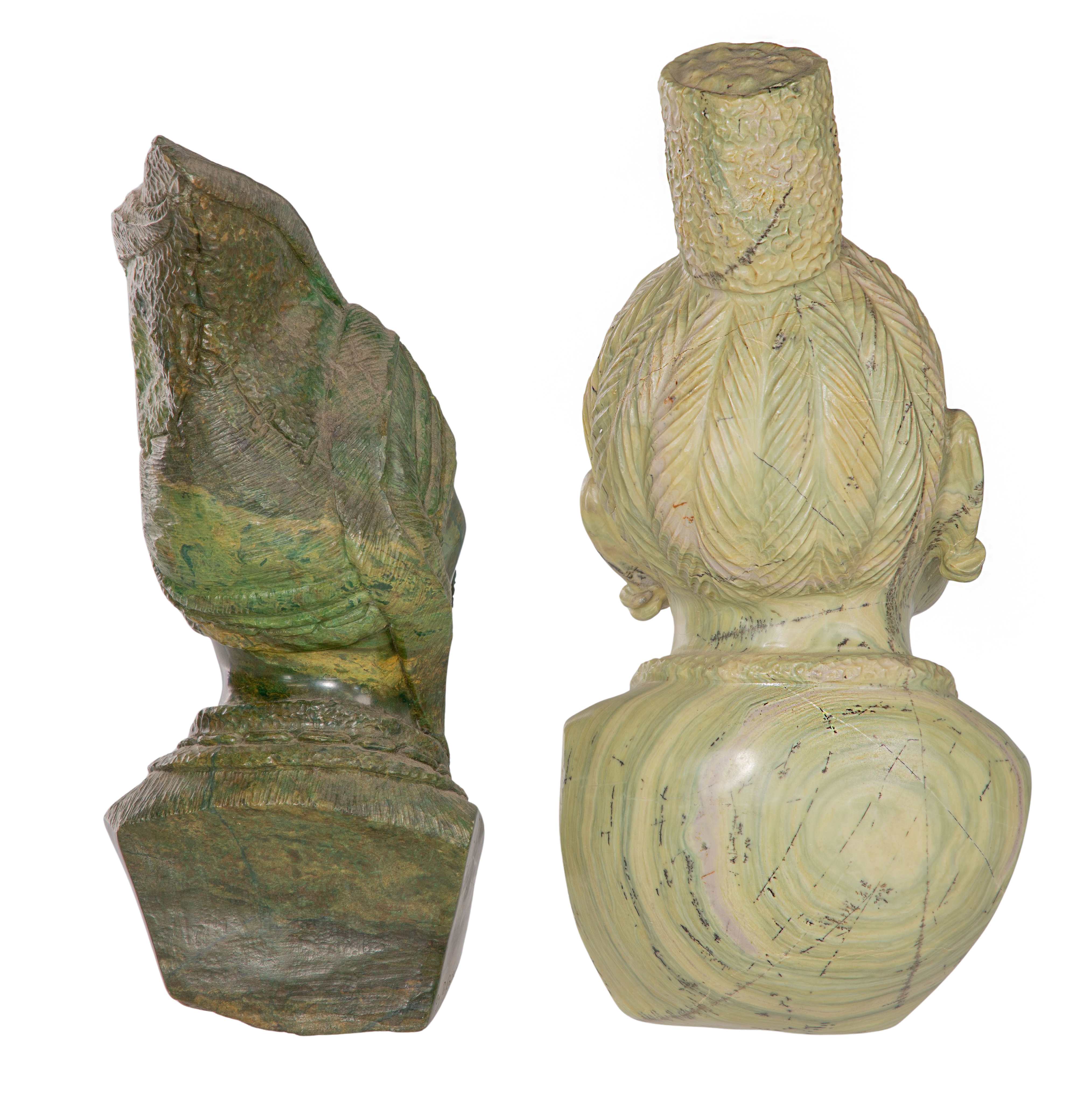 (2) items from Zimbabwe, both unsigned, including a female in yellow quartz (butterstone) and a male in serpentine