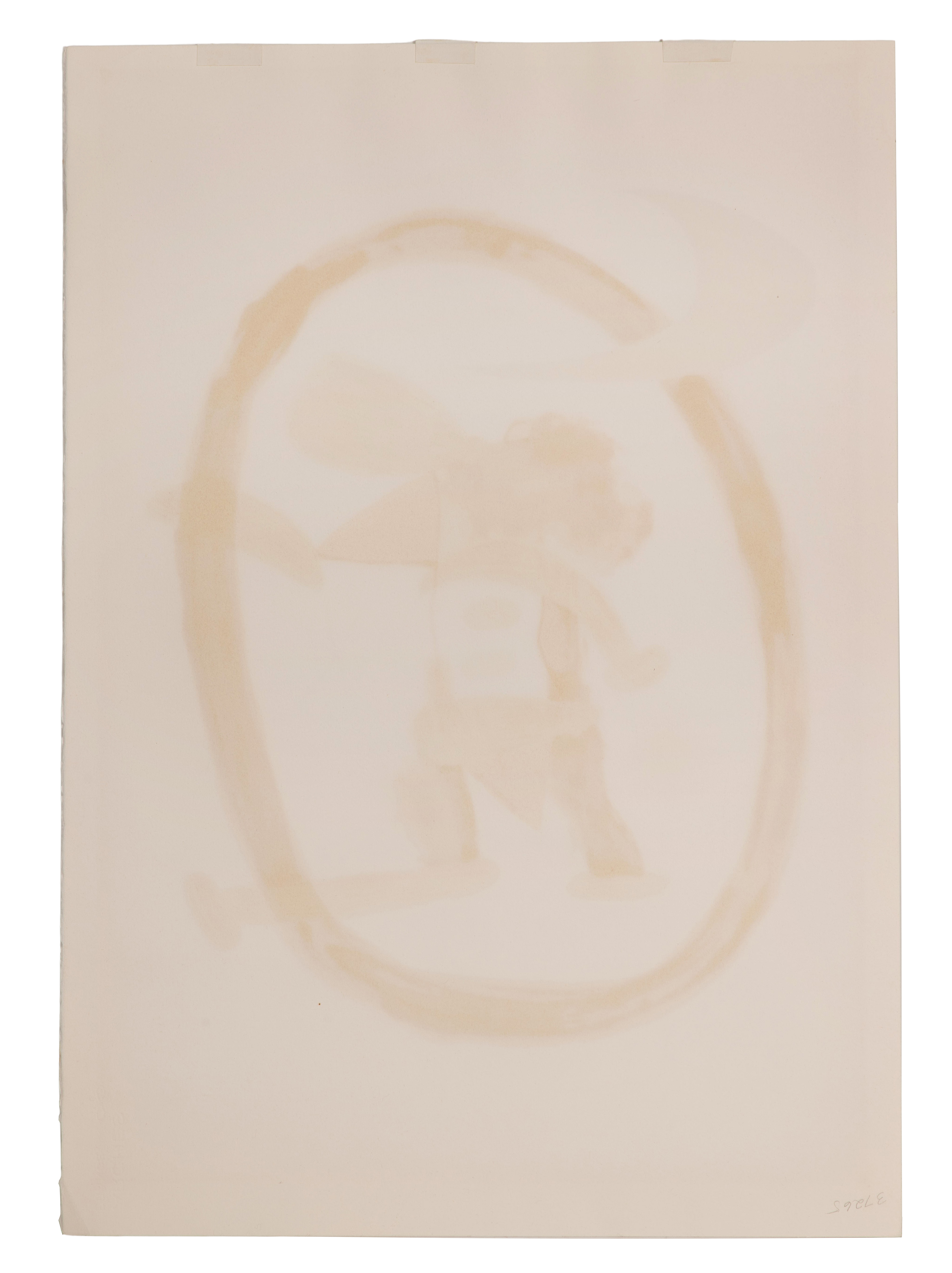 Condition: lightly sunned, mat shadow, some portions having lightly darkened ghost image verso, hinge tape remnants top edge verso