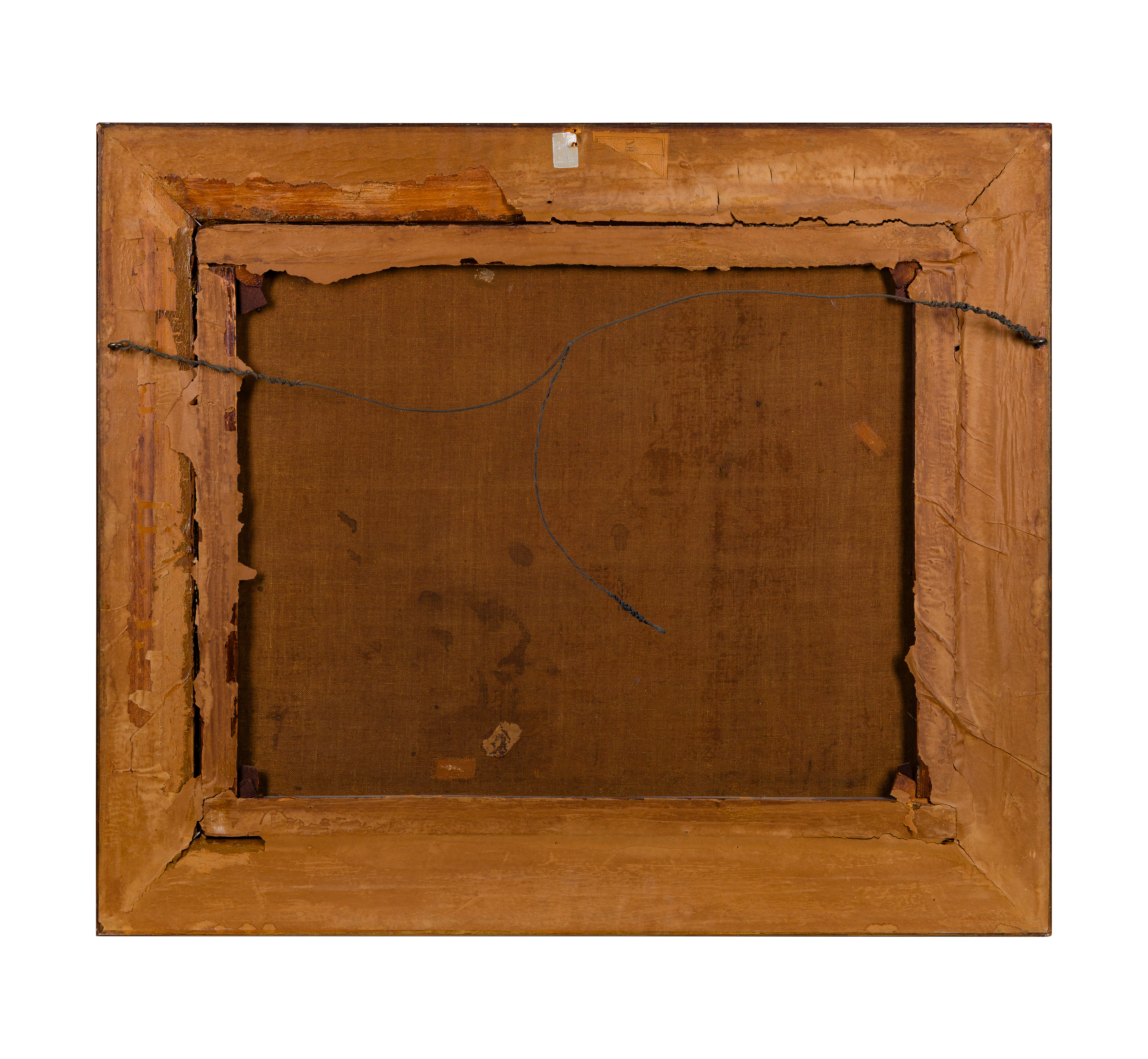 Condition: upper right having craquelure and looseness, frame having minor wear, also having incorrect name placard