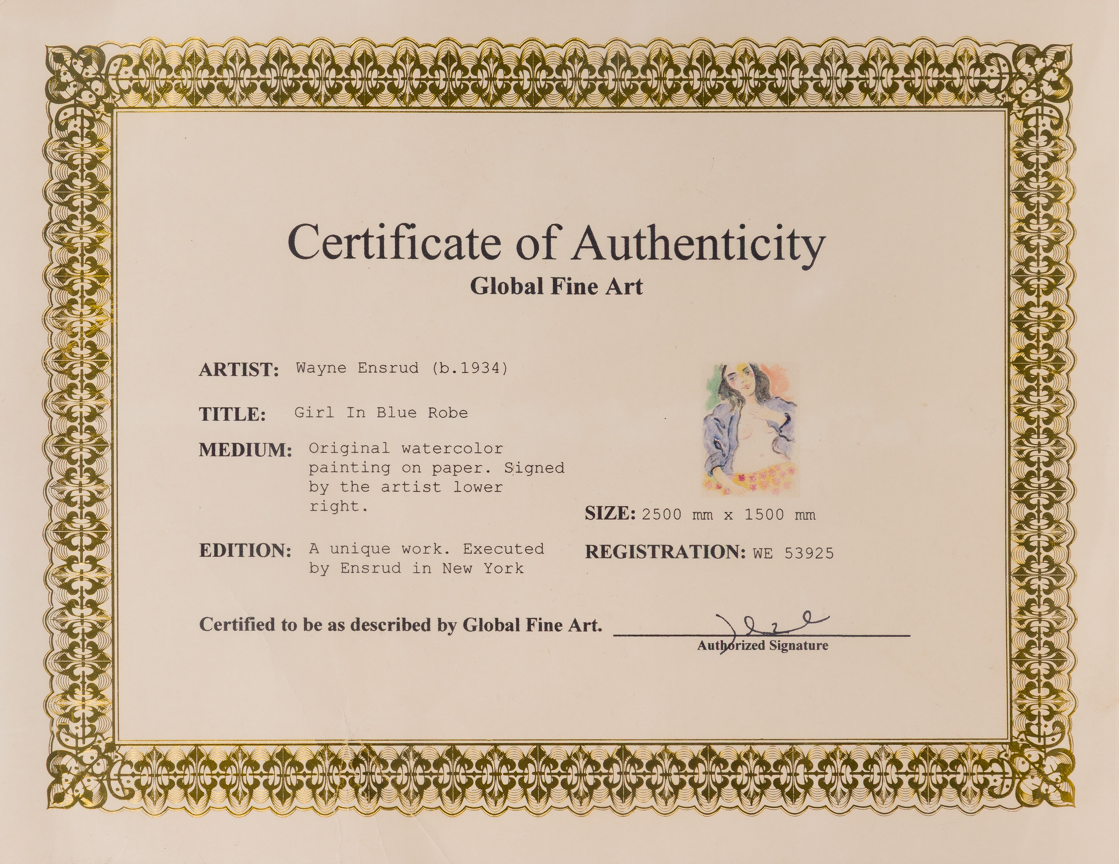 Wayne Ensrud (American, 1934-2024) ‘Girl in Blue Robe’ Watercolor