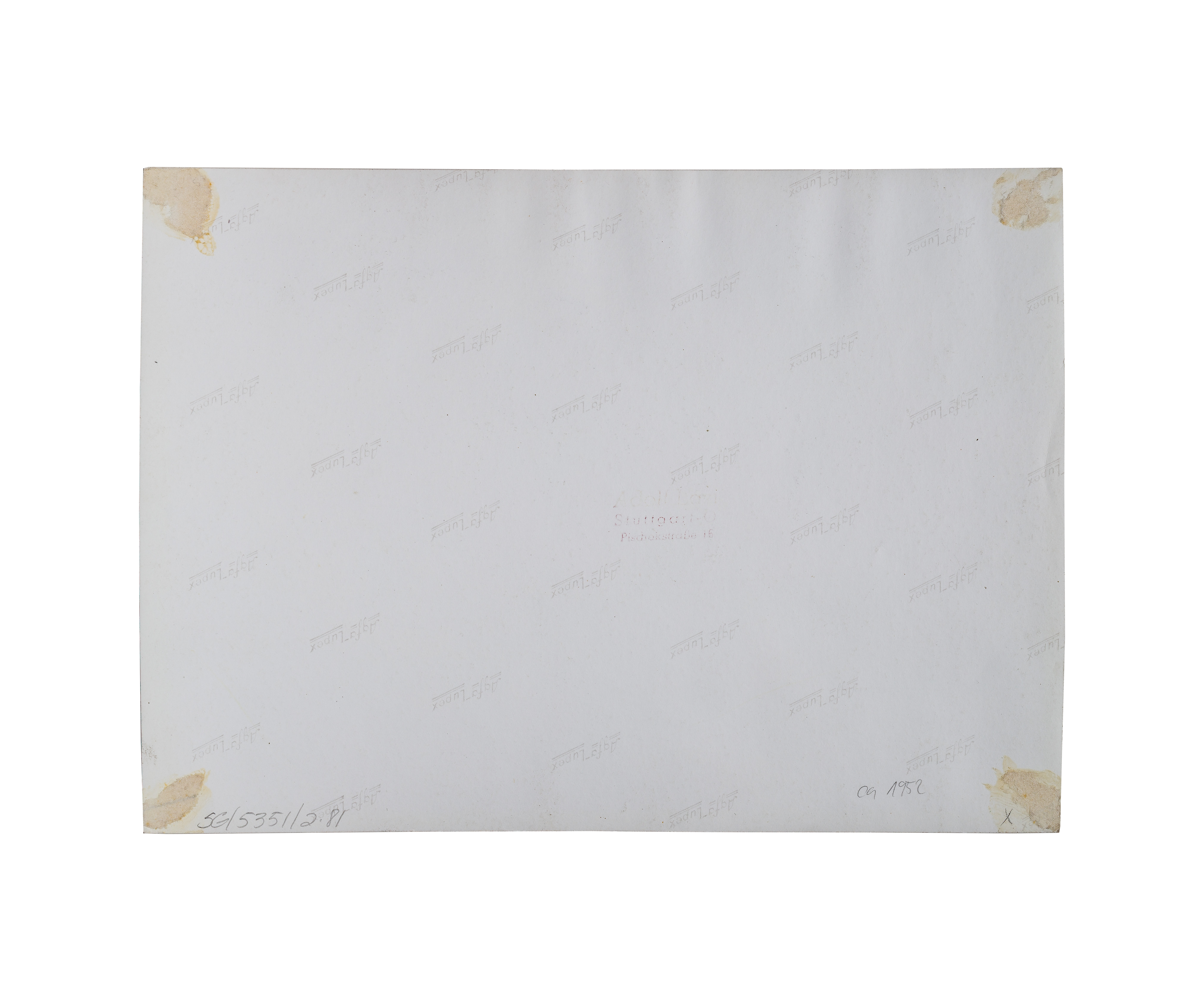 1952, unsigned image without margins mounted using transparent photograph corners to the backing board of a hinged mat having pencil notation ‘A. Lazi, Ca. 1952’ within