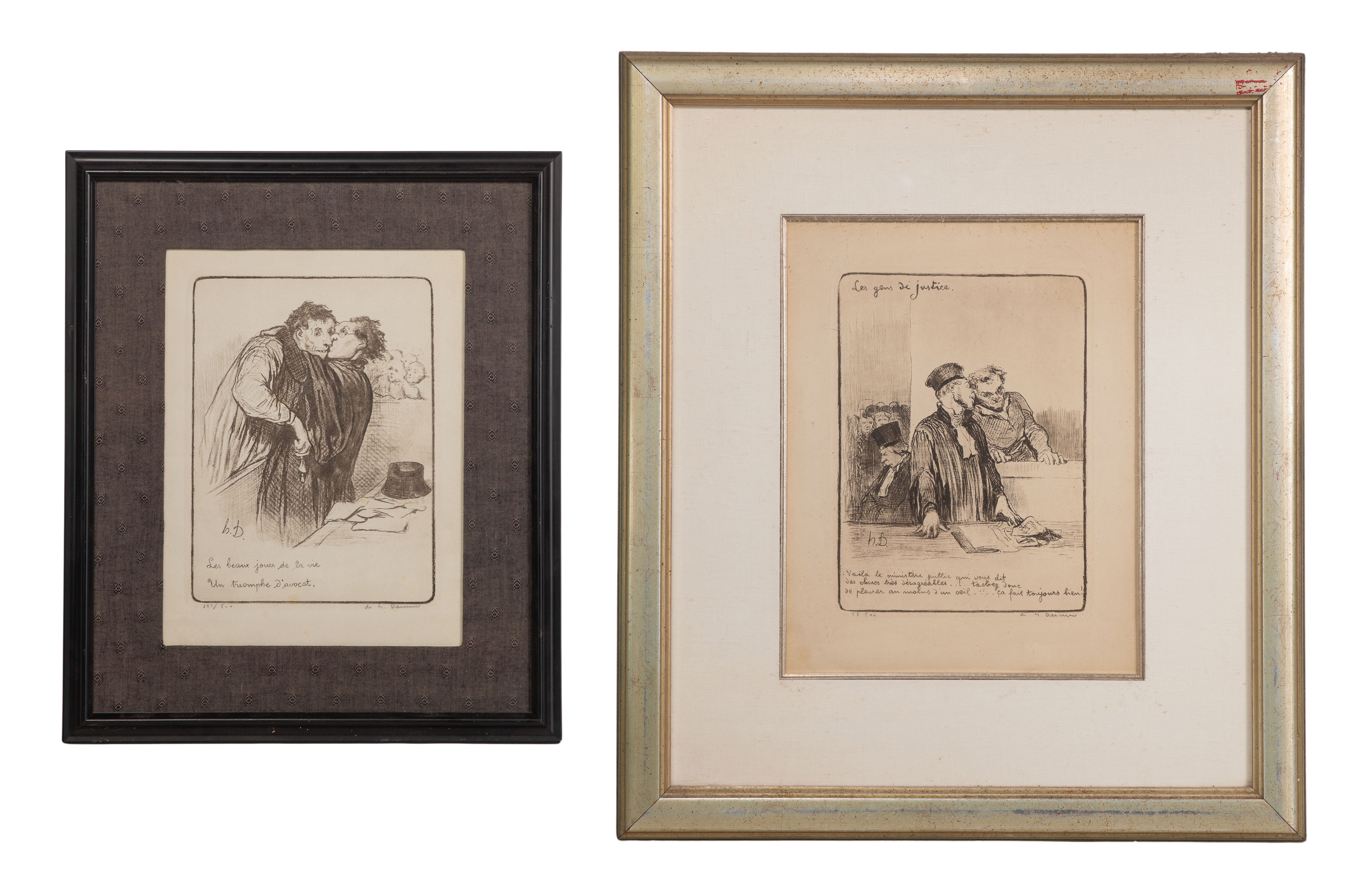 (2) undated items, initial signed, ‘The Triumph of the Lawyer (Un Triomphe D’Avocat)’ #101/500 and ‘Law and Justice (Les Gens de Justice)’ #50/500, matted under glass in wood frames