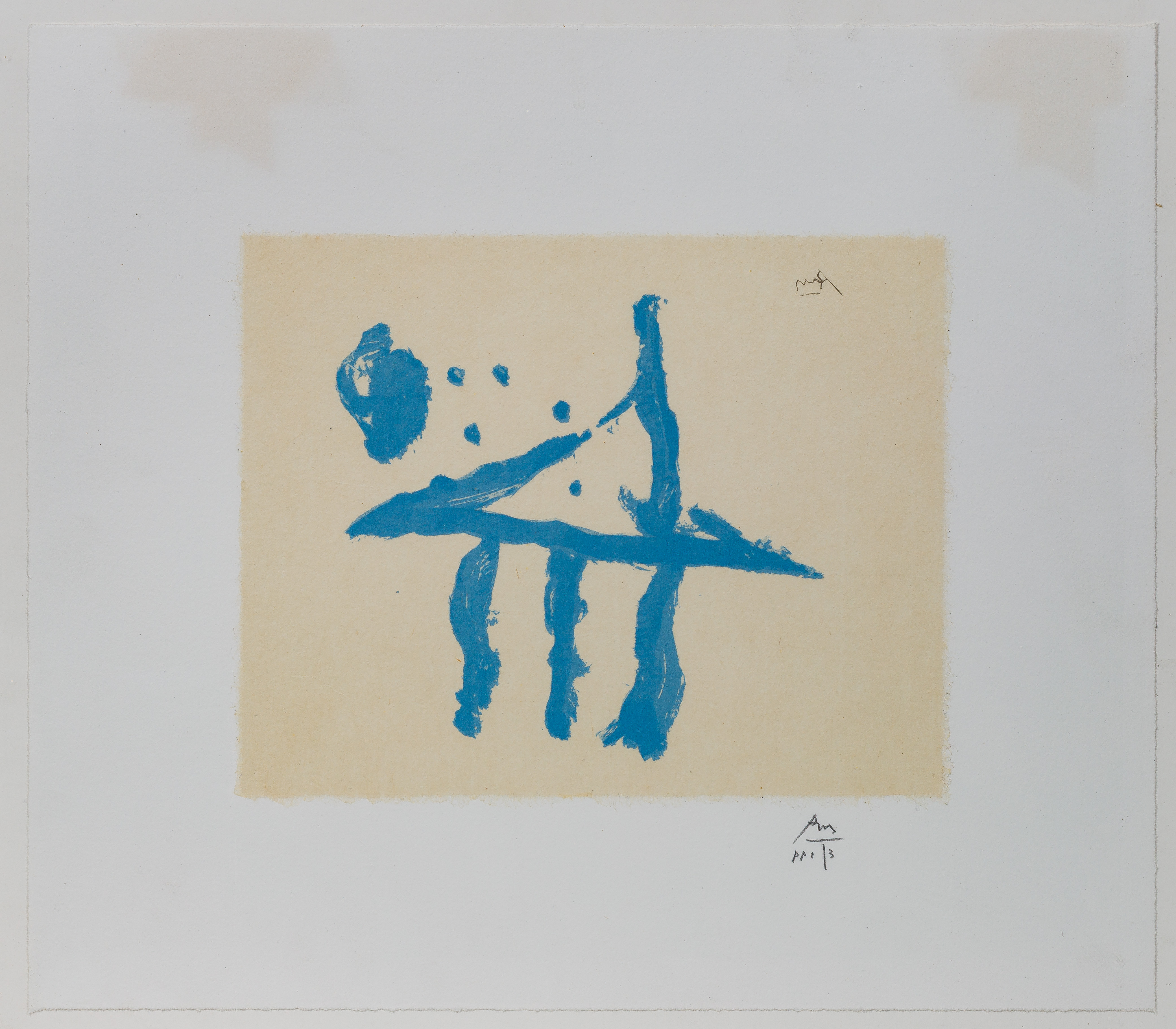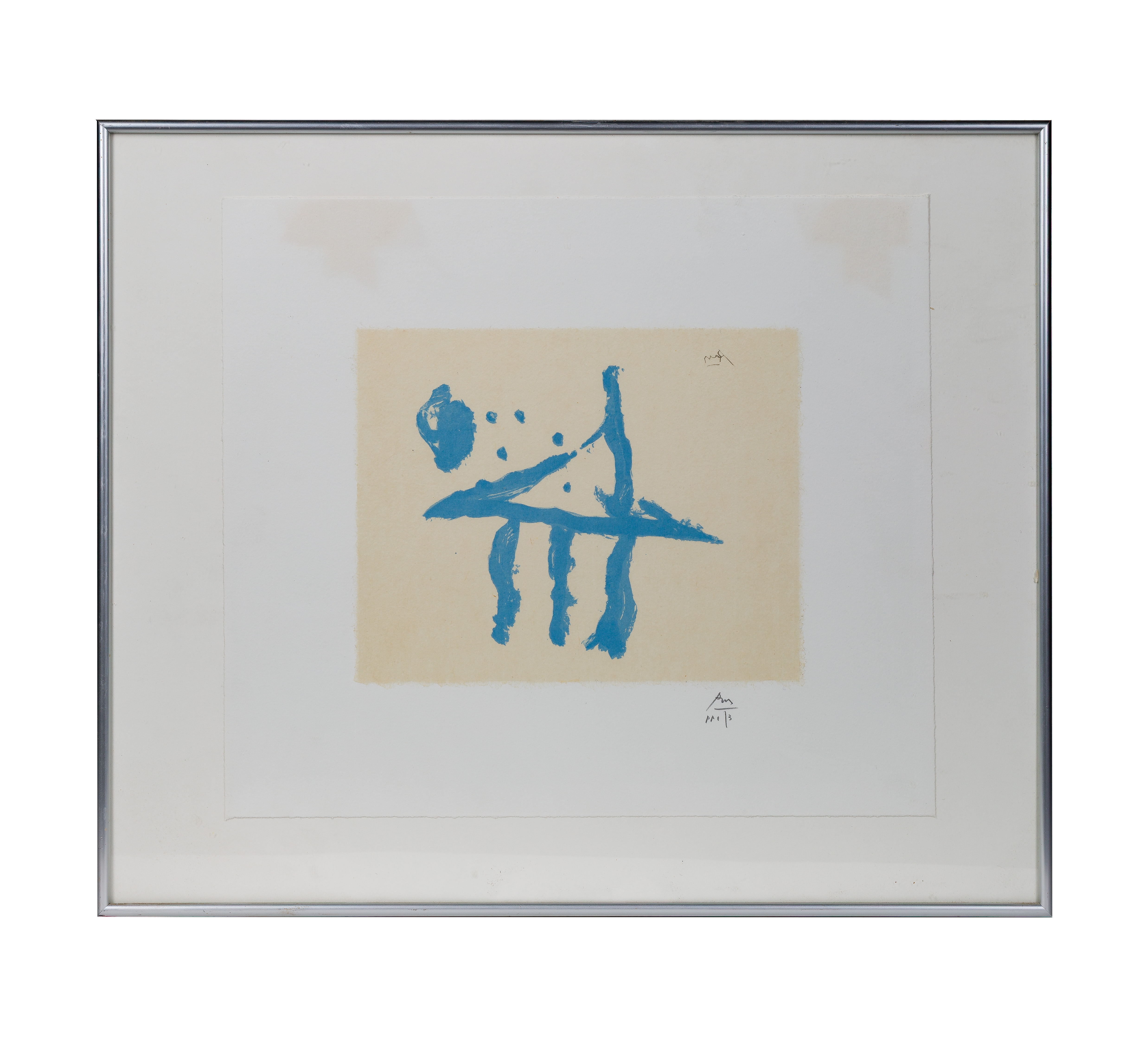 Undated, pencil signed and editioned P.P. 1/3, depicting an abstract in blue, on natural Japanese Sekishu paper, float mounted in a metallic frame