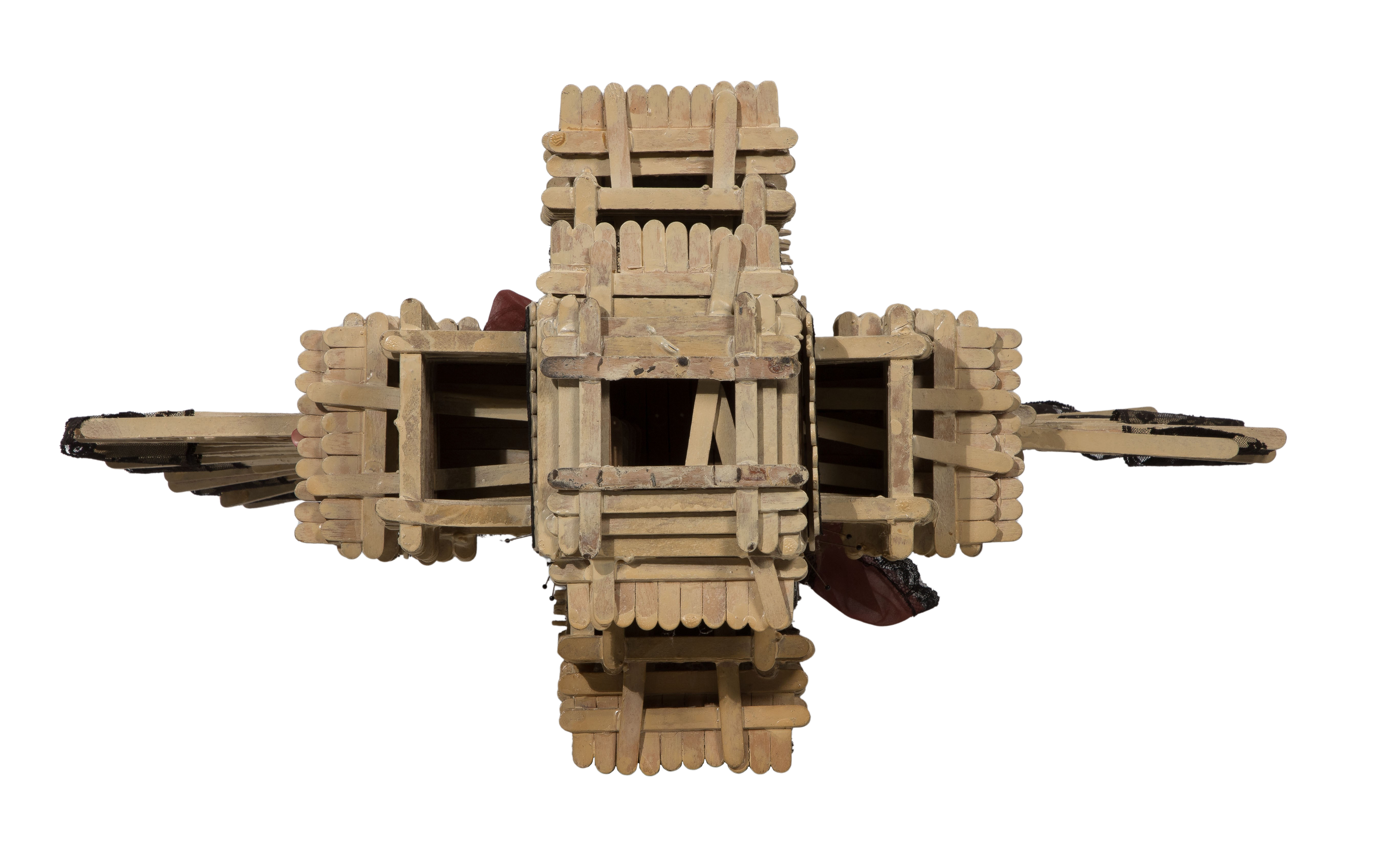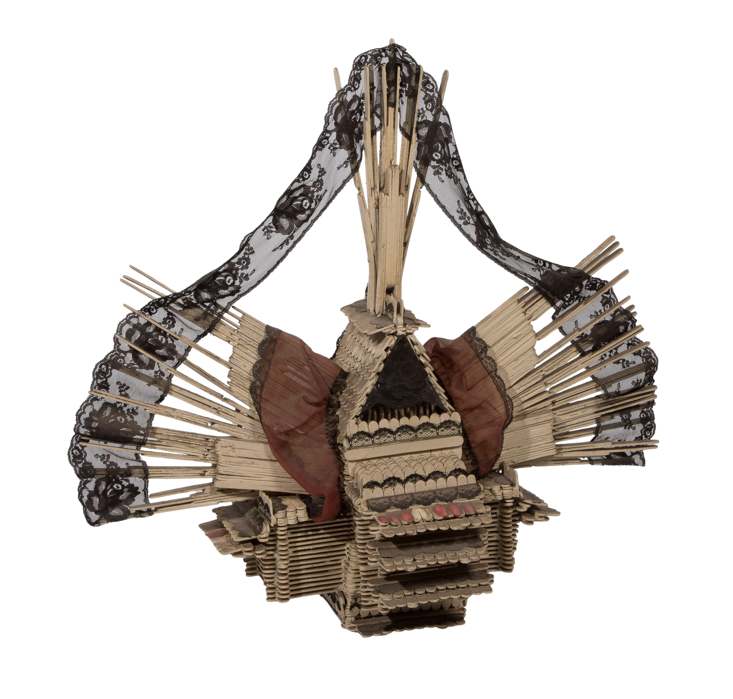 Undated, unsigned, painted Popsicle sticks, fabric fragments, faux finger nails and pins