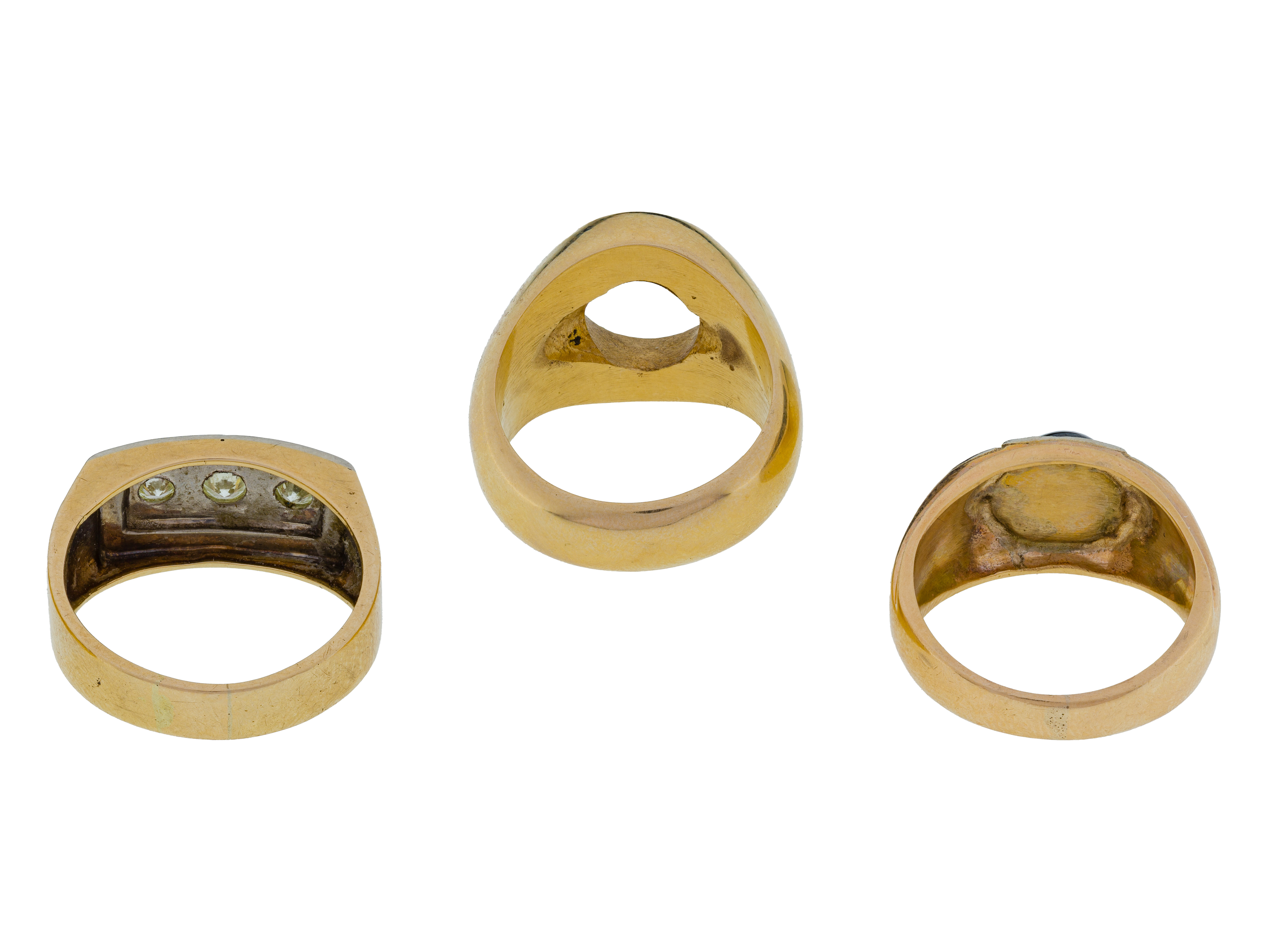 Condition: overall light wear consistent with normal use, ring missing stone, some unmarked but XRF tested as 14k gold