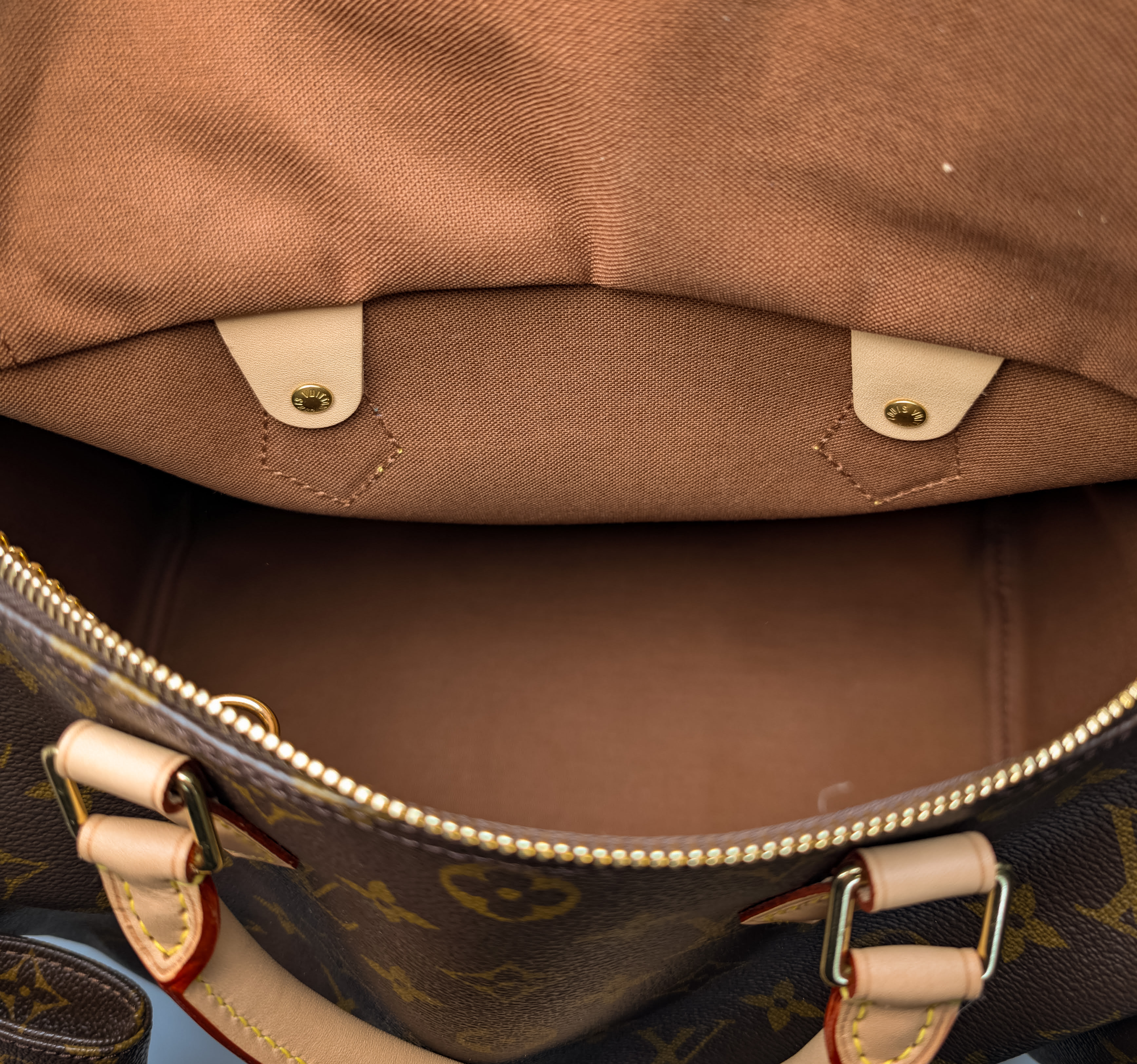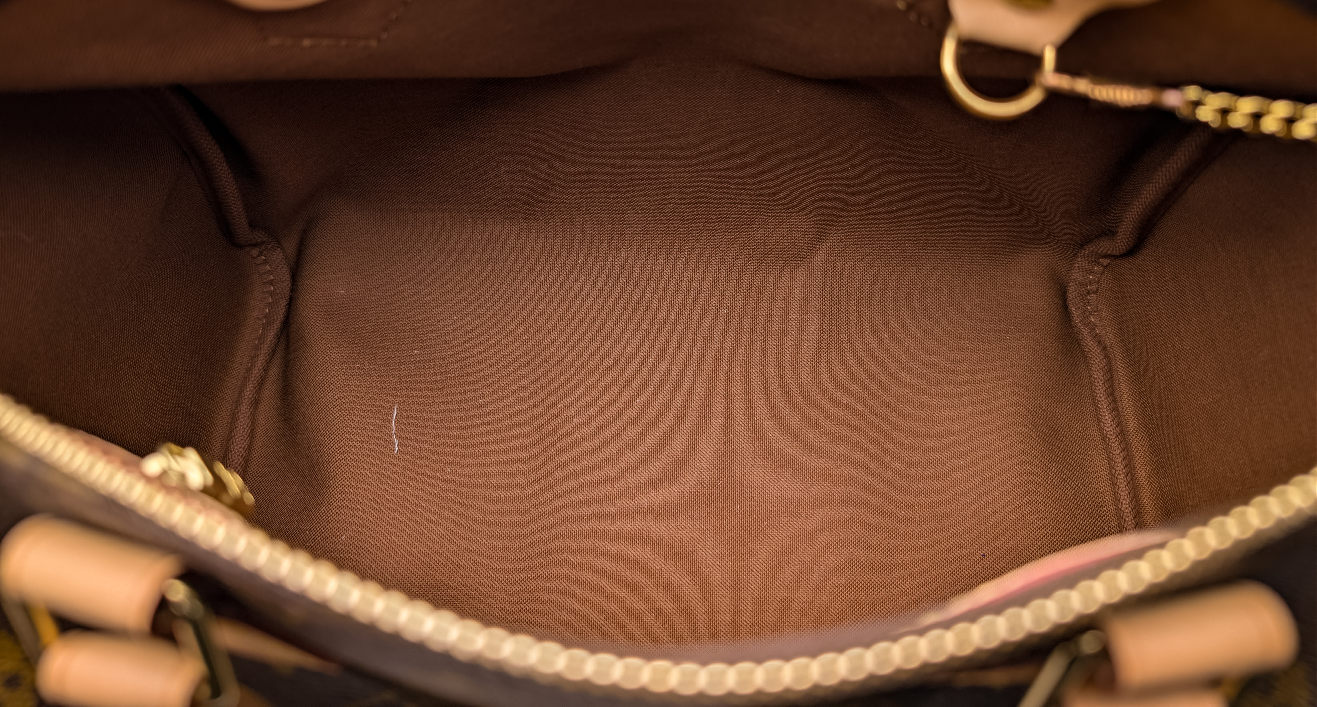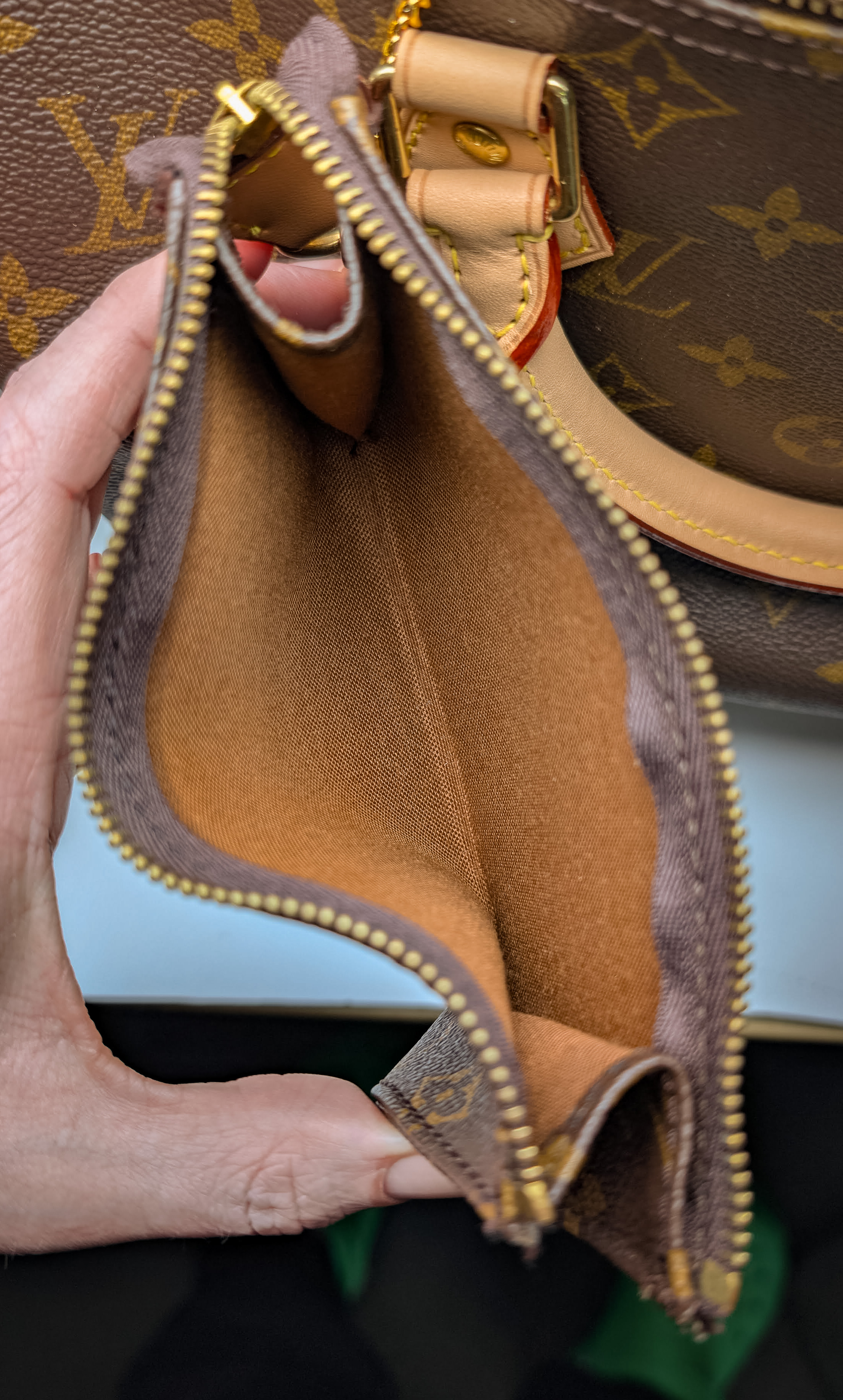 Having coated exterior monogram canvas, interior textile, vachetta leather trim, attachable wallet, including paperwork, locks with keys