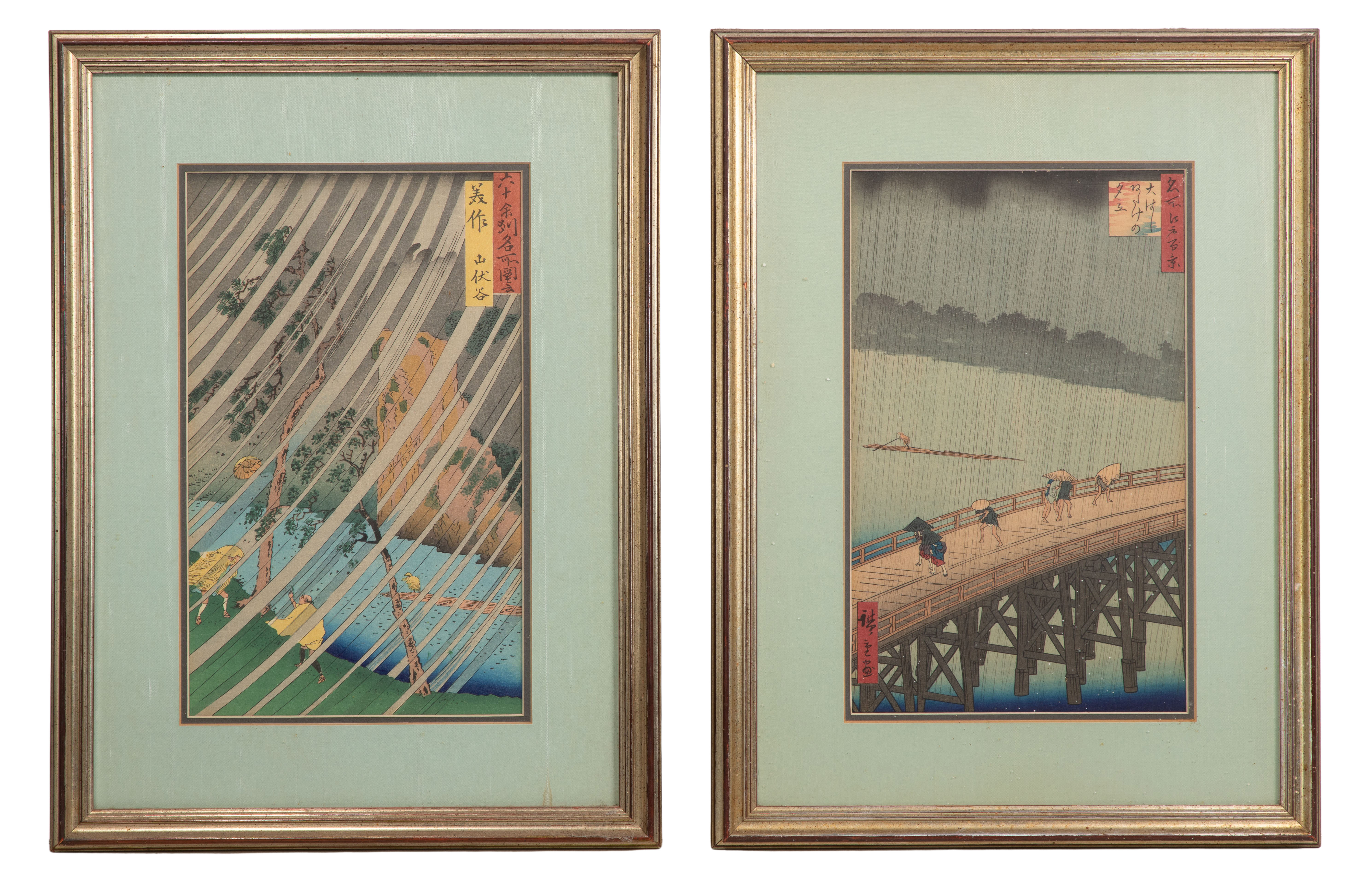 (2) items including ‘Sudden Shower over Shin-Ohashi Bridge and Atake’ and ‘Mimasaka Province: Yamabushi Valley’, matted under glass in wood frames