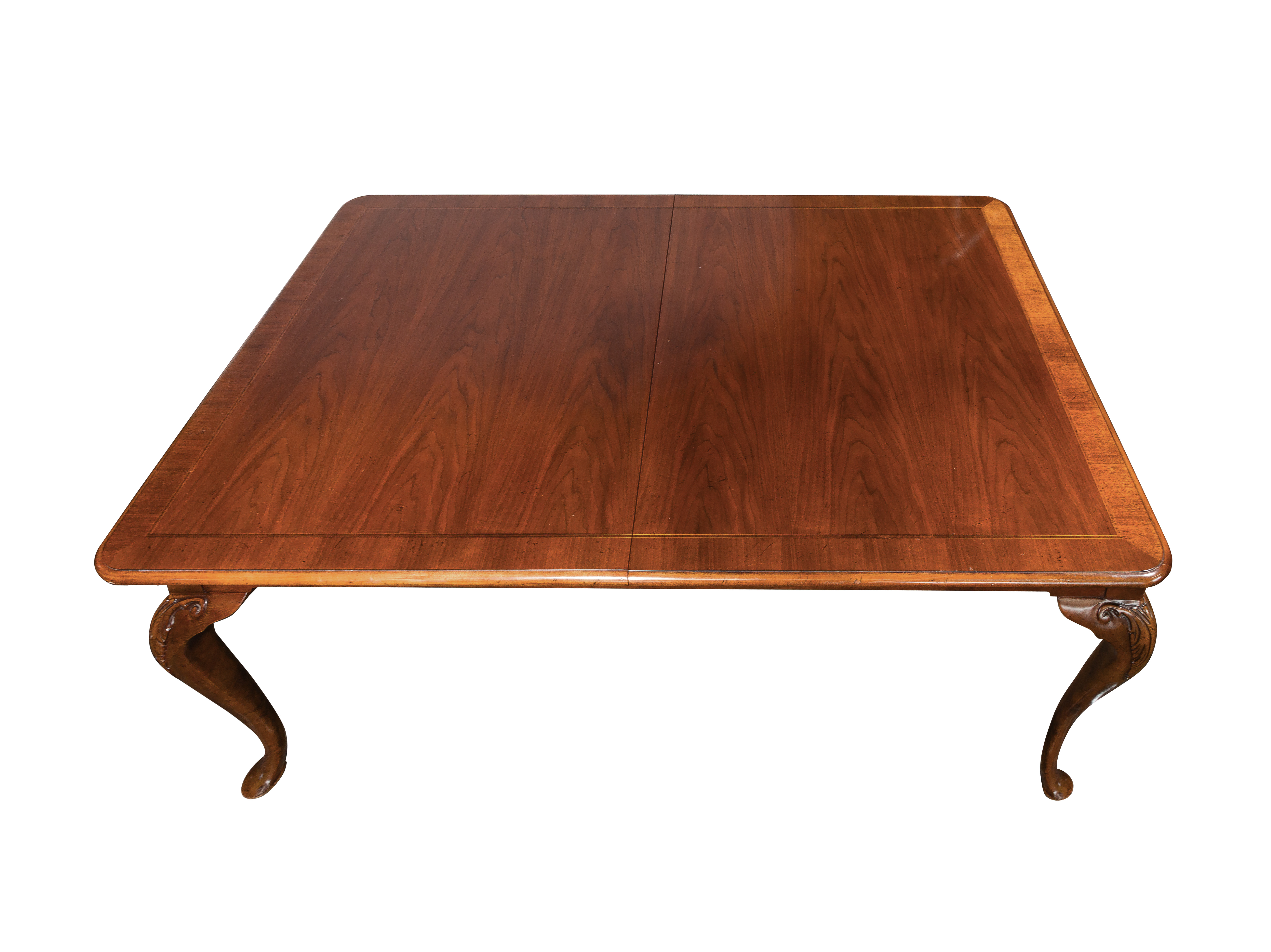 (9) items including a Queen Anne style table, (2) 20-inch leaves, (2) armchairs and (4) side chairs, all chairs having upholstered seats, including table pads