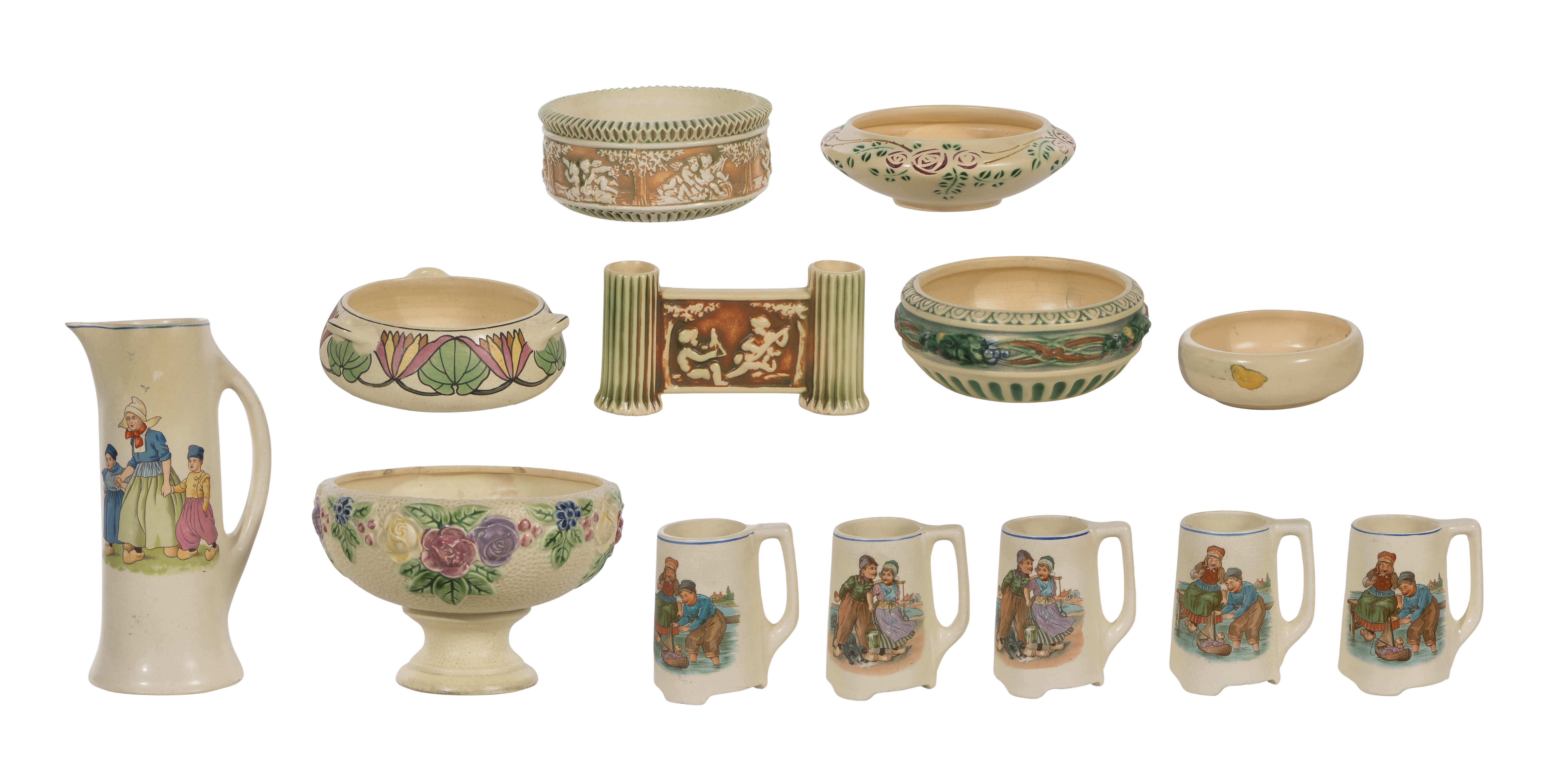(13) items including bowls, vases, mugs, pitcher in various designs such as Donetello, Corinthian, La Rose, Persian, Rozane and Dutch (transferware), some marked on underside