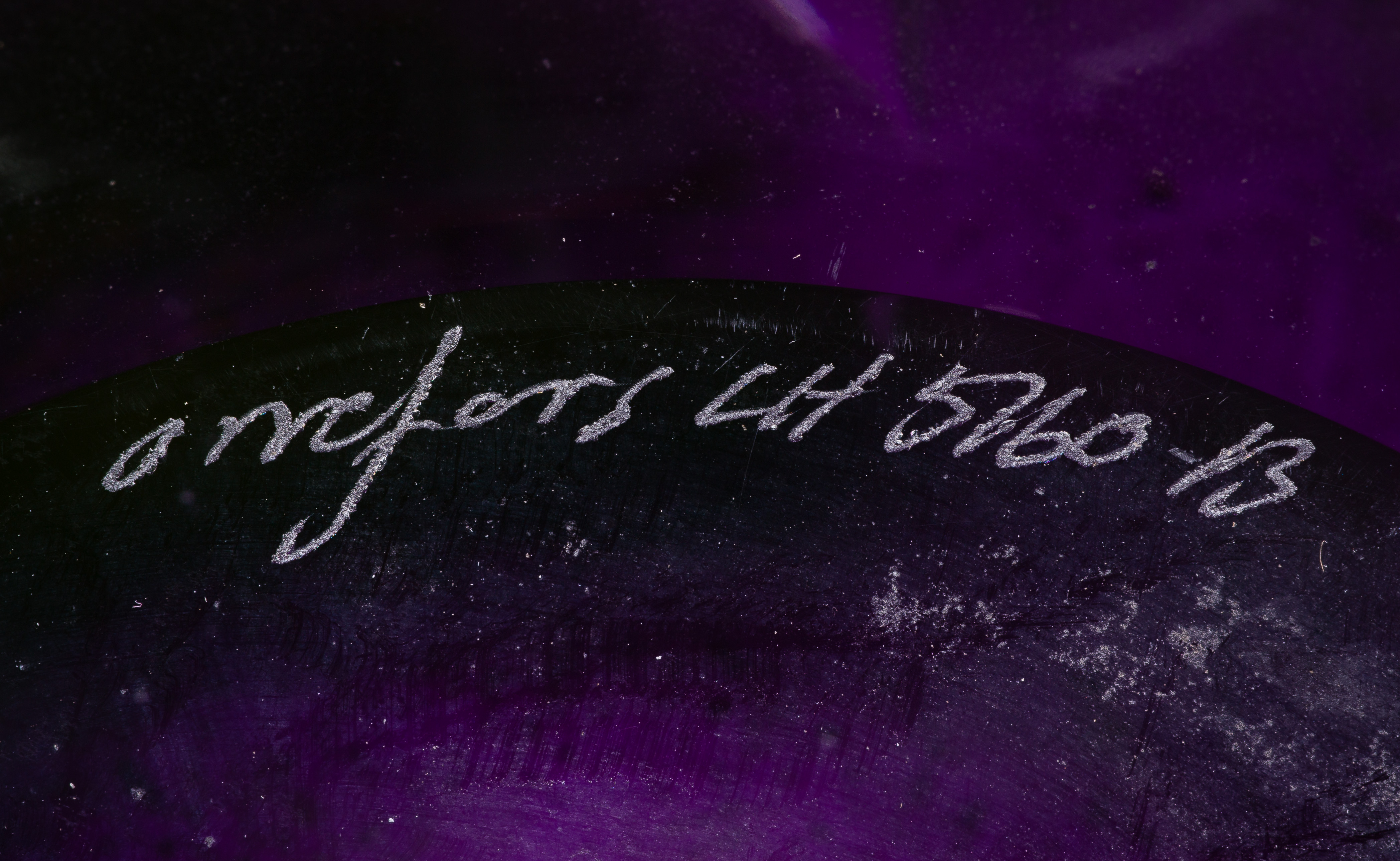 (5) total items including (2) aubergine vases, a cobalt blue vase (all having rows of controlled bubbles) and a yellow centerpiece, all having engraved signatures underside, some retaining Kosta Boda labels; together with an Orrefors aubergine bowl having engraved mark
