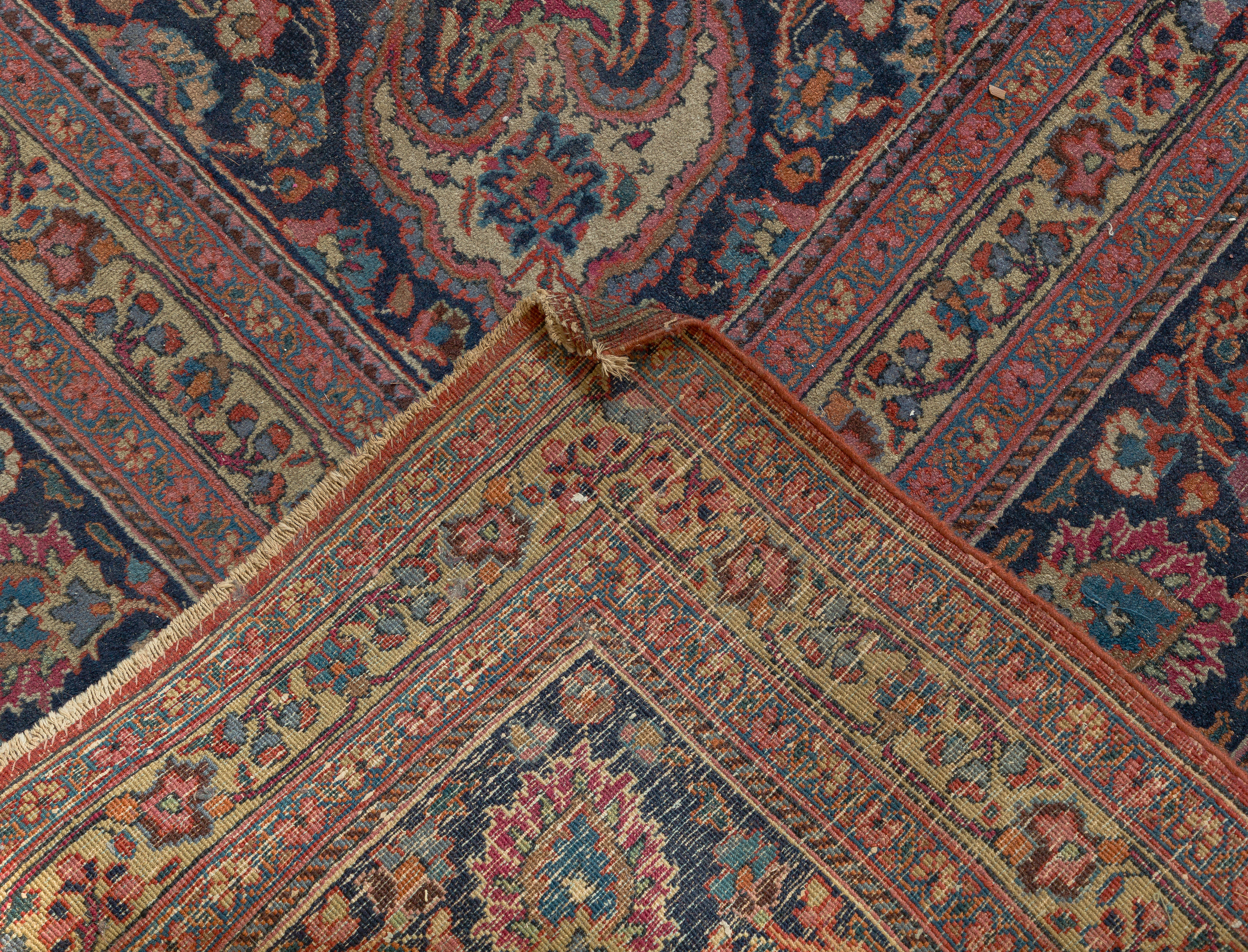 Condition: overall light to moderate wear consistent with normal use, dirt accumulation, fading, minor stains, areas worn to backing, fraying edges, fringe damage