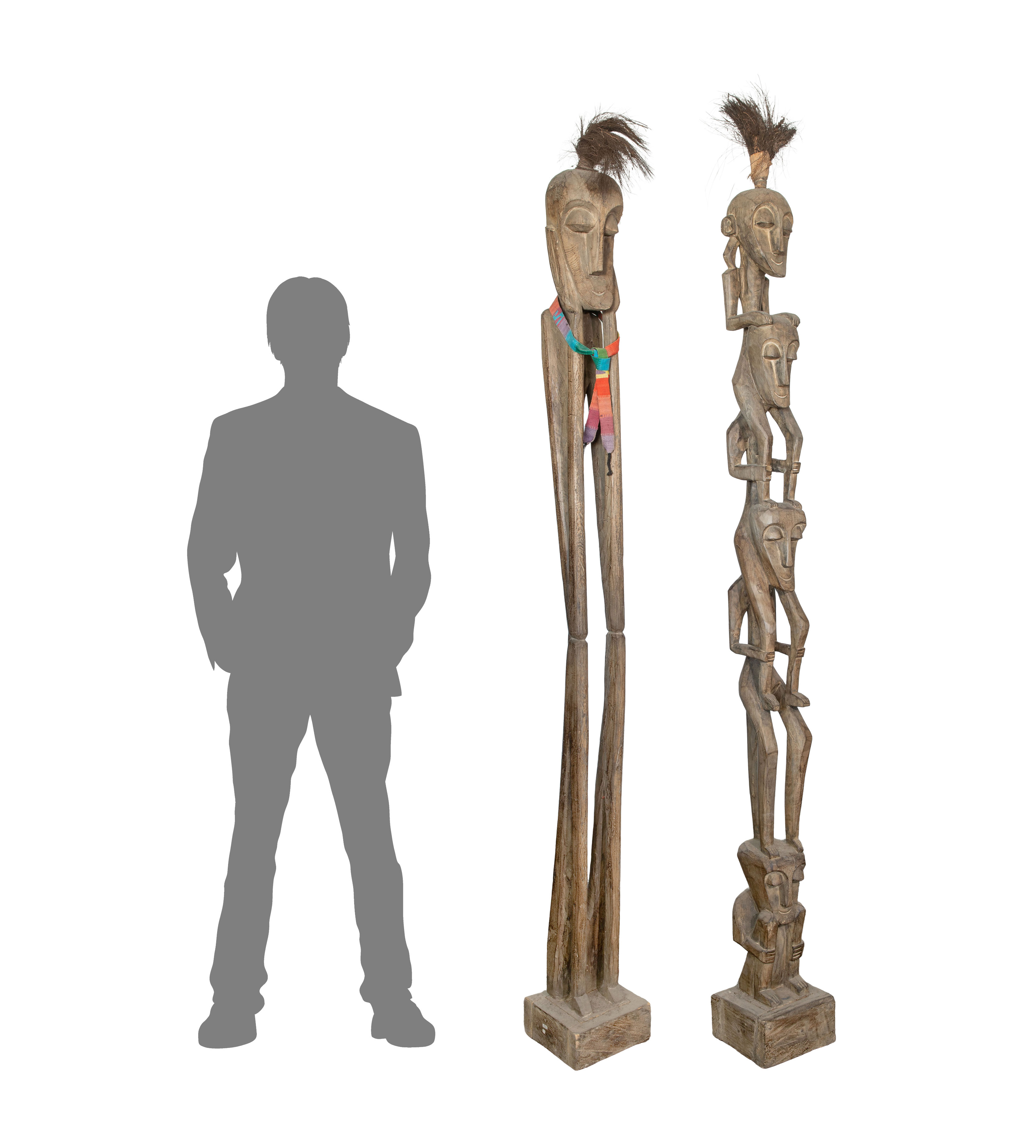 (2) elongated figures with sisal hair