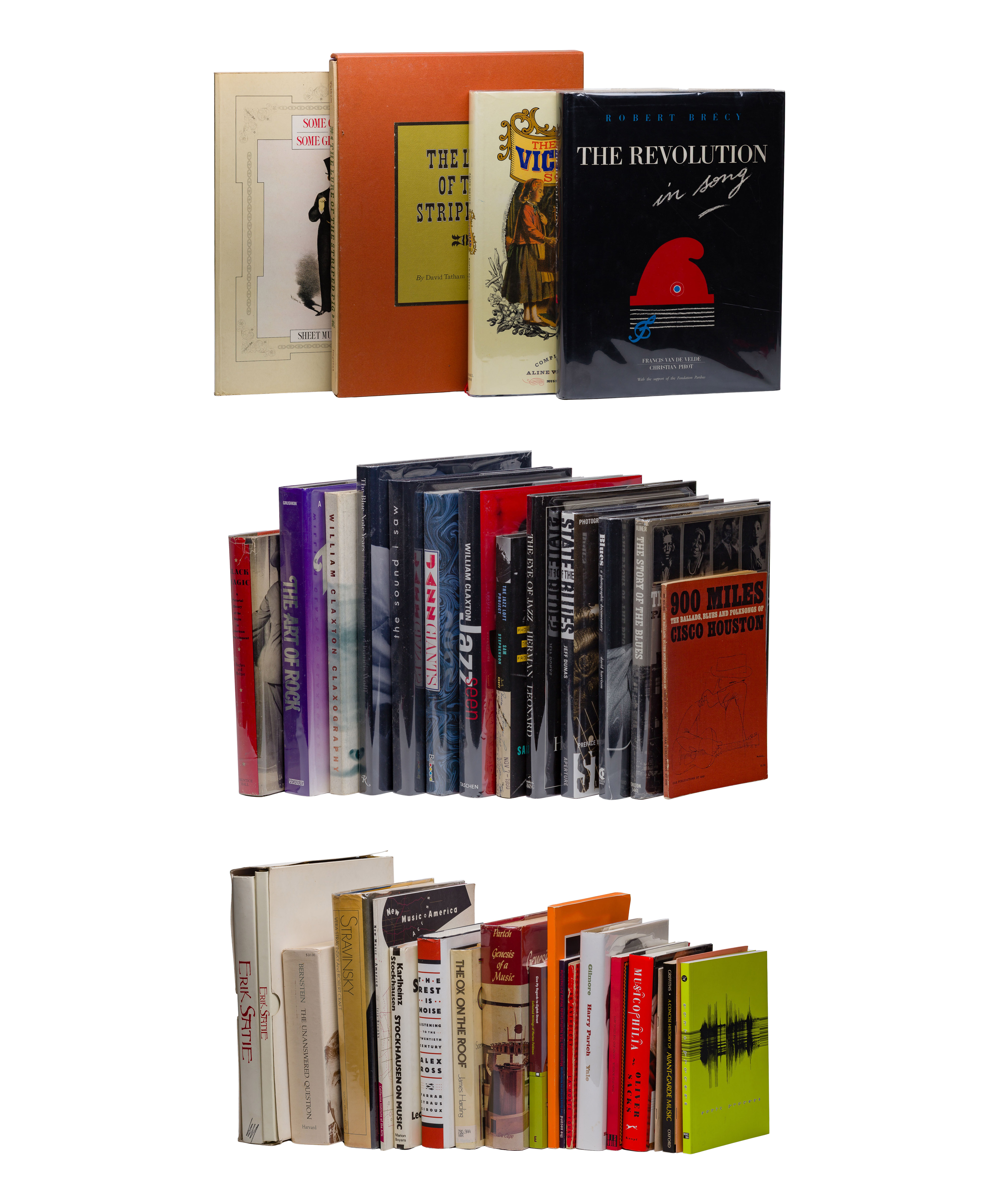 Approximately (30) items of various shapes and sizes, including themes of jazz, rock and roll, classical and the avant-garde as well as other forms or history of entertainment