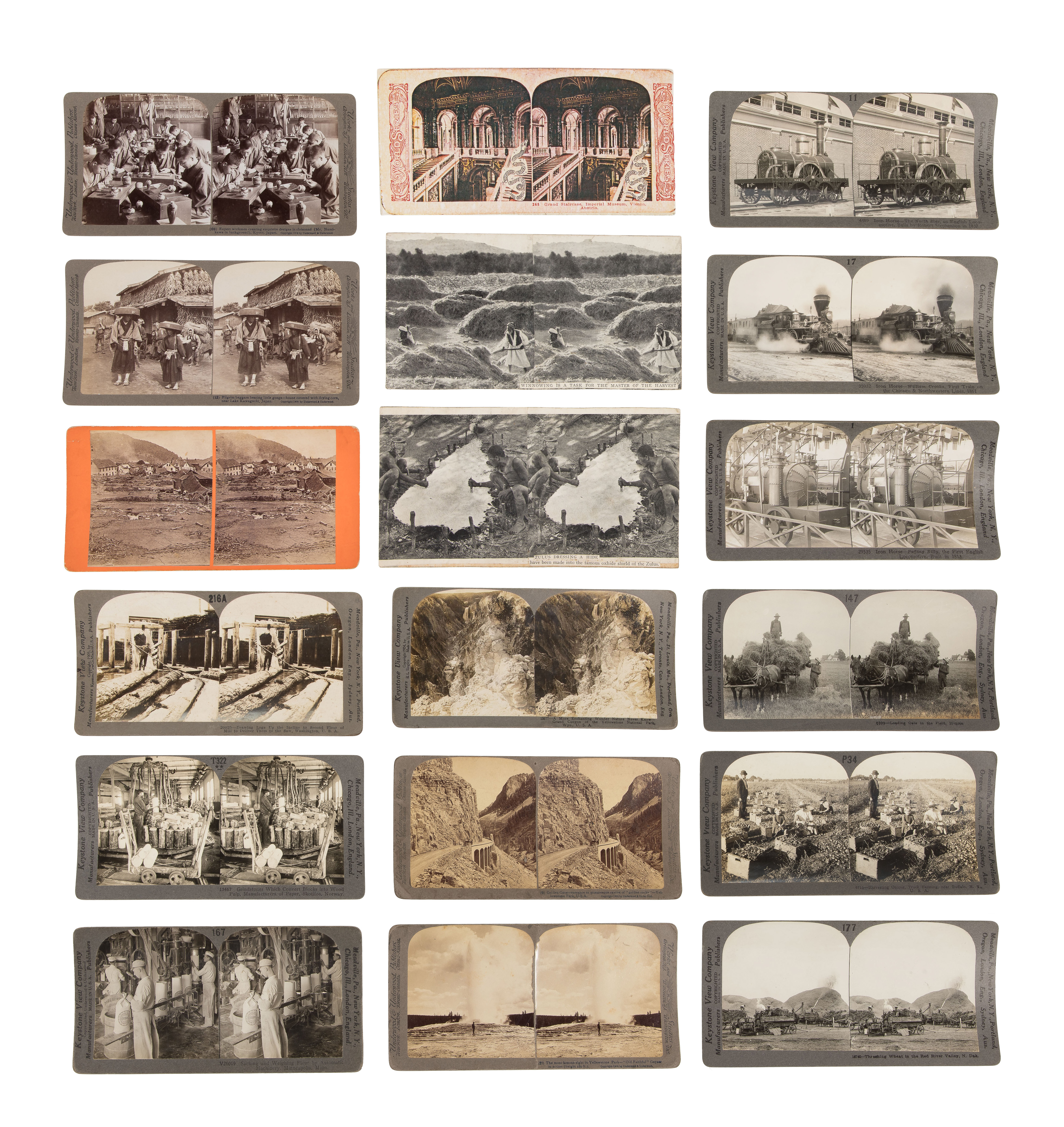 Approximately (400) turn of the century to mid-20th century cards depicting varying themes from around the globe including dance, theater, children, dolls, Romani culture, whaling, portraiture, agriculture, factory, wildlife, trains, landscapes and towns