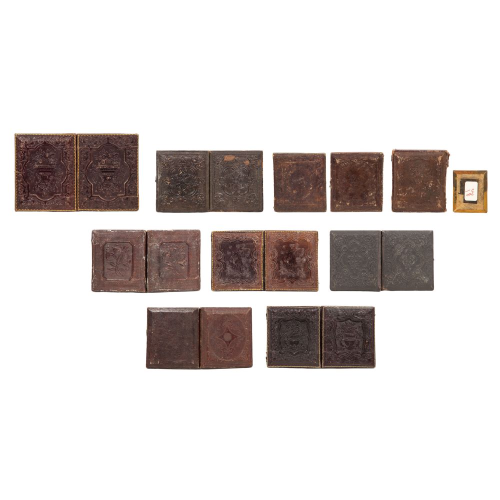 (10) daguerreotypes depicting portraits of men, women and children, most having metal frames set in velvet lined leather, wood, gutta-percha or resin cases