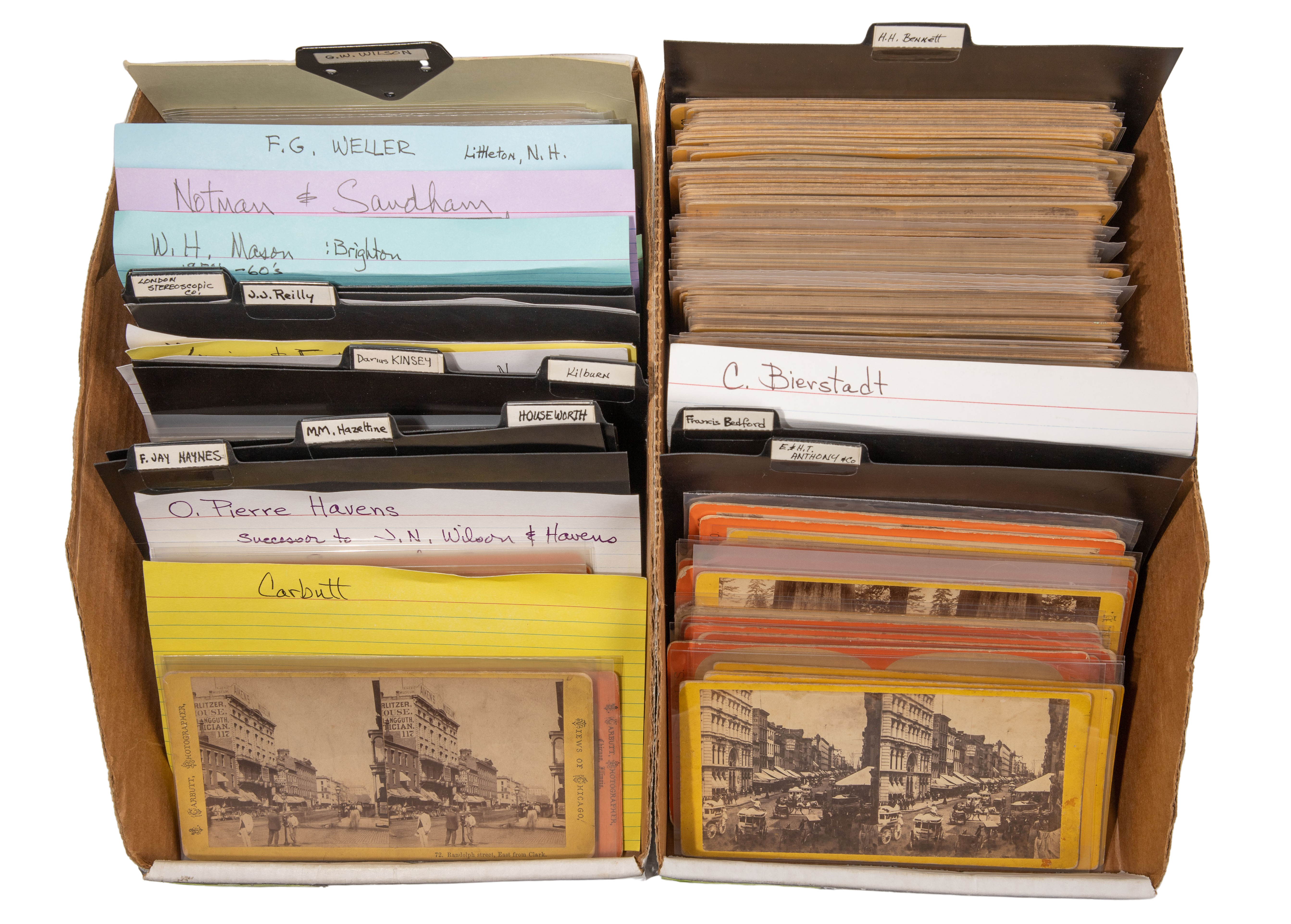 Approximately (175) items of various scenes by photographers such as G. W. Wilson, H. H. Bennett, J. J. Reilly and Frances Bedford, all in plastic sleeves