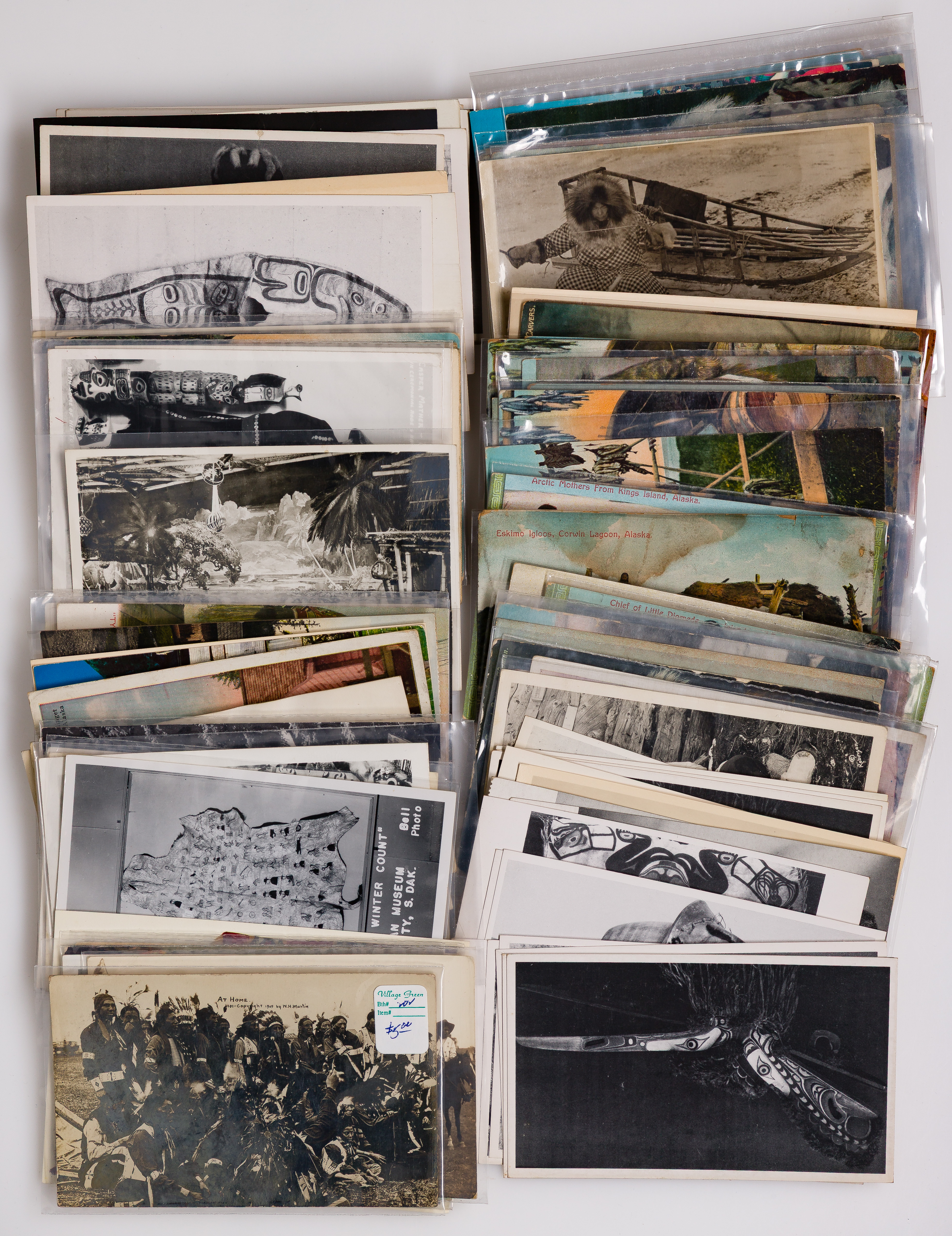 Approximately (100) items in various sizes and subjects including real photograph postcards and photographs representing Native Americans, Inuit, South Pacific