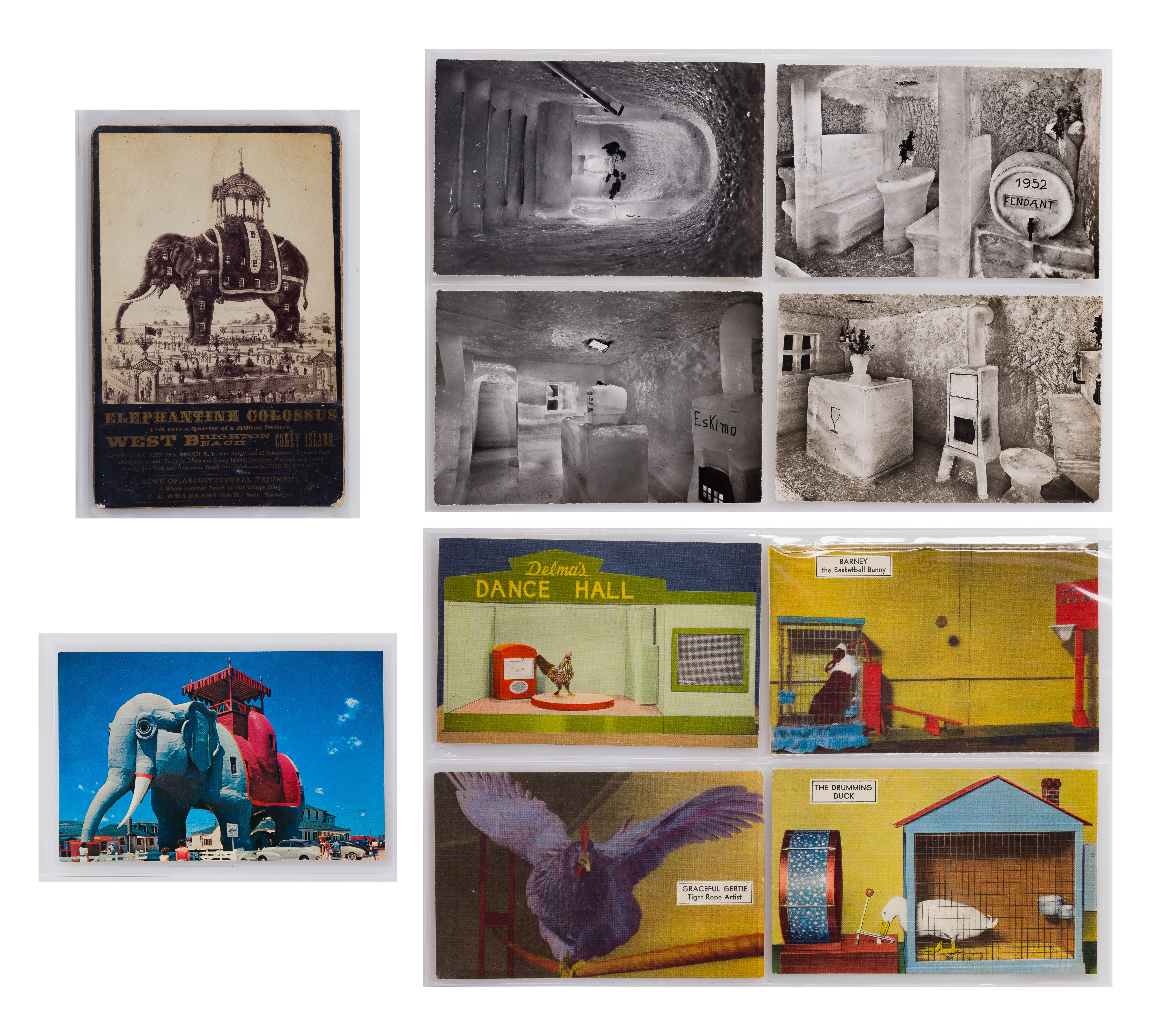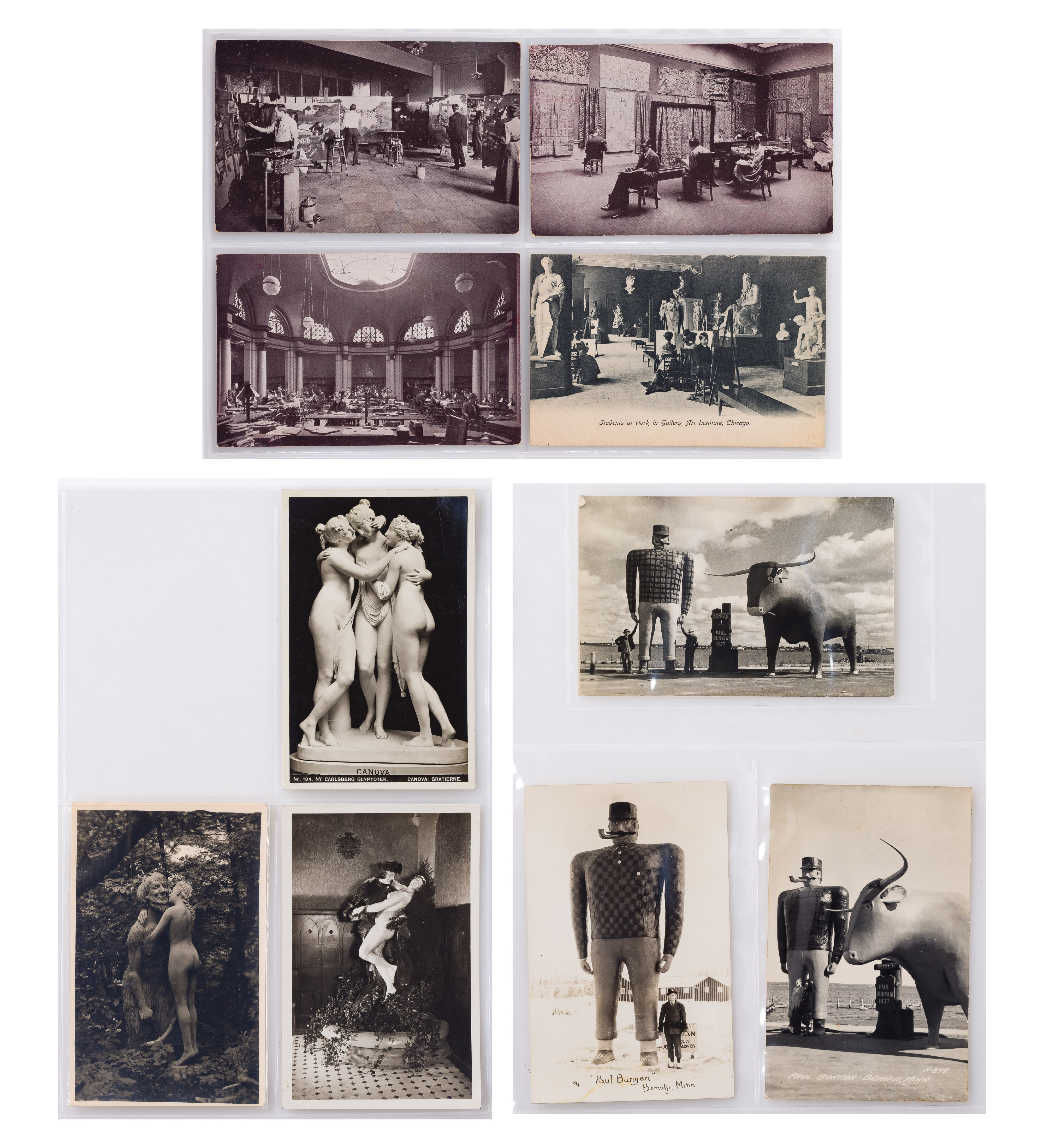 Approximately (120) items of various sizes and subjects, including postcards and photographs, in two labeled binders