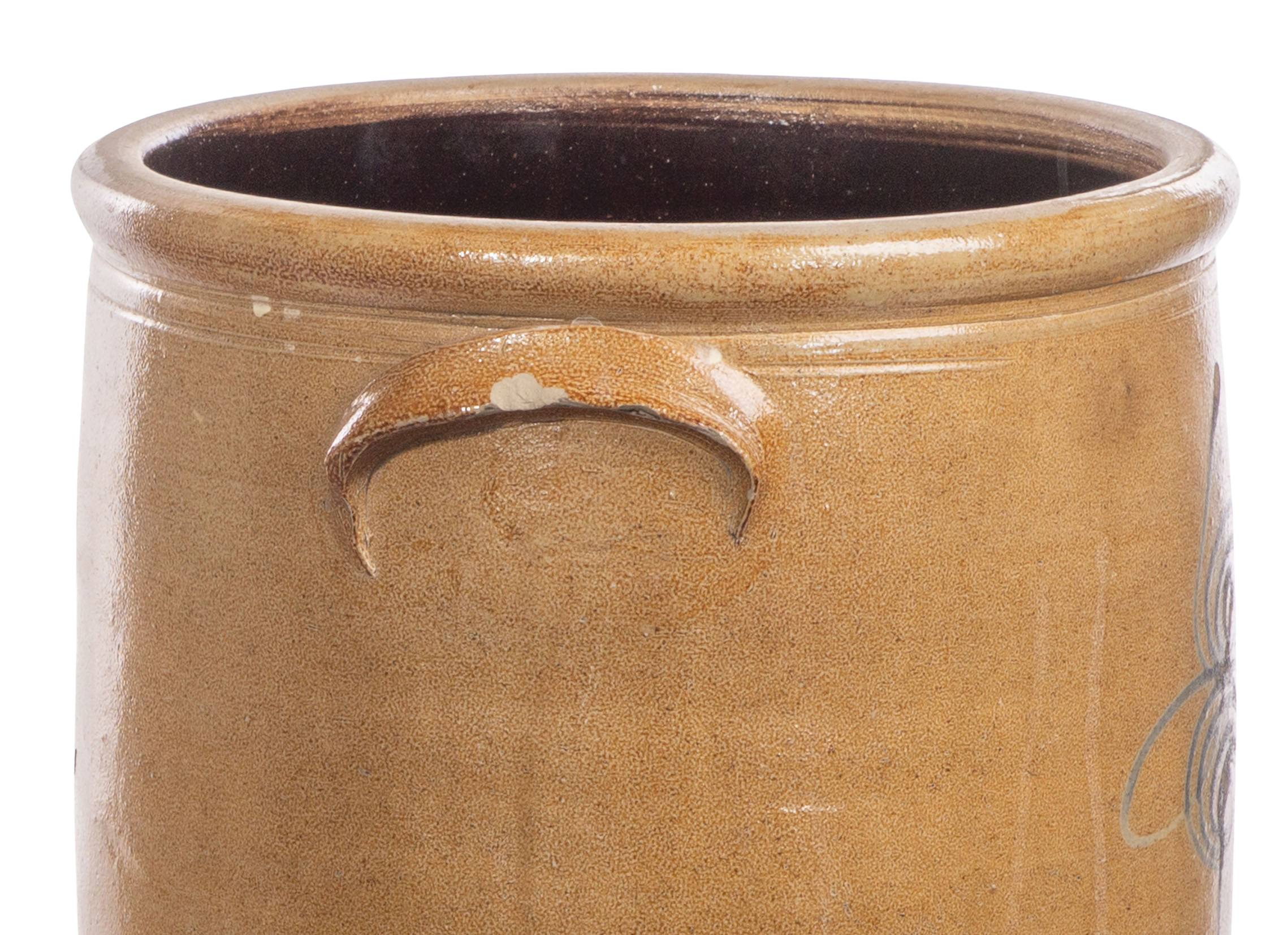 overall light to moderate wear consistent with normal use, a crock handle chipped, butter churn missing lid