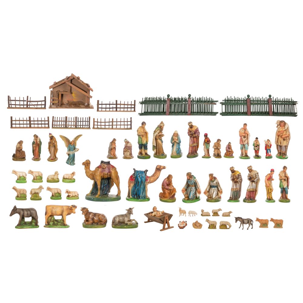 Approximately (50) total items, some marked ‘Germany’ or ‘Italy’ to the undersides; together with display fences and Christmas manger
