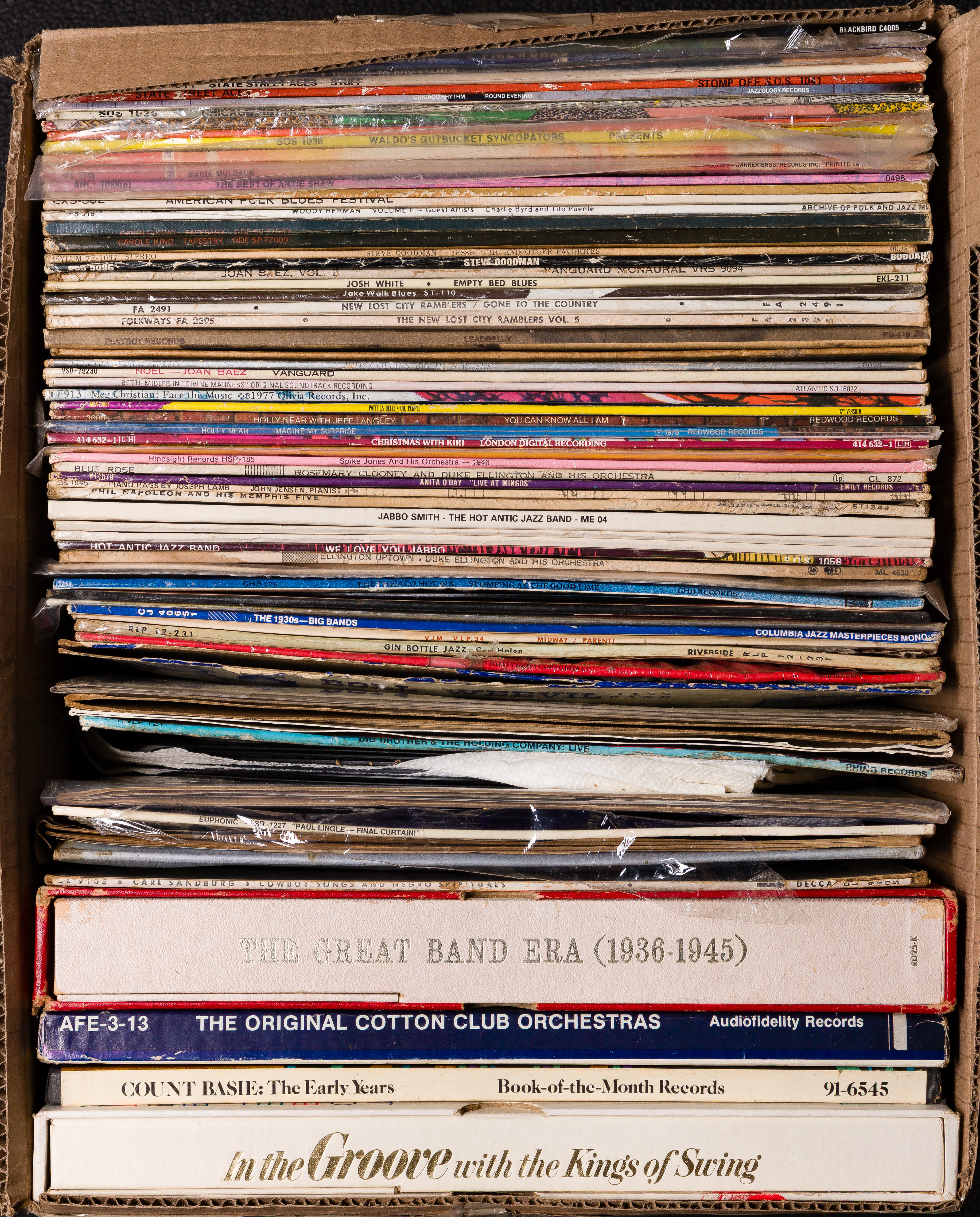 Approximately (400) items including Dixieland jazz, swing, jug band, blues vocalists, some world music and novelty noted, issued by a wide range of record labels